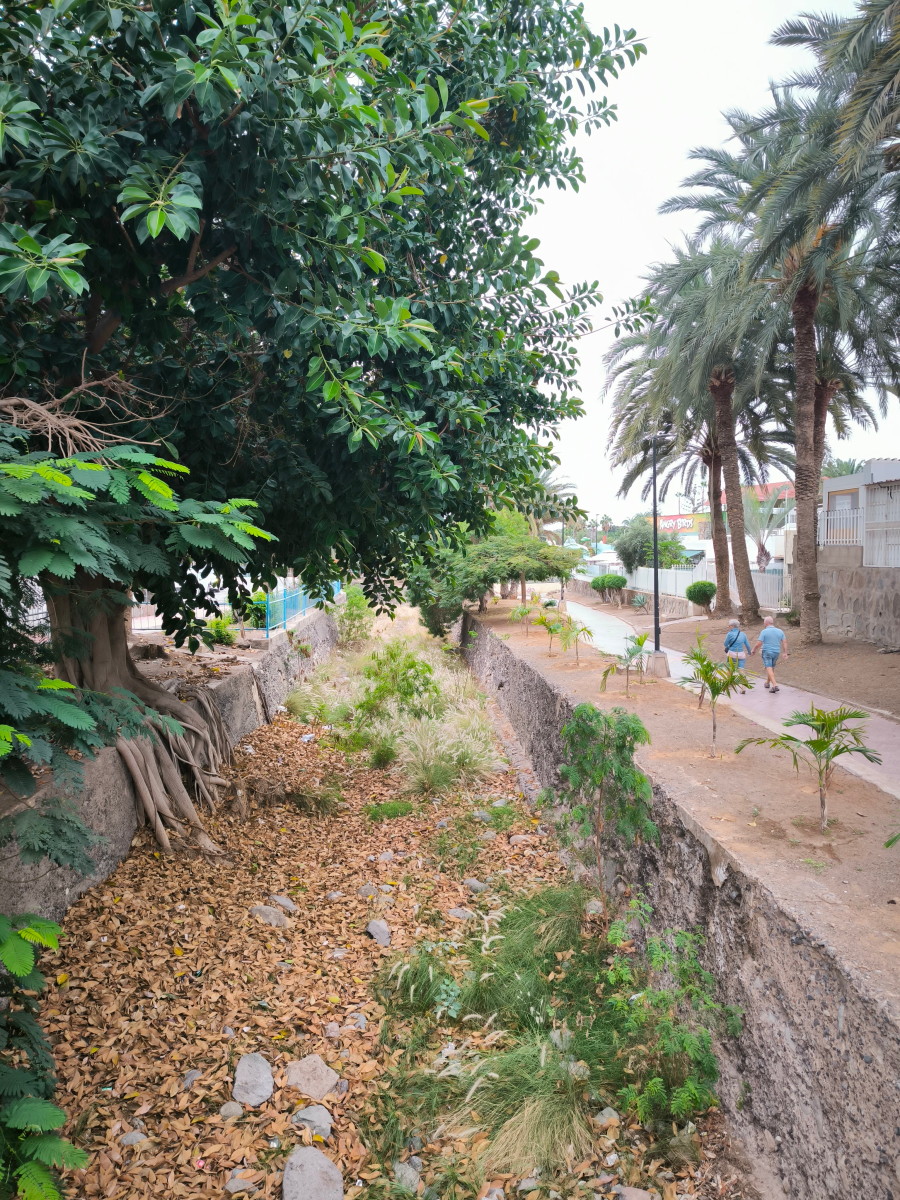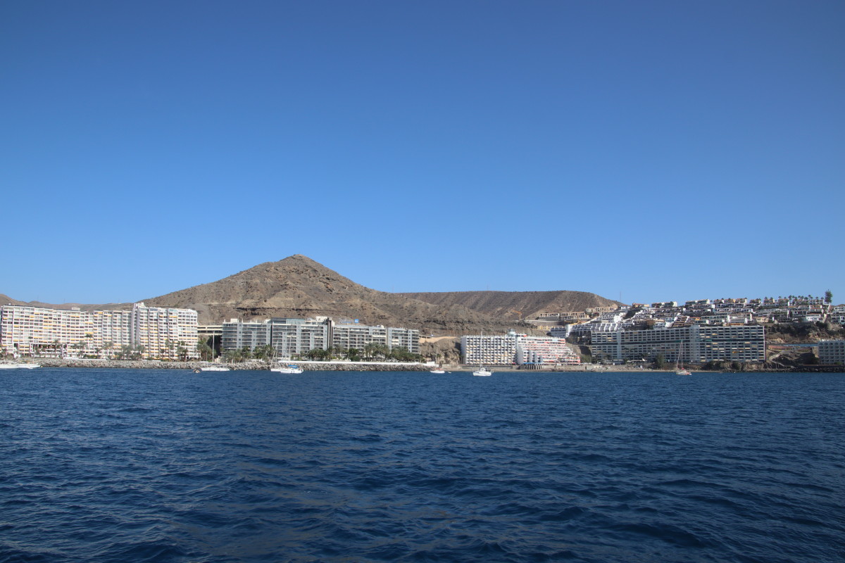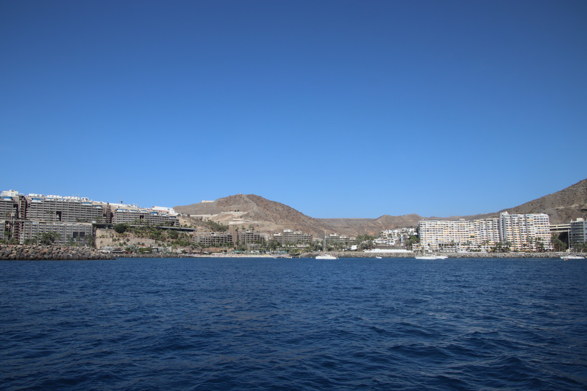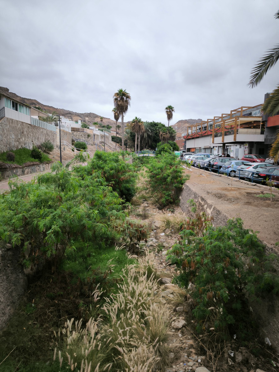 La côte autour est loin d’être sauvage. Ce sont ce qu’ils appellent ici une urbanización traduisez « entassez le maximum de constructions pour en faire des hôtels ou des locations de vacances », même le flanc verticaux de falaises des barrancos (canyon locaux) donnant sur la mer sont utilisés. Aucune vie locale, ici tout est uniquement conçu pour le touriste avide de soleil et de farniente. Mais il y a des supermarchés relativement bien achalandés même si c’est beaucoup de produits industriels prêt à manger et autres snacks (la malbouffe serait-elle encore plus lucrative au soleil?) mais l’intérêt principal de l’endroit est qu’il est très bien desservi par des bus rapides et confortables.