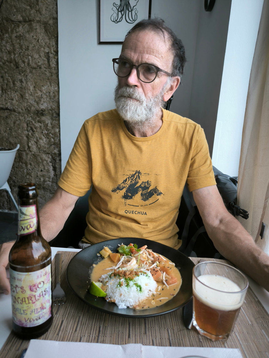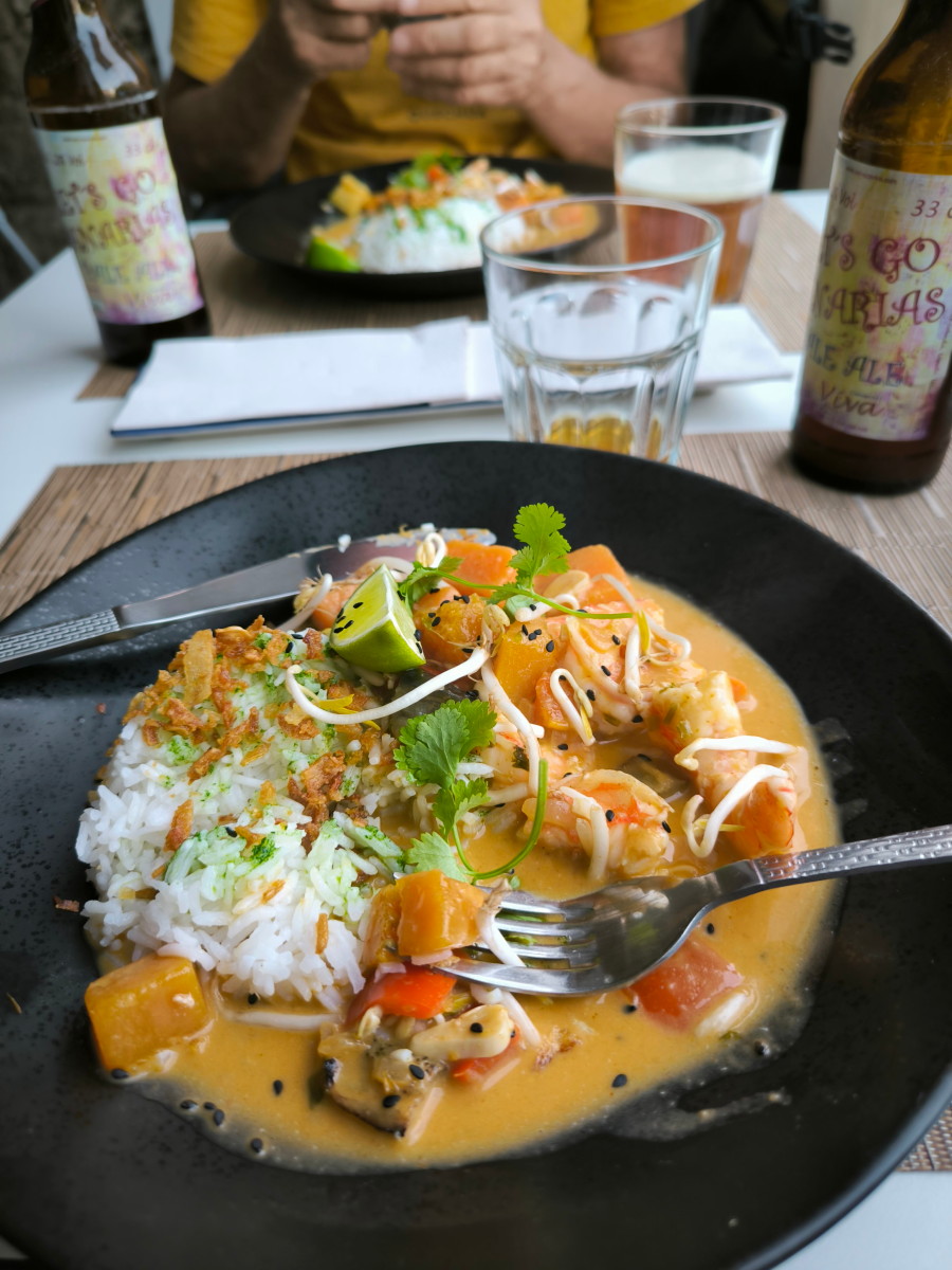 Nous déjeunons d’un curry de légumes pas du tout typique de l’île (au moins nous on est sur la vrai route des Indes:)) mais vraiment délicieux dans un café sympathique.