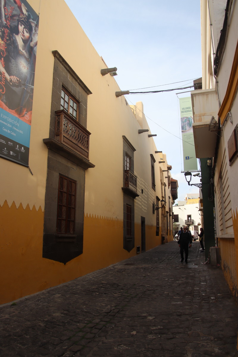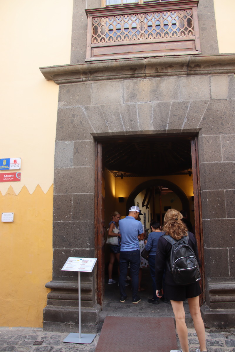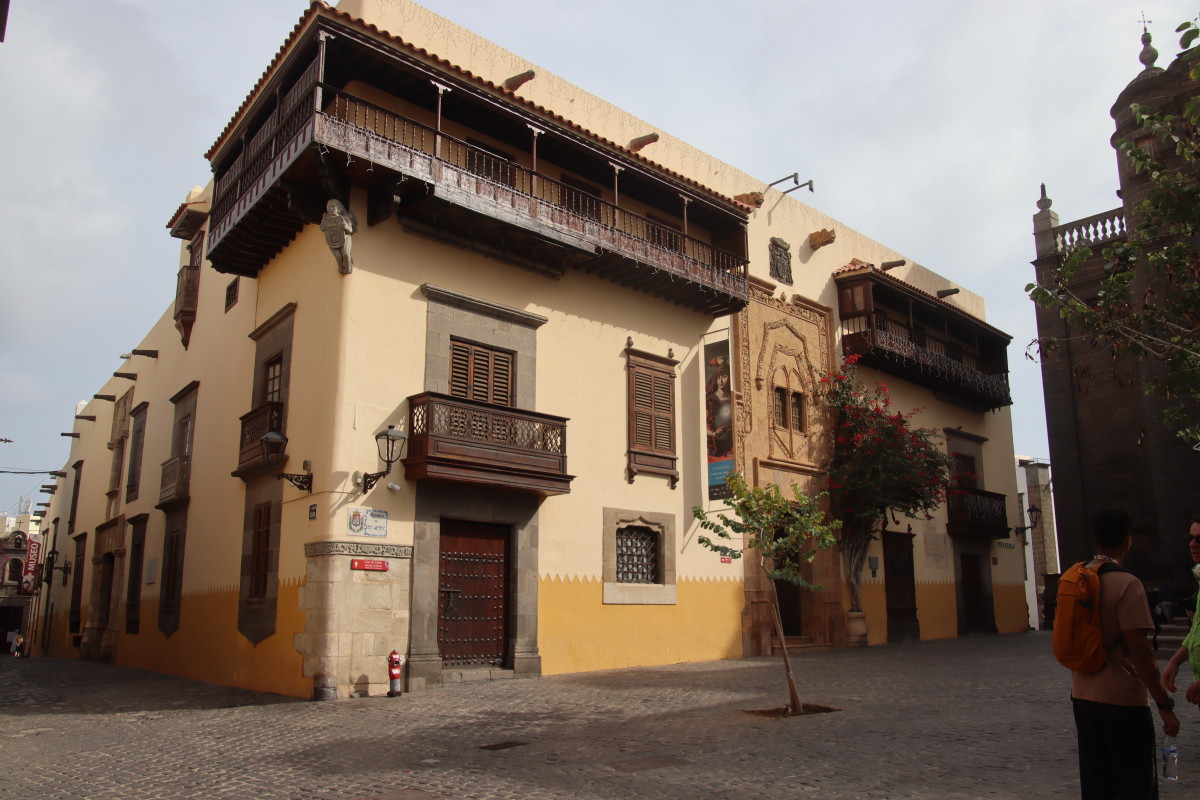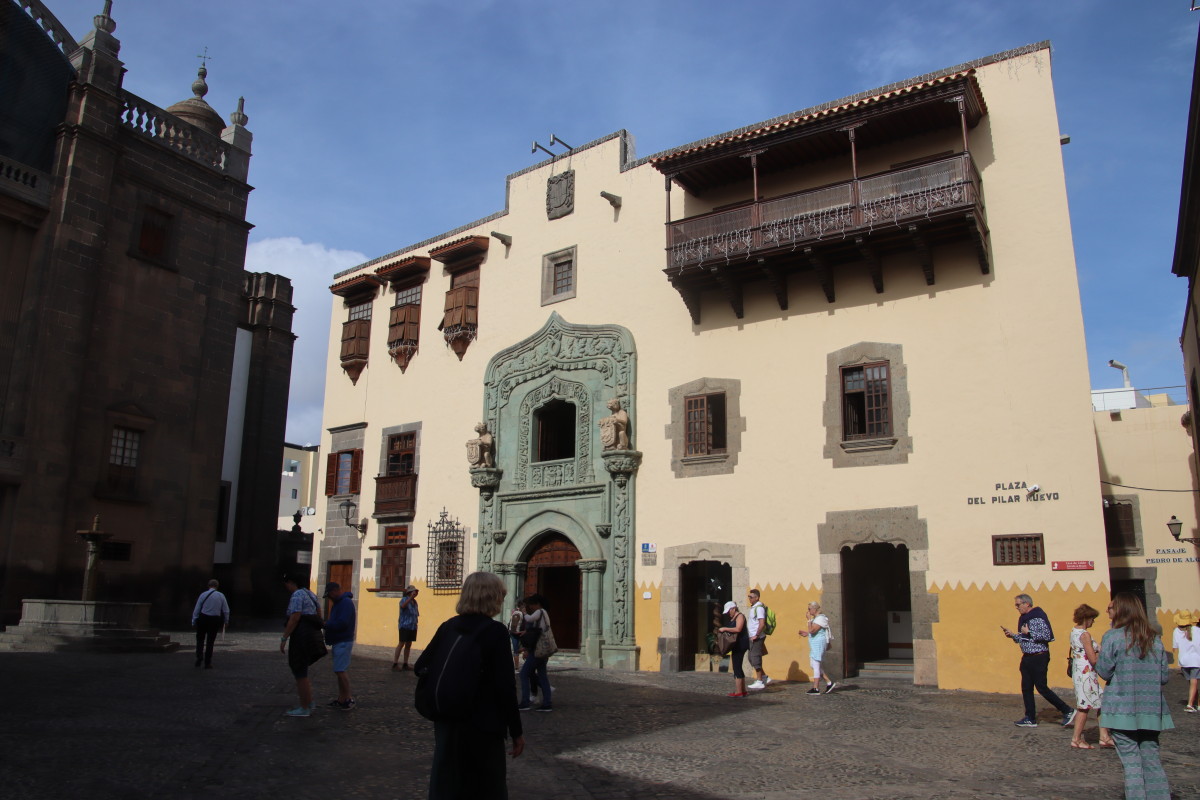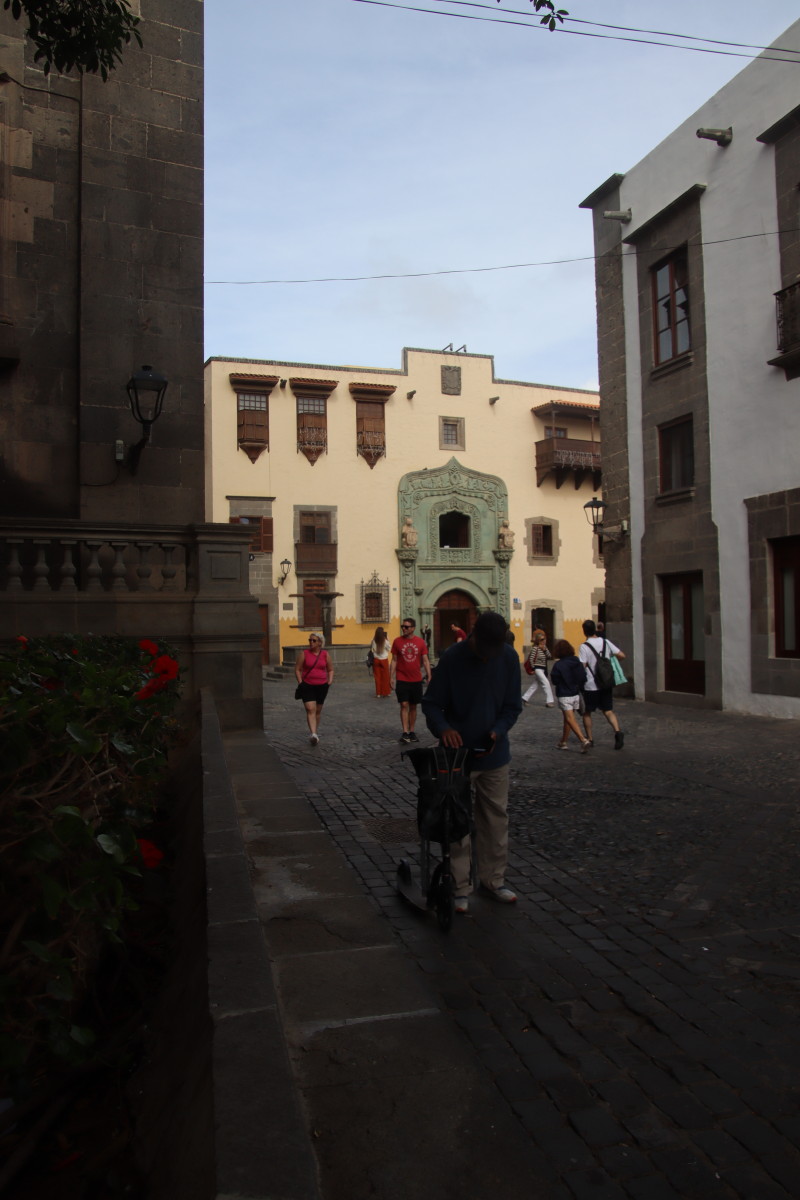 Le centre historique de style XVIIème siècle espagnol et ses nombreuses rues piétonnes sont très agréables. Ceux d’entre vous qui nous suivent connaissent notre goût pour l’art moderne et c’est donc vers le Centro Atlántico de Arte Moderno situé dans ce quartier que nous dirigeons nos pas ou plutôt nos trottinettes et là on se fait carrément jetter pas question de les laisser aux vestiaires ou dans ce débarras vide derrière l’accueil ni même dans la rue devant l’entrée, non ! pas question ! même si on explique qu’elles sont à propulsion 100% humaine sans aucun moteur ni batterie. Tant pis pour l’art moderne, on se rabat sur l’histoire, en l’occurrence le Musée Colomb.
