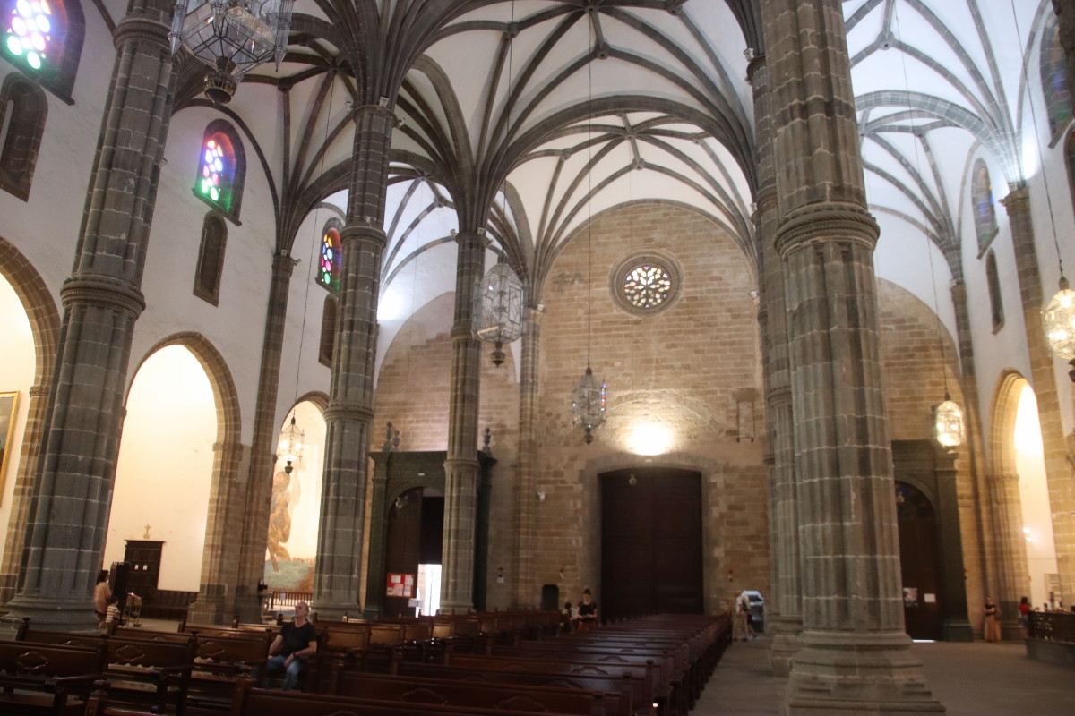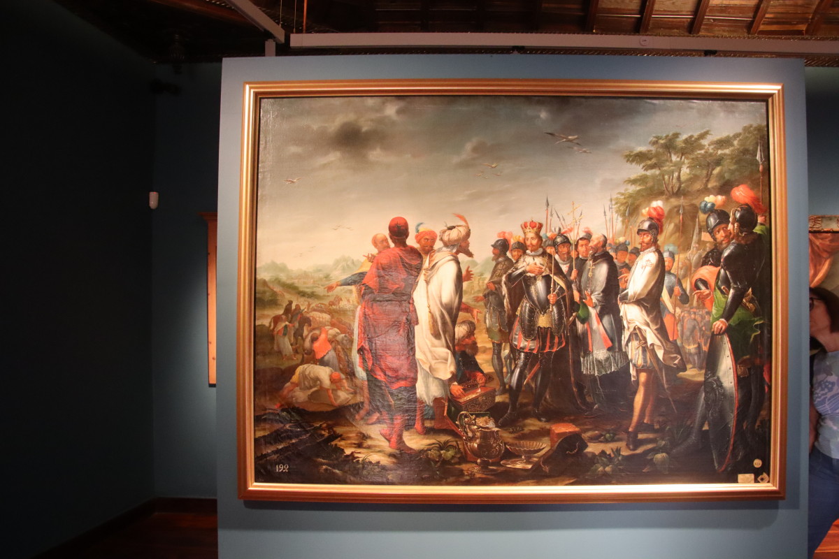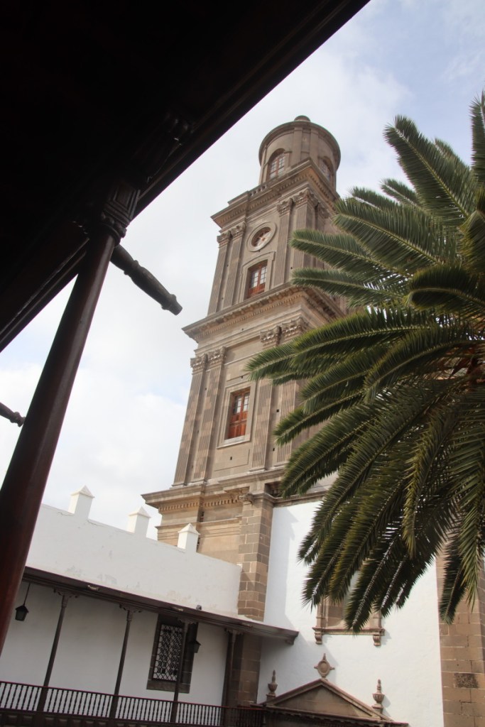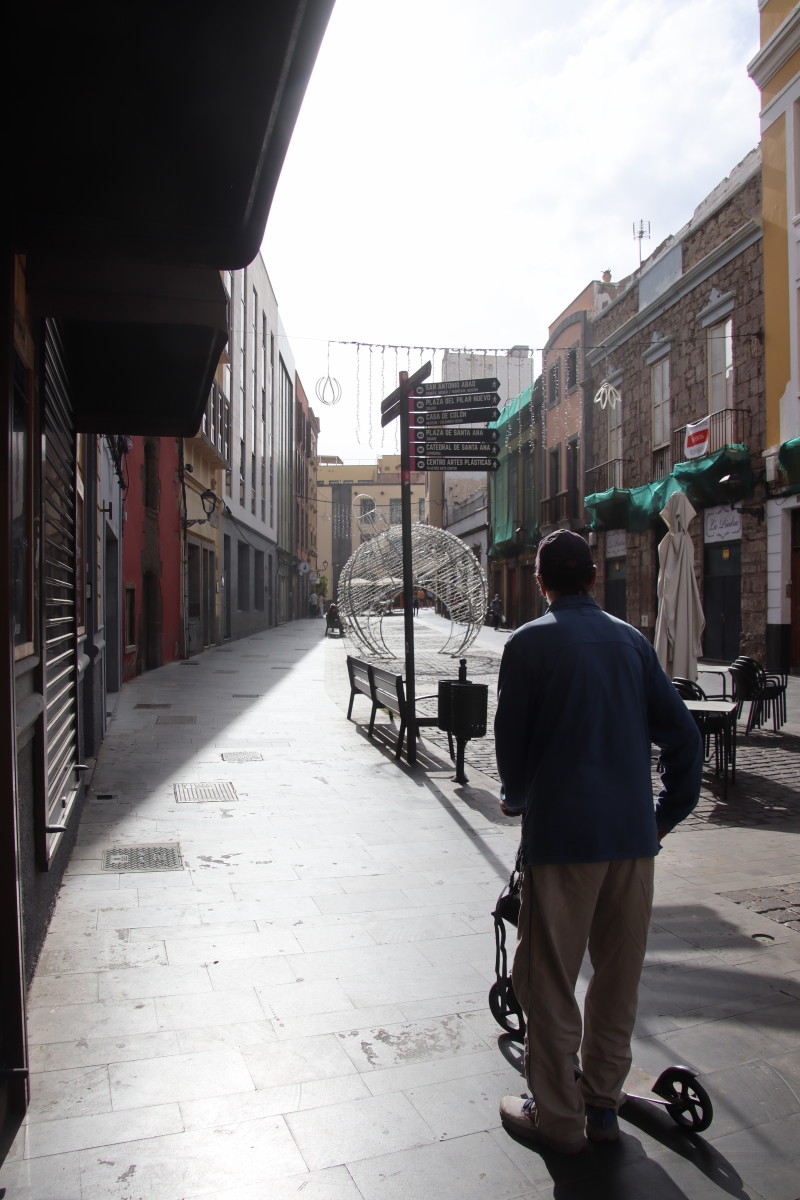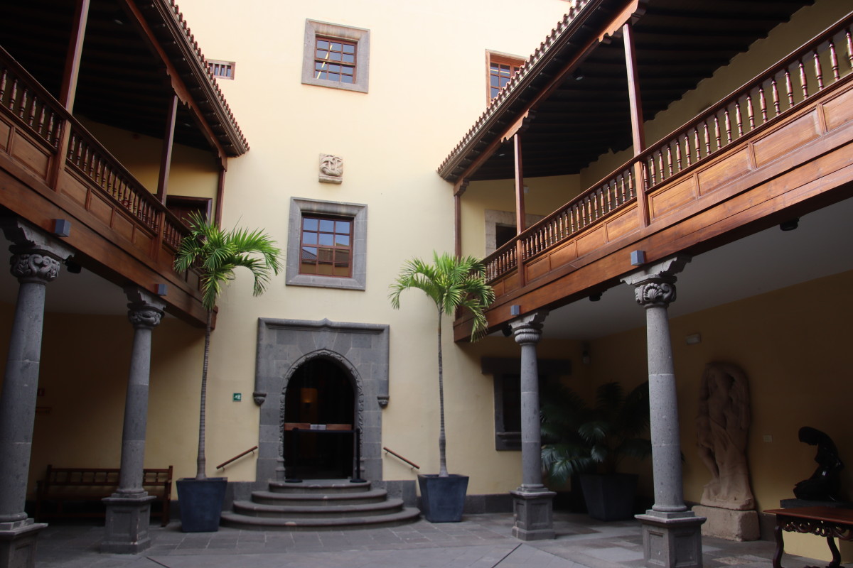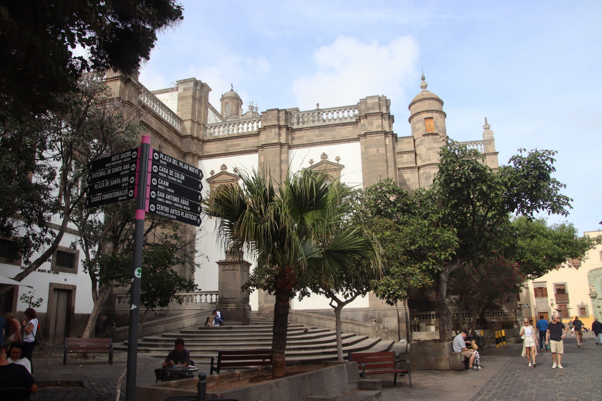 Le centre historique de style XVIIème siècle espagnol et ses nombreuses rues piétonnes sont très agréables. Ceux d’entre vous qui nous suivent connaissent notre goût pour l’art moderne et c’est donc vers le Centro Atlántico de Arte Moderno situé dans ce quartier que nous dirigeons nos pas ou plutôt nos trottinettes et là on se fait carrément jetter pas question de les laisser aux vestiaires ou dans ce débarras vide derrière l’accueil ni même dans la rue devant l’entrée, non ! pas question ! même si on explique qu’elles sont à propulsion 100% humaine sans aucun moteur ni batterie. Tant pis pour l’art moderne, on se rabat sur l’histoire, en l’occurrence le Musée Colomb.