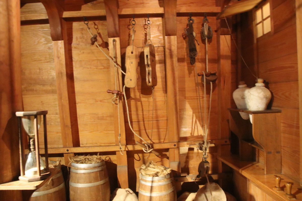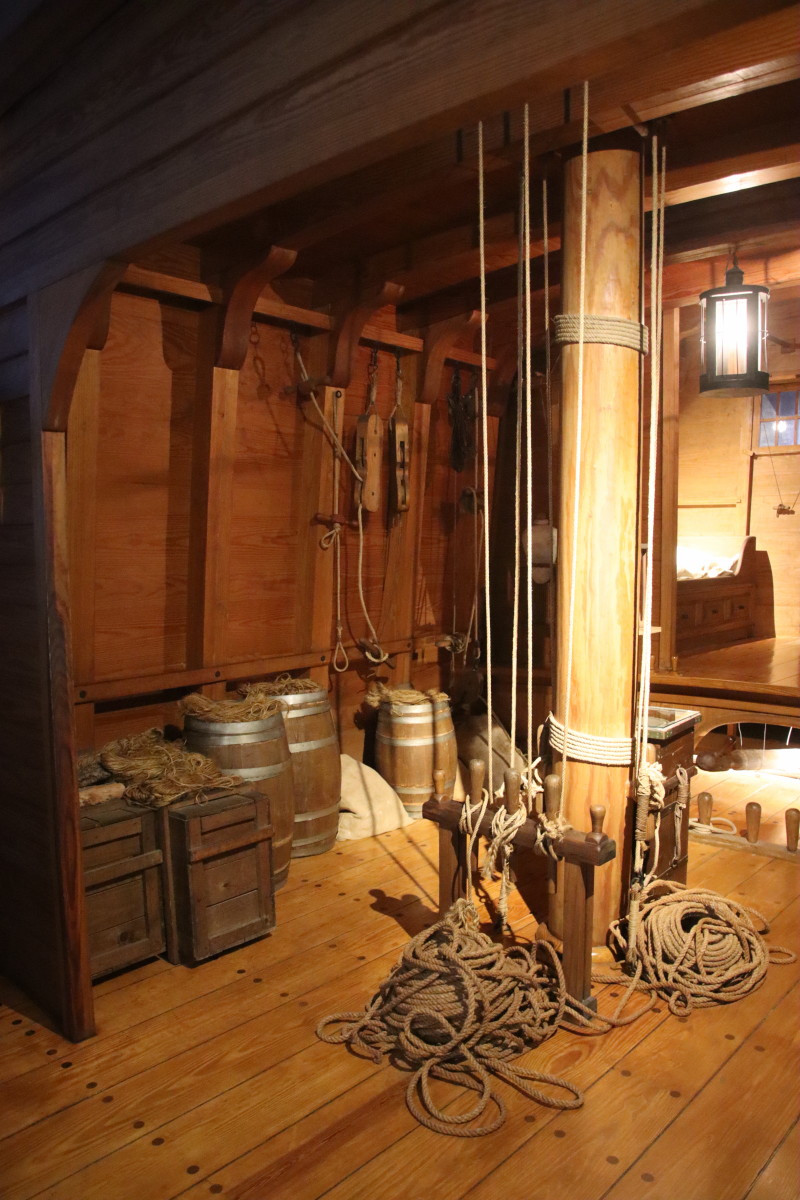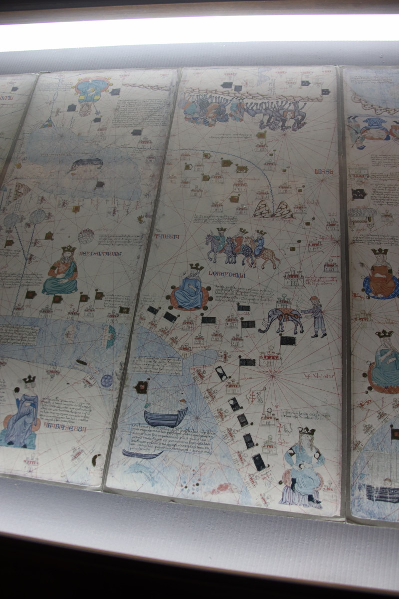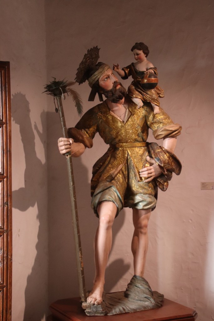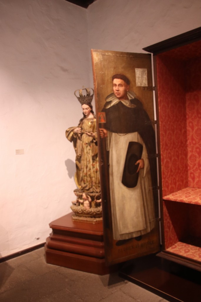 Là le gardien nous laisse les stocker dans un recoin derrière la porte d’entrée. C’est une exposition très intéressante dans un magnifique palais apparemment du XVIIIème siècle (en fait l’assemblage réalisé dans les années 1950 de plusieurs demeures dont l’une était la maison du gouverneur et la plus vieille datait de cette époque). Elle retrace le rôle de l’archipel et tout particulièrement de Las Palmas sur la route des Amériques, étape nécessaire lors de trois des quatre voyages de Christophe Colomb, lors du 4ème, il ne s’arrêta qu’à La Gomera. Plusieurs salles sont aussi consacrées aux navires utilisés et à la cartographie de l’époque. Pour sa première traversée (La Gomera – San Salvador dans le Sud des Bahamas) il aura parcouru les 3200 milles de la route directe en 36 jours soit une moyenne de 3,7 nds dans des conditions difficiles vu qu’il était resté très au nord de ce qu’on appelle aujourd’hui la route des alizés.
