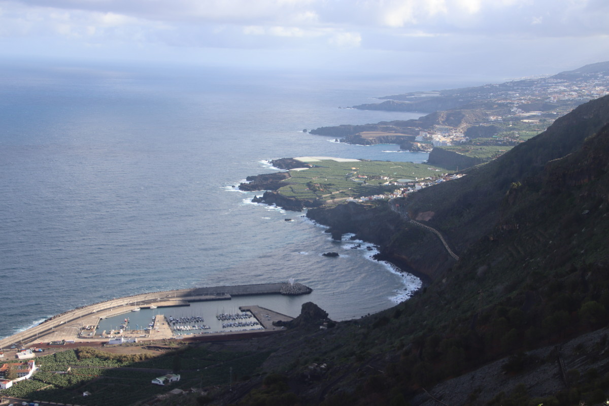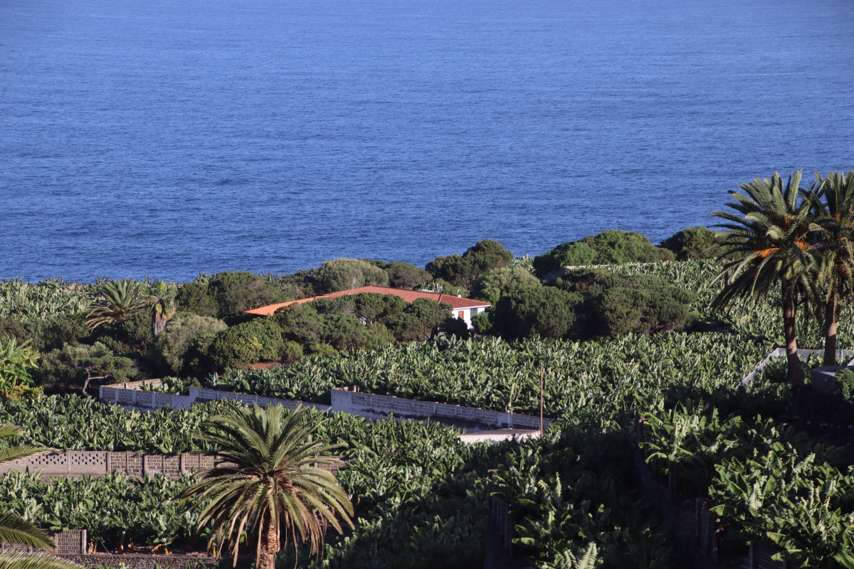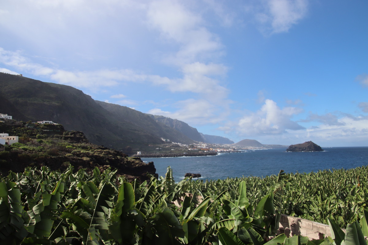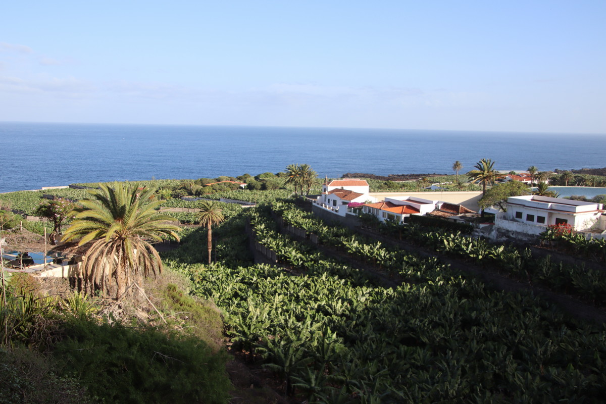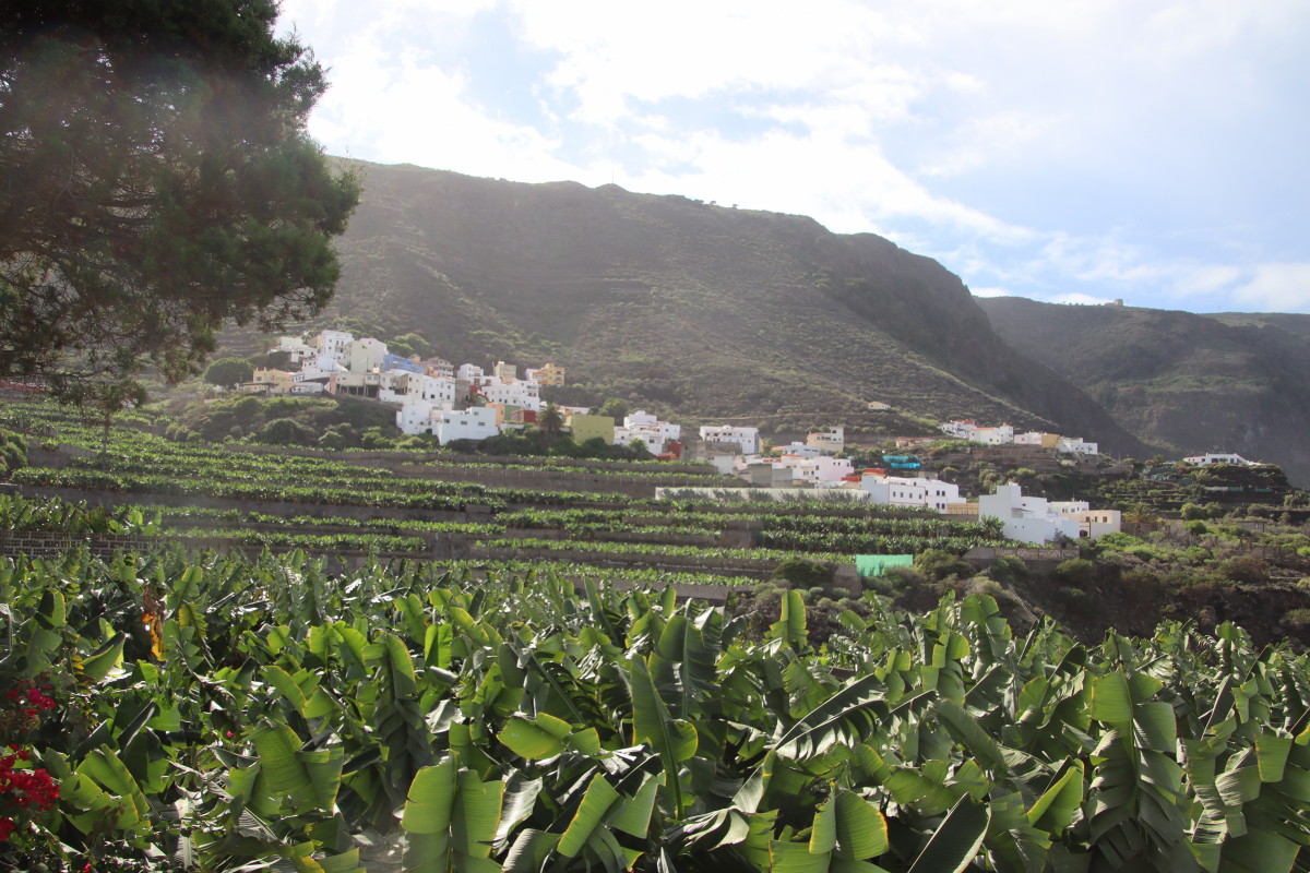 L’étroite plaine côtière est couverte de bananeraies. Les premiers bananiers furent sans doute introduits dans l’archipel au XVIème siècle mais la culture de la banane ne devint une activité économique et une source d’exportation importante seulement à la fin du XIXème siècle. c’est aujourd’hui sa deuxième ressource (après le tourisme). Sur cette côte, les conditions climatiques permettent une culture à l’air libre alors que dans les endroits plus sec les parcelles sont recouvertes d’un voile textile, c’est plus agréable à l’œil. La plus plantée est une variante locale de la Cavendish, en raison du climat elle mûrit en 6 mois au lieu de 3 dans les régions inter-tropicales ce qui lui donnerait une saveur plus parfumée et plus sucrée.