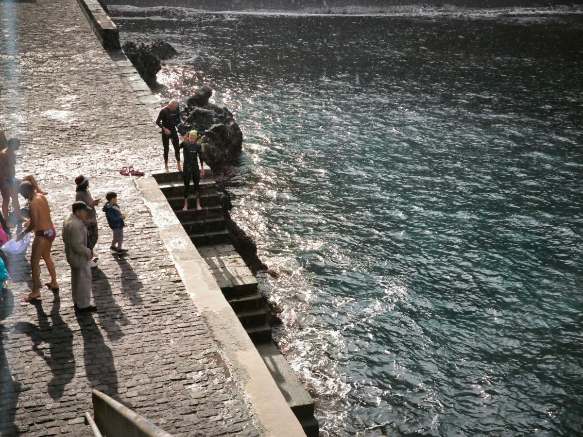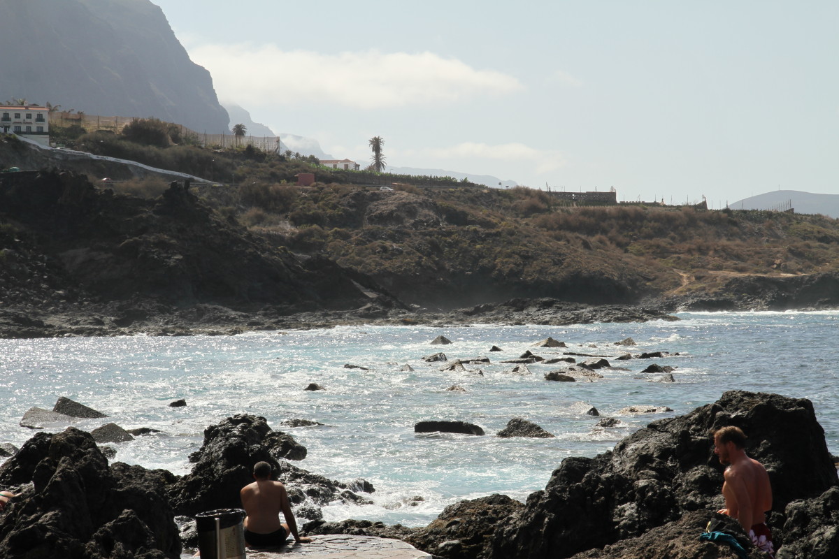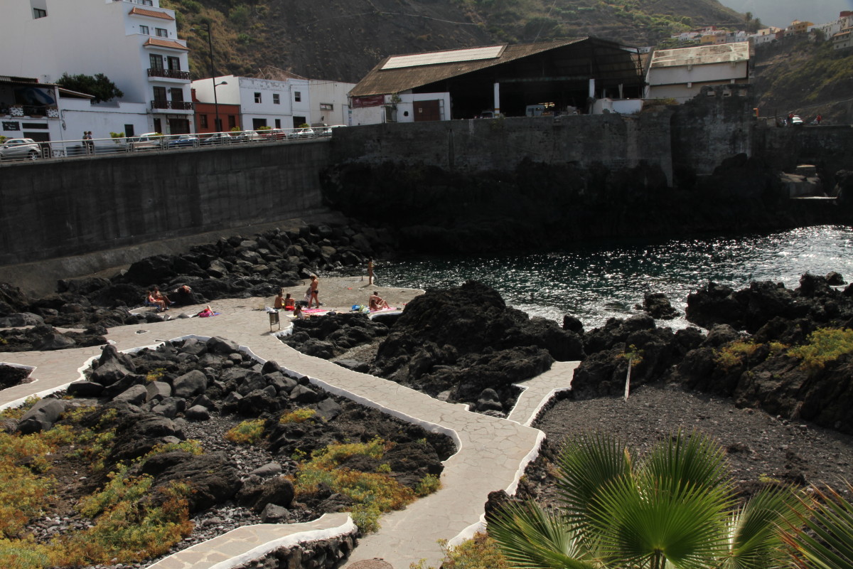 Tout au long de cette côte il y a de nombreuses criques ou piscines naturelles certaines sont inaccessible car il faut traverser des exploitations bananières beaucoup sont impraticable dès qu’il y a la moindre houle de Nord ou Nord Ouest (80 % de l’année). Notre piscine préférée est à Jóver juste en dessous de Tejina. on y accède par une petite route qui passe entre les bananeraies. Un parking, quelques maisons avec un petit bar resto sur l’arrière. L’endroit est surtout fréquenté par les locaux le dimanche. La piscine naturelle est sans doute la plus agréable de toute l’île. Elle est facilement accessible, d’une bonne profondeur d’un bout à l’autre, très bon ensoleillement (nous sommes sur la côte nord:)) et surtout elle est praticable pratiquement quelque soit l’état de la mer.