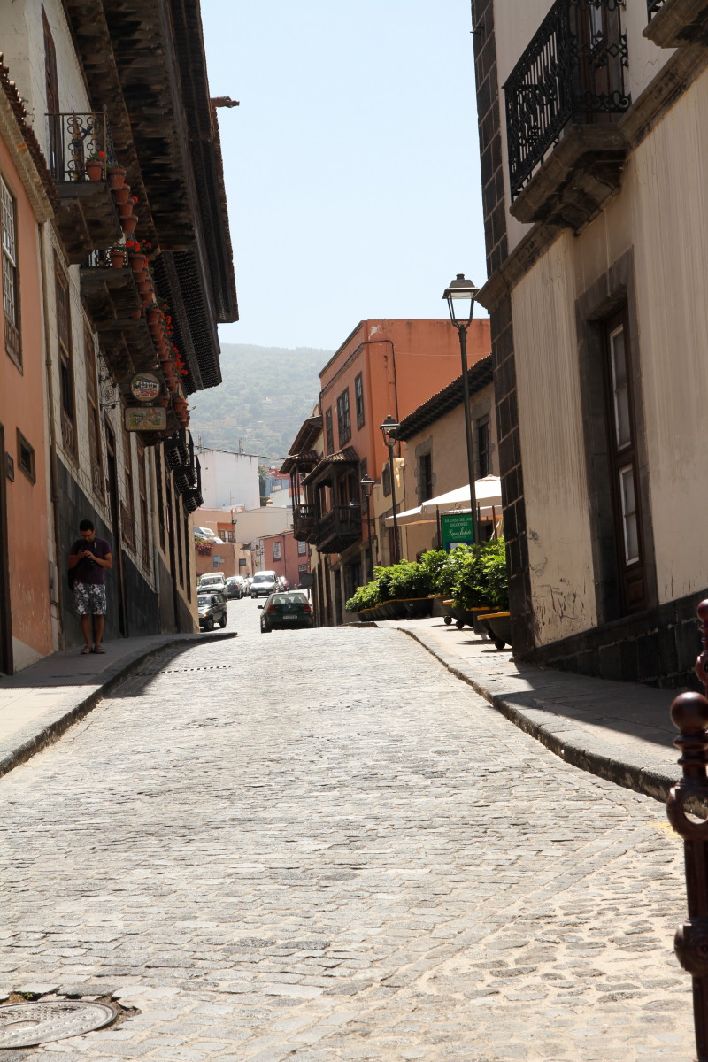 Nous finissons cette promenade par la visite de San Cristobal de La Laguna. Aussi fondée en 1496 elle fut la capitale de l’île jusqu’en 1823 et est encore le siège de l’évêché et de la plus importante université de l’archipel. La vieille ville est un peu enfouie dans le développement urbain et commercial généré par sa proximité avec Santa Cruz et l’aéroport Nord. Mais le centre historique est bien préservé et il est très agréable de déambuler dans ses rues piétonnes. Ce serait la première ville coloniale à avoir été créée sans mur d’enceinte. Elle aurait aussi servi de modèle à de nombreuses villes construites sur le continent américain par les conquistadors.
