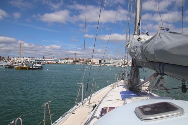 Mais que c’est-il passé depuis le dernier épisode. Nous avions laissé Rêve à Deux à sec le 27 mars au chantier Sopromar de Lagos. C’est un super endroit pour un hivernage/ ‘étéage’. Le chantier est très bien équipé, ses ouvriers très sérieux et les prix sont raisonnables. On en a profité pour faire faire quelques travaux sur le moteur (changement du coude d’échappement et des joints de l’embase de saildrive). Mais on est aussi revenu en voiture mi-juillet pour une semaine de bricolage à bord . Au menu, pose d’un nouveau guindeau, l’ancien commençant à donner des signes de faiblesse, d’une nouvelle cuisinière (le bricolage réalisé à Agadir a bien tenu jusqu’ici mais n’était pas trop sécurisant côté risque de fuite de gaz), remplacement des bagues de safran et surtout mise en place d’un nouveau jeux de voile. Rêve à Deux est à nouveau comme neuf !