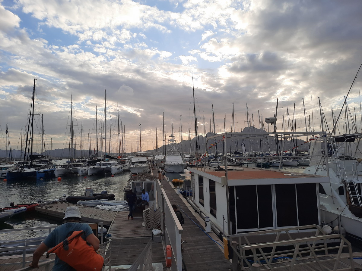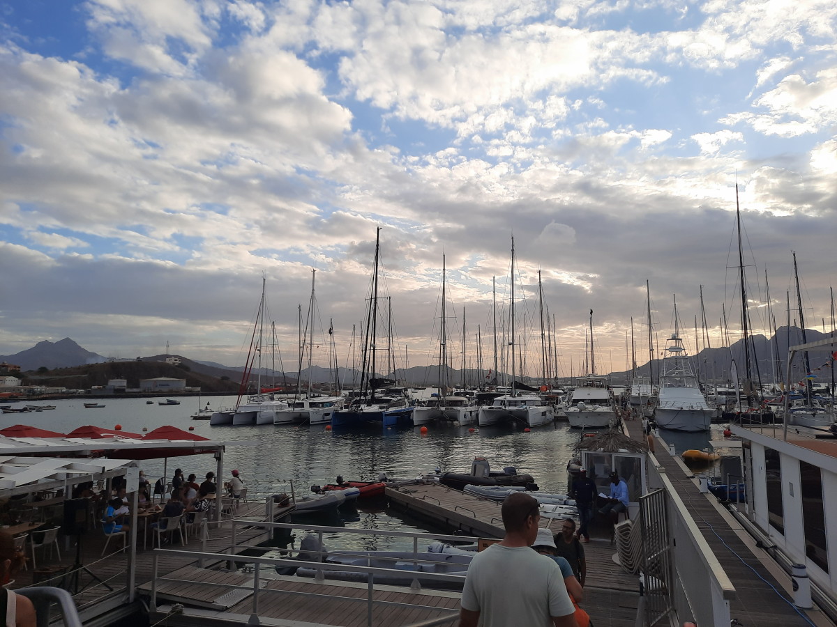 Quand nous arrivons dans la rade de Mindelo c’est un peu la surprise. Nous y avions fait escale début août 2018 ce qui est bien sûr au plus bas de la saison: nous n’étions que 3 bateaux de passage alors que maintenant il y en a des dizaines à l’ancre et plus d’une certaine au pontons. (Les participants de l’ARC on vite été remplacés. Mais en fait tout à changé: hôtels et bâtiments administratifs sur le front de mer, nouvelle gare maritime, 2 jetées supplémentaires au port etc. Les pontons de la marina ont été triplés ou quadruplés, etc.etc.