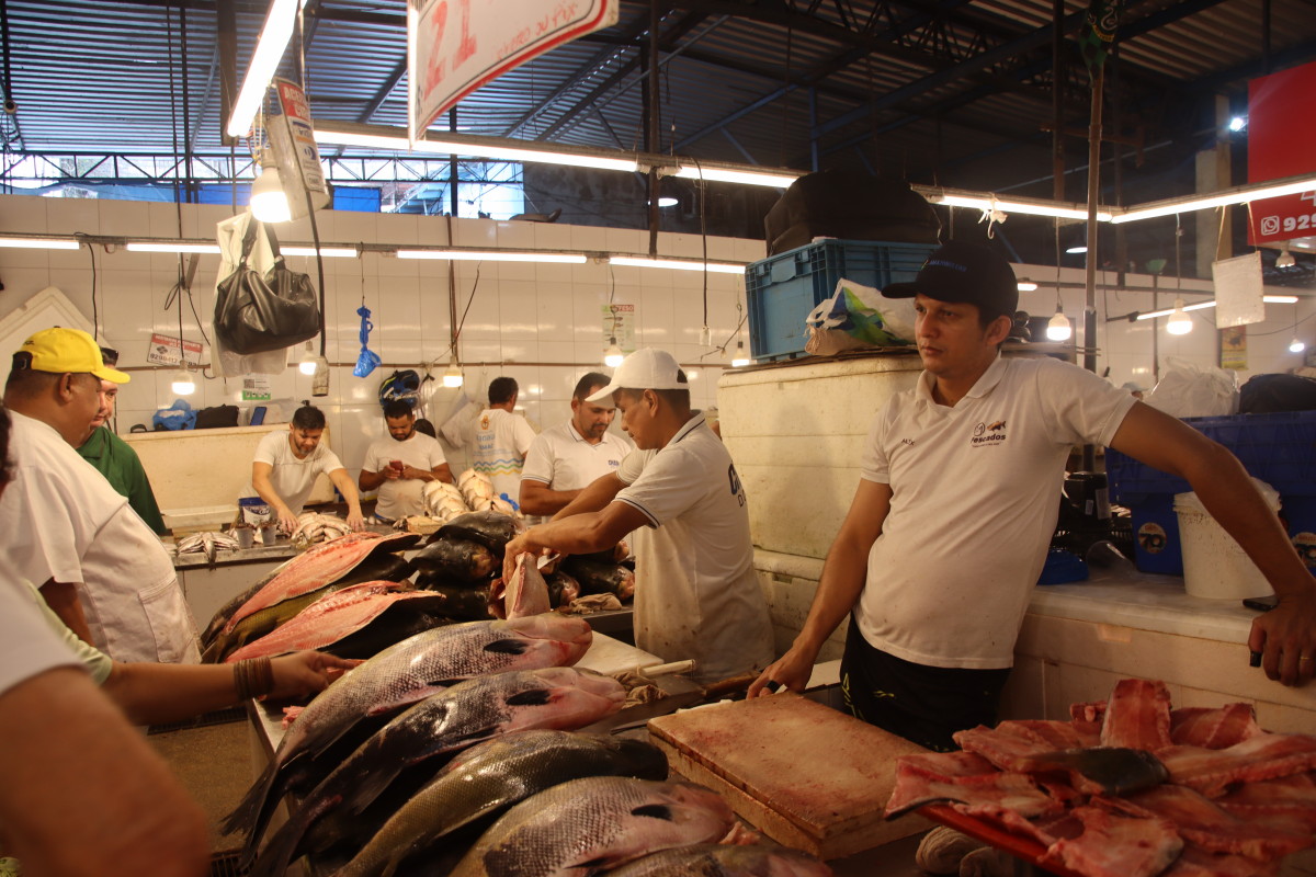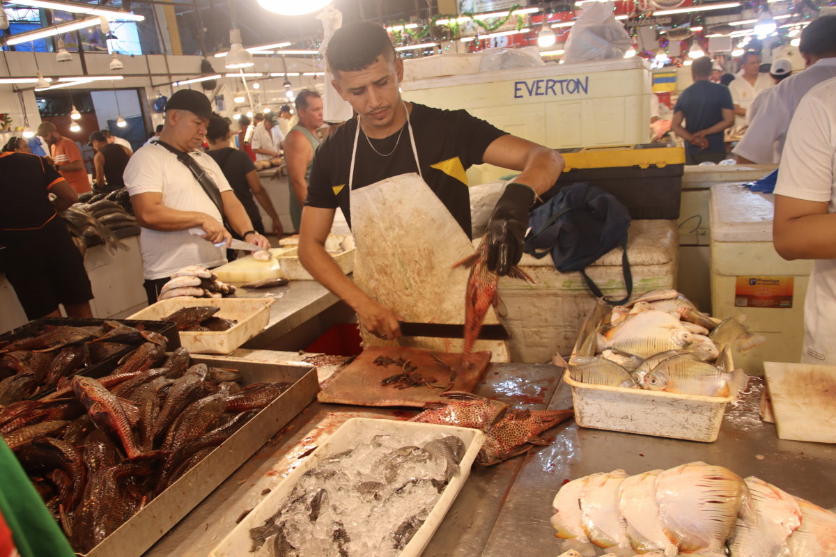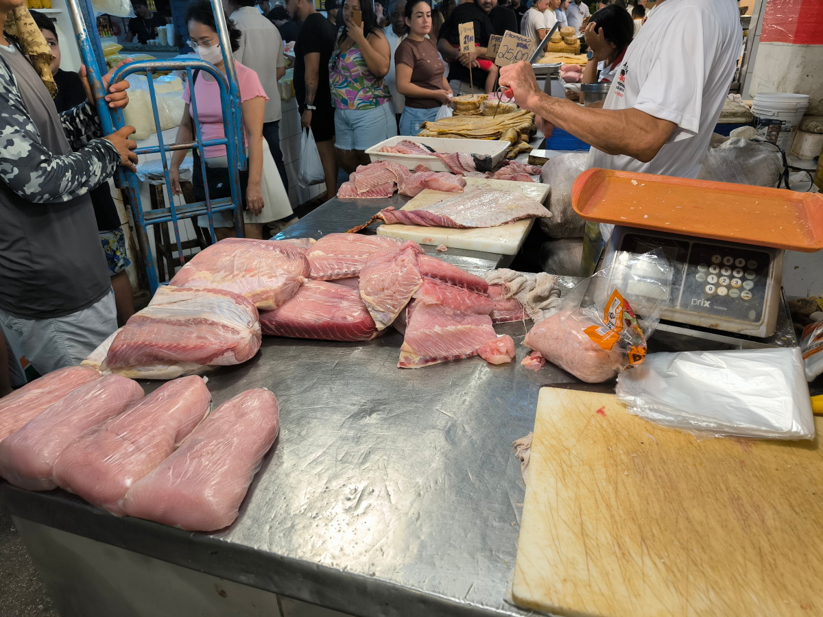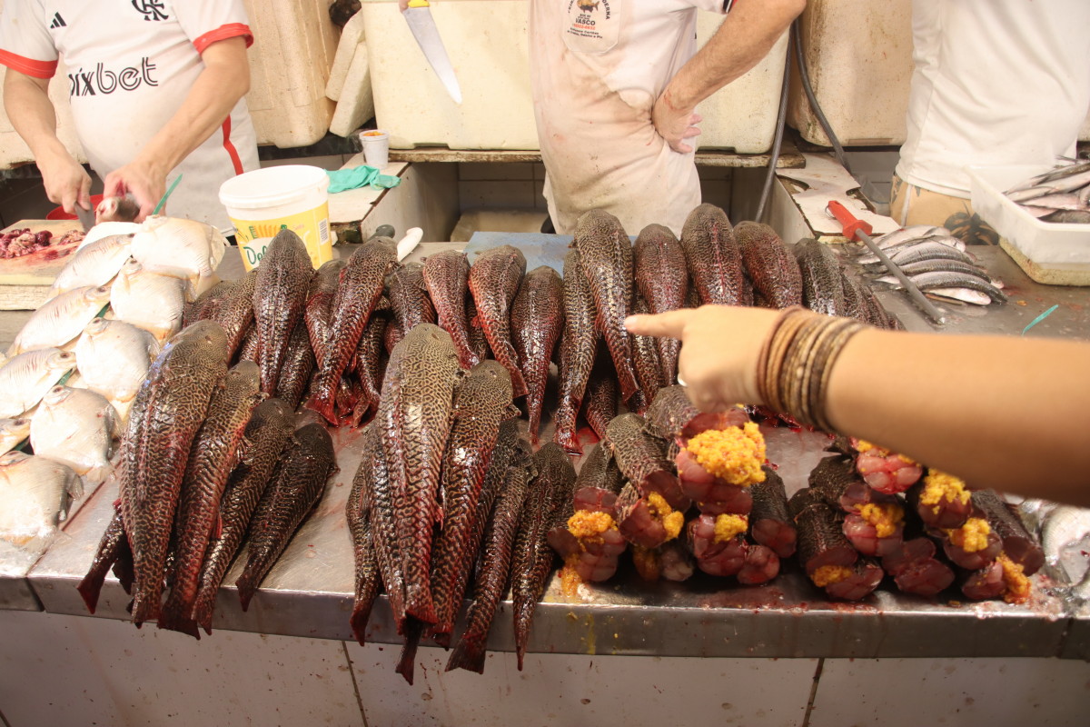 La partie du marché la plus impressionnante est sans aucun doute celle du poisson: issus exclusivement du (des) fleuve(s) ils sont d’une variété étonnante. On retiendra: le plus gros de tous l’arapaima ou pirarucu, le plus connus le piranha, le tambaqui très gros lui aussi et il mange principalement des fruits, et le poisson chat blindé et son armure digne d’un film de science fiction mais il y en a des dizaines d’autres dont nous n’avons pas retenu les noms.