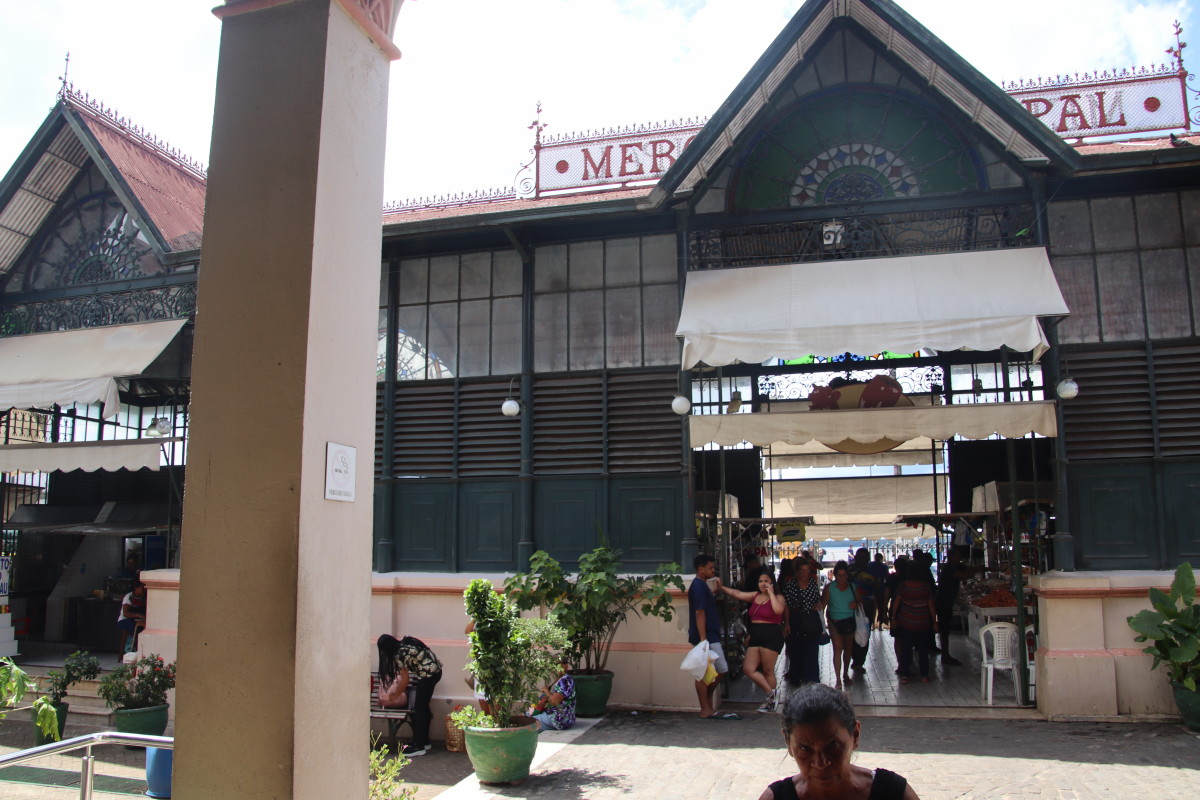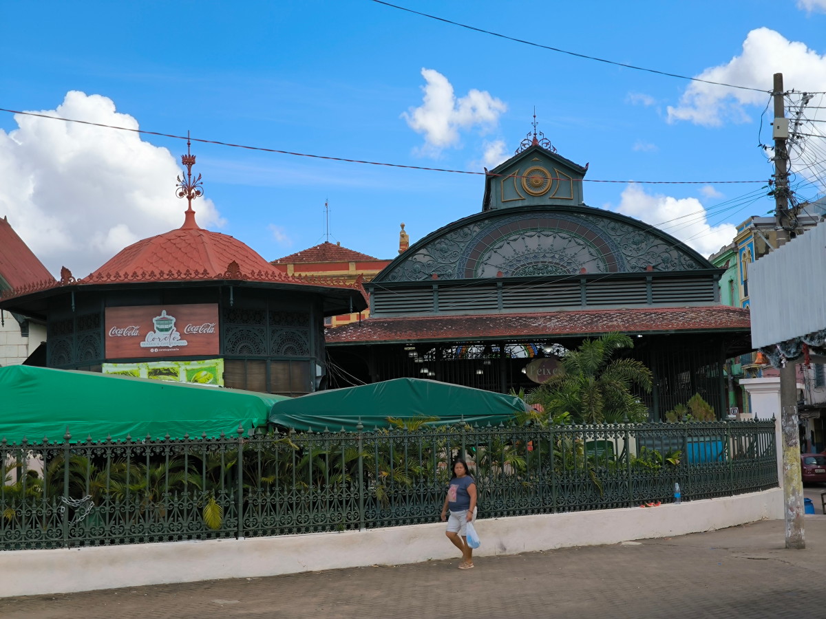 Un peu plus loin sur le bord du fleuve il y a le marché municipal Adolpho Lisboa. C’est un très beau bâtiment de style art déco dont la conception serait due à Gustave Eifel lui même (mais ce n’est pas prouvé). Une partie abrite des boutiques d’artisanat local tandis que l’autre est consacrée aux plantes médicinales de la forêt amazonienne et à leurs essences qui peuvent soigner toutes les maladies existantes comme donner naissance aux parfums les plus célèbres de grands couturiers.