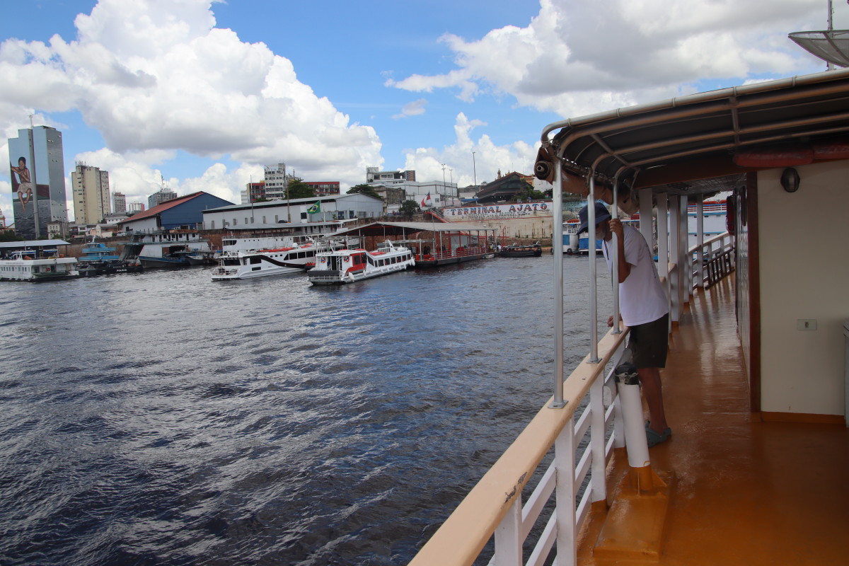 A 09:00 comme convenu Sylvia notre guide vient nous chercher. Nous avons cassé la tirelire et réservé un bateau traditionnel pour 6 jours rien que pour nous pour explorer le Rio Negro au nord-est de Manaus.