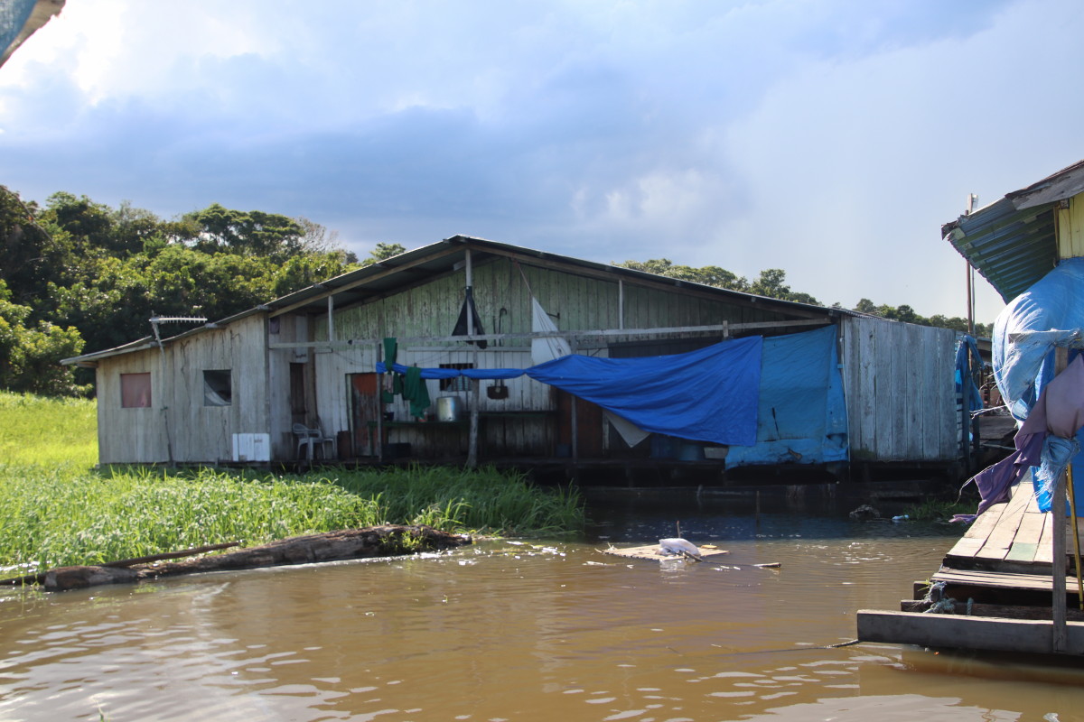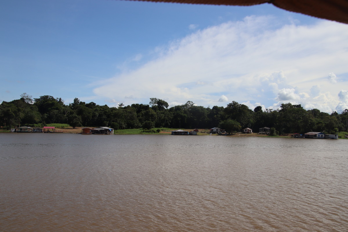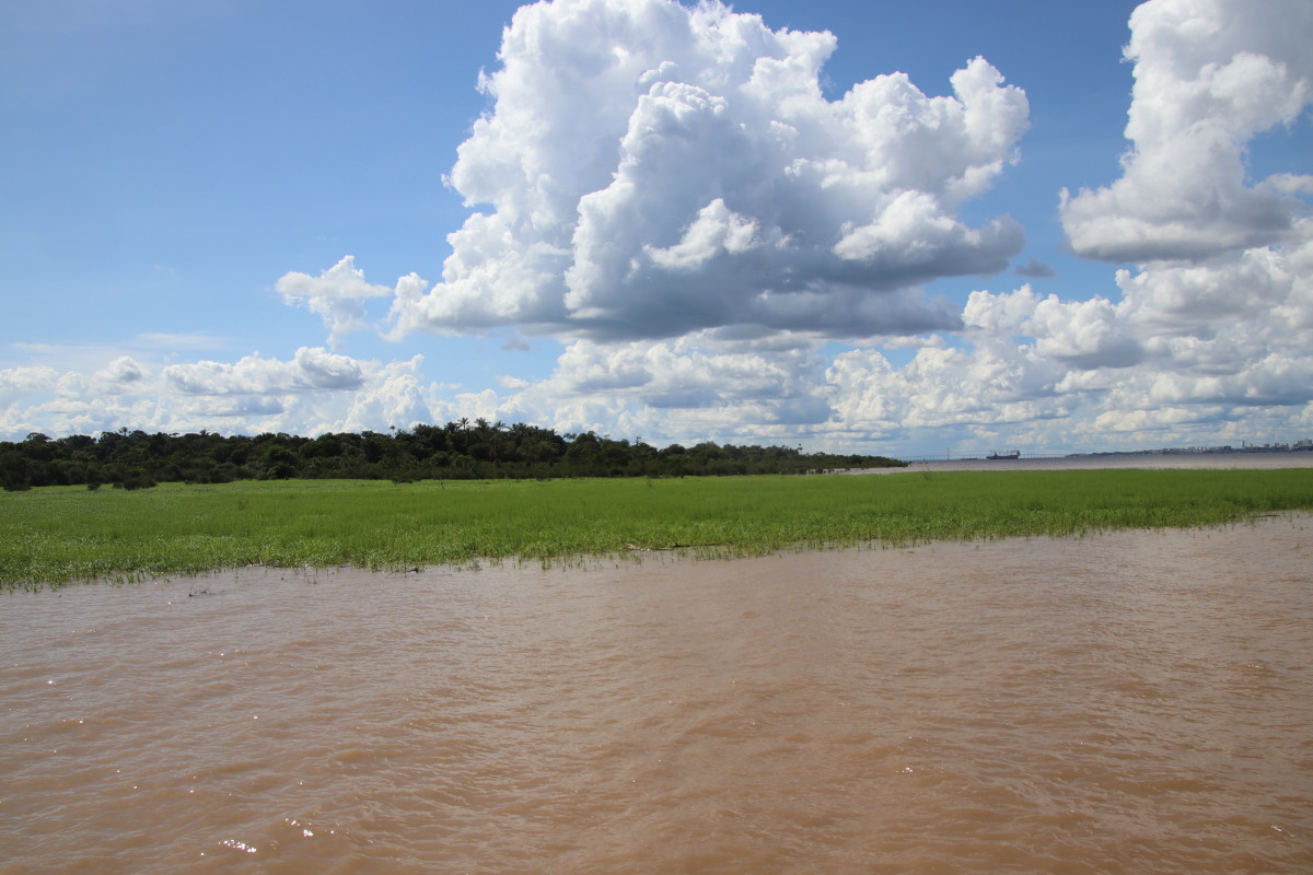 Nous revenons en face de Manaus au fond d’un petit bras du Rio.