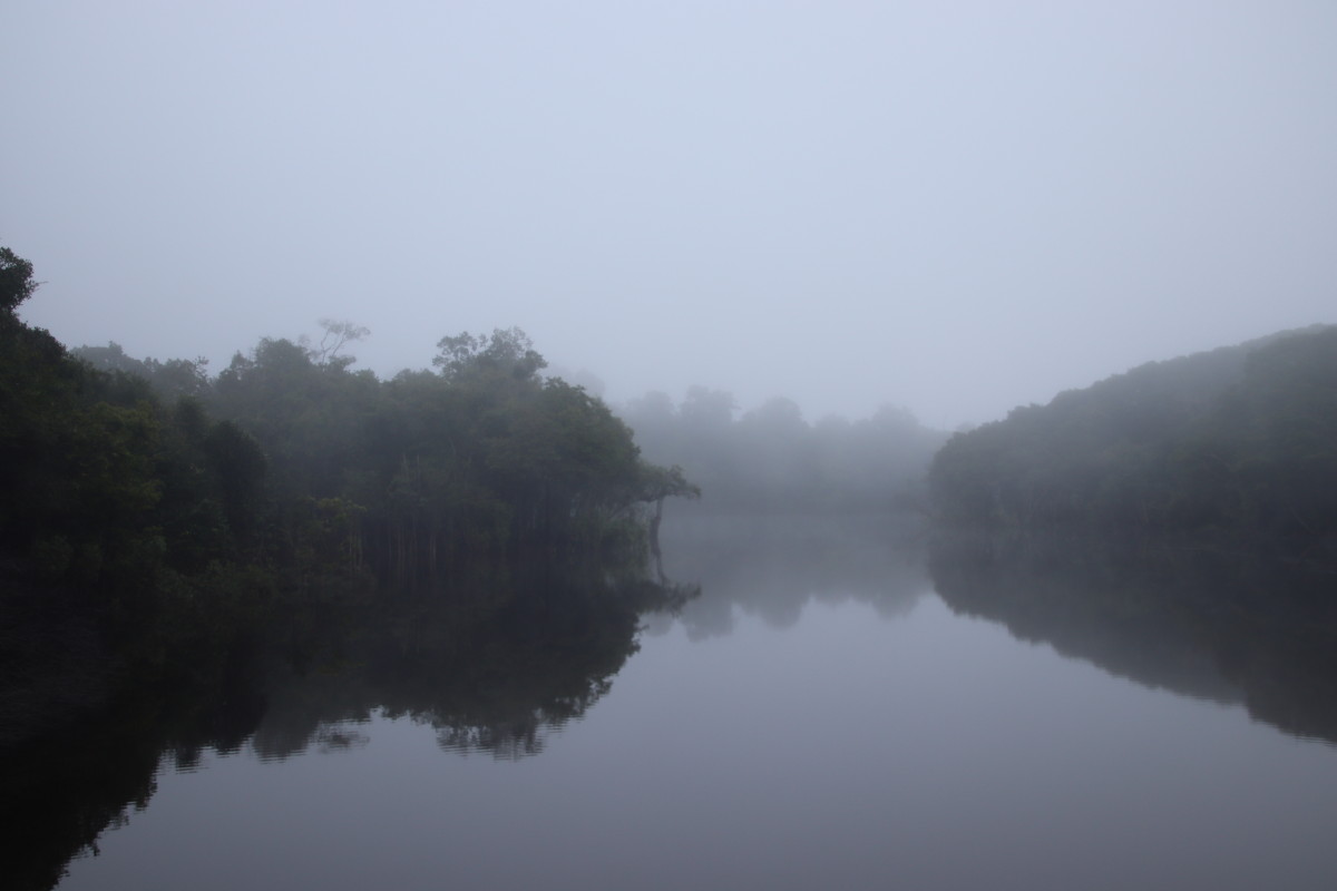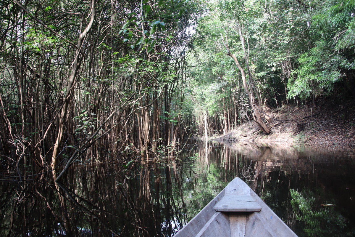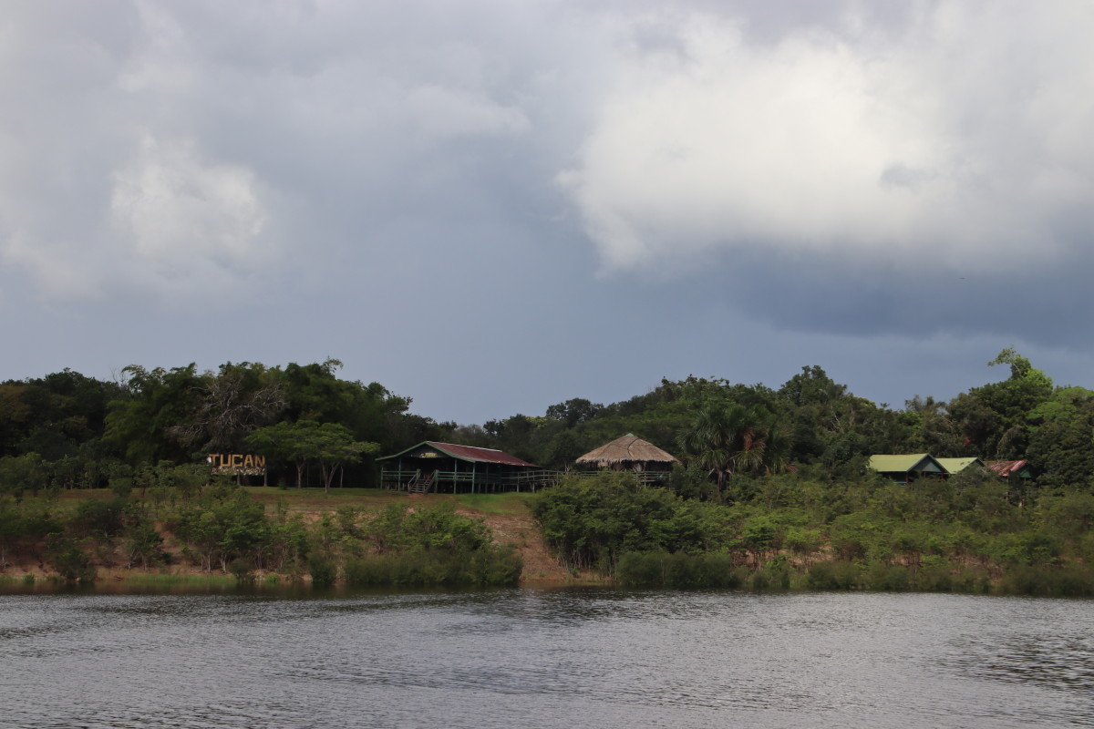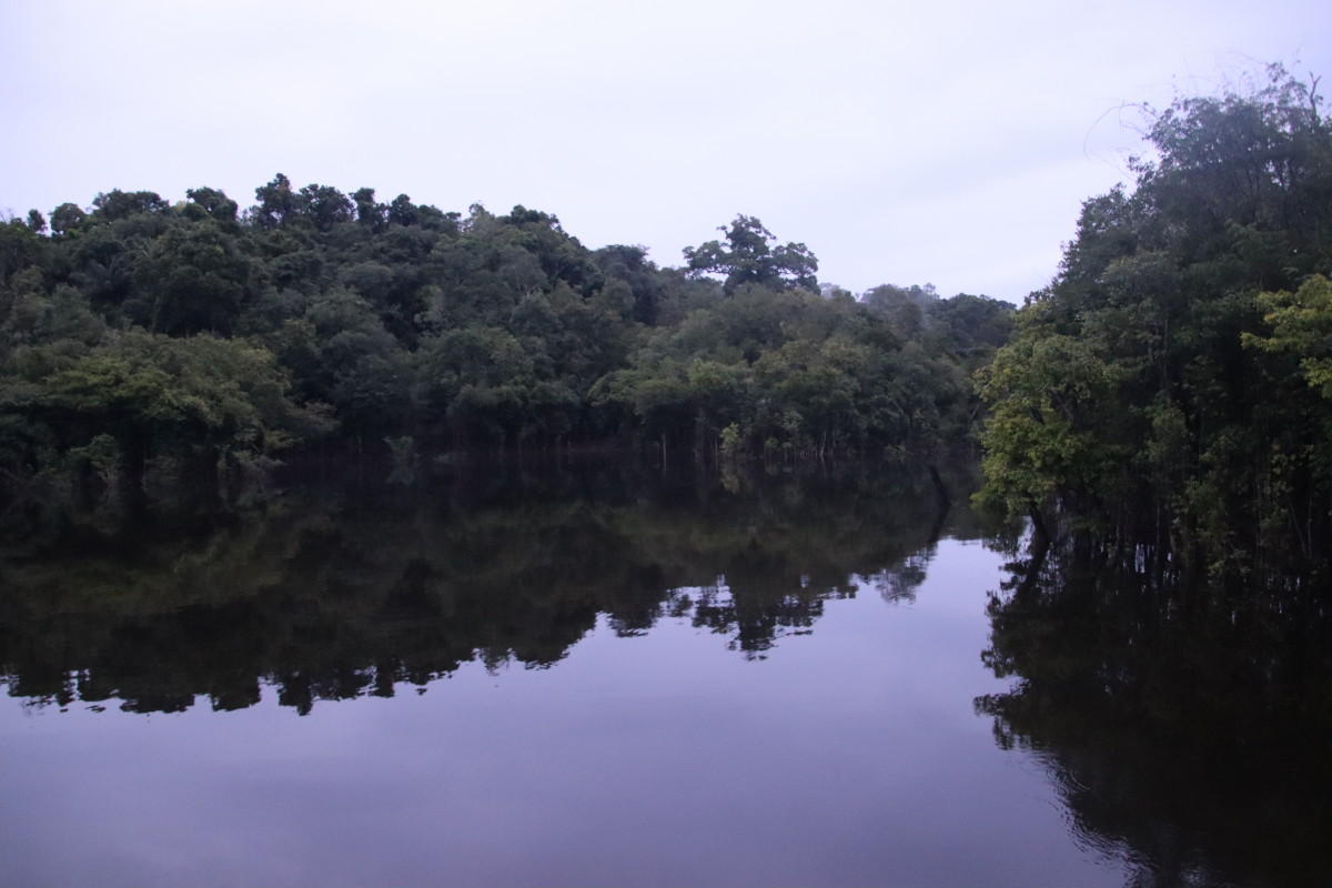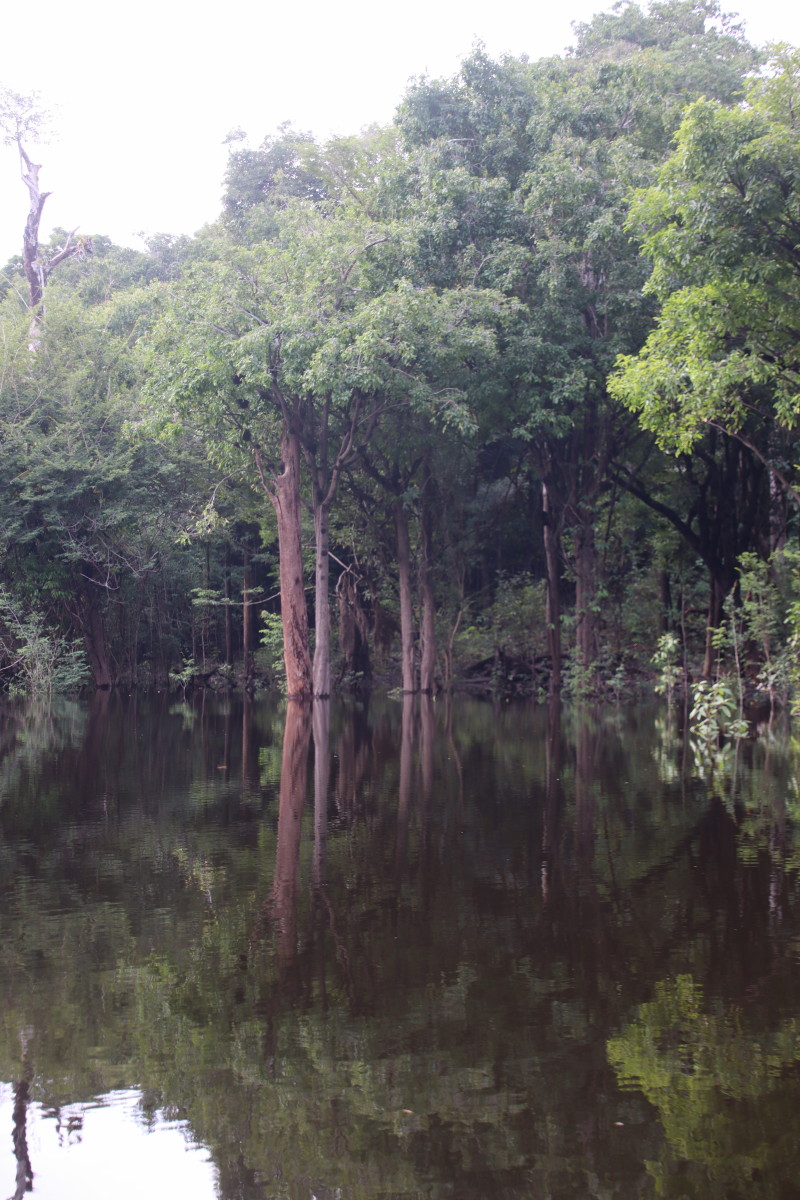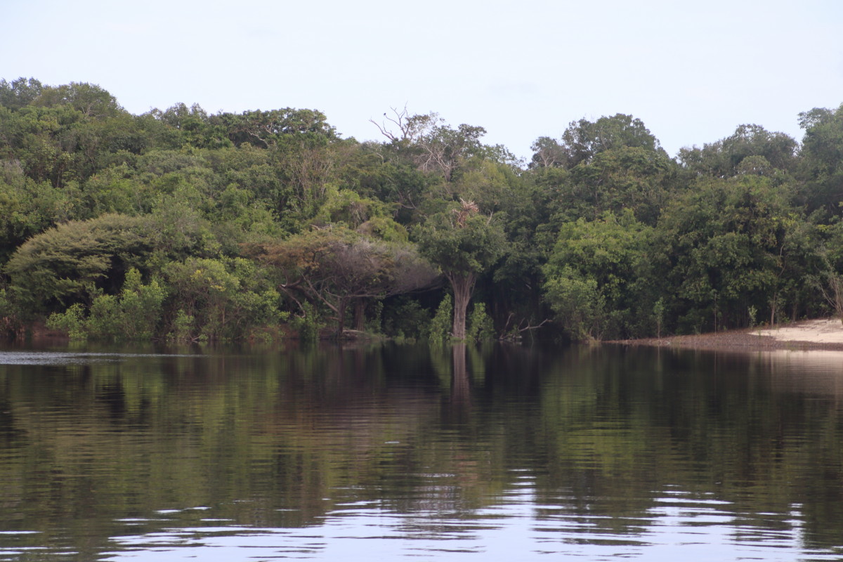 Après un bon moment dans l’eau chaude et claire (vu sa couleur on se croirait dans une grande tasse de thé) on continue la remontée du fleuve. Pose déjeuner dans une petite crique, juste avant Santa Maria. On en profite pour laisser passer un gros orage avec des pluies diluviennes. nous ne sommes qu’au début de la saison des pluies et le niveau du fleuve est encore bas. L’orage passé on continue la remontée du fleuve et on se niche tout au fond d’un adorable petit bras latéral juste à la tombée de la nuit.