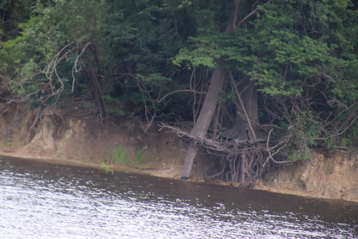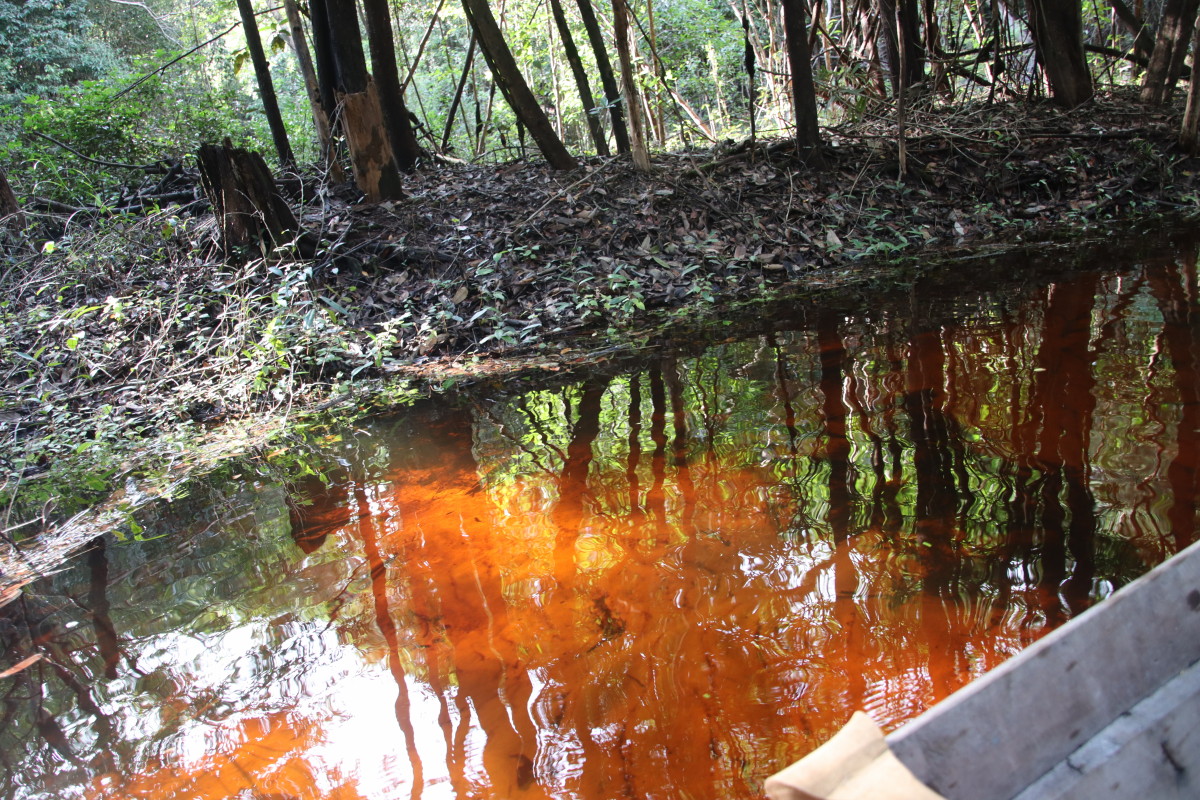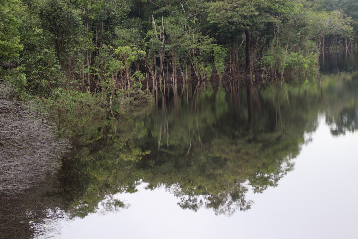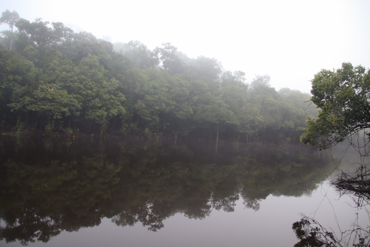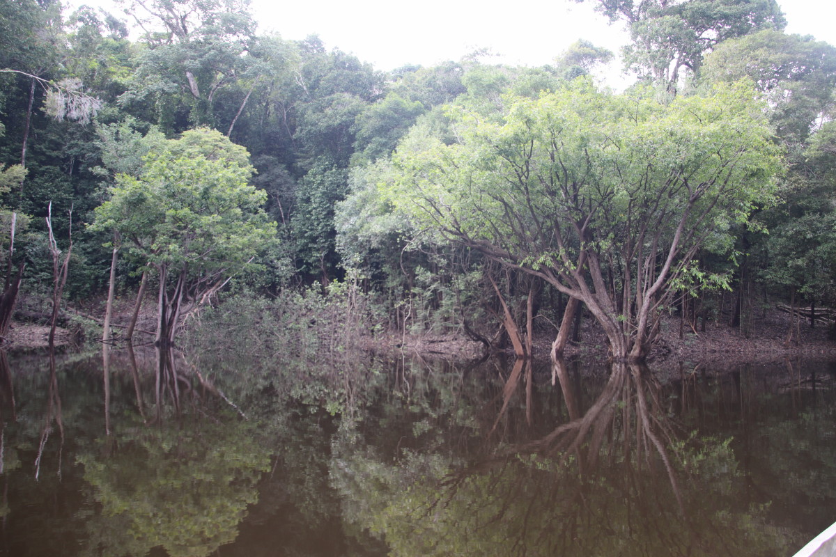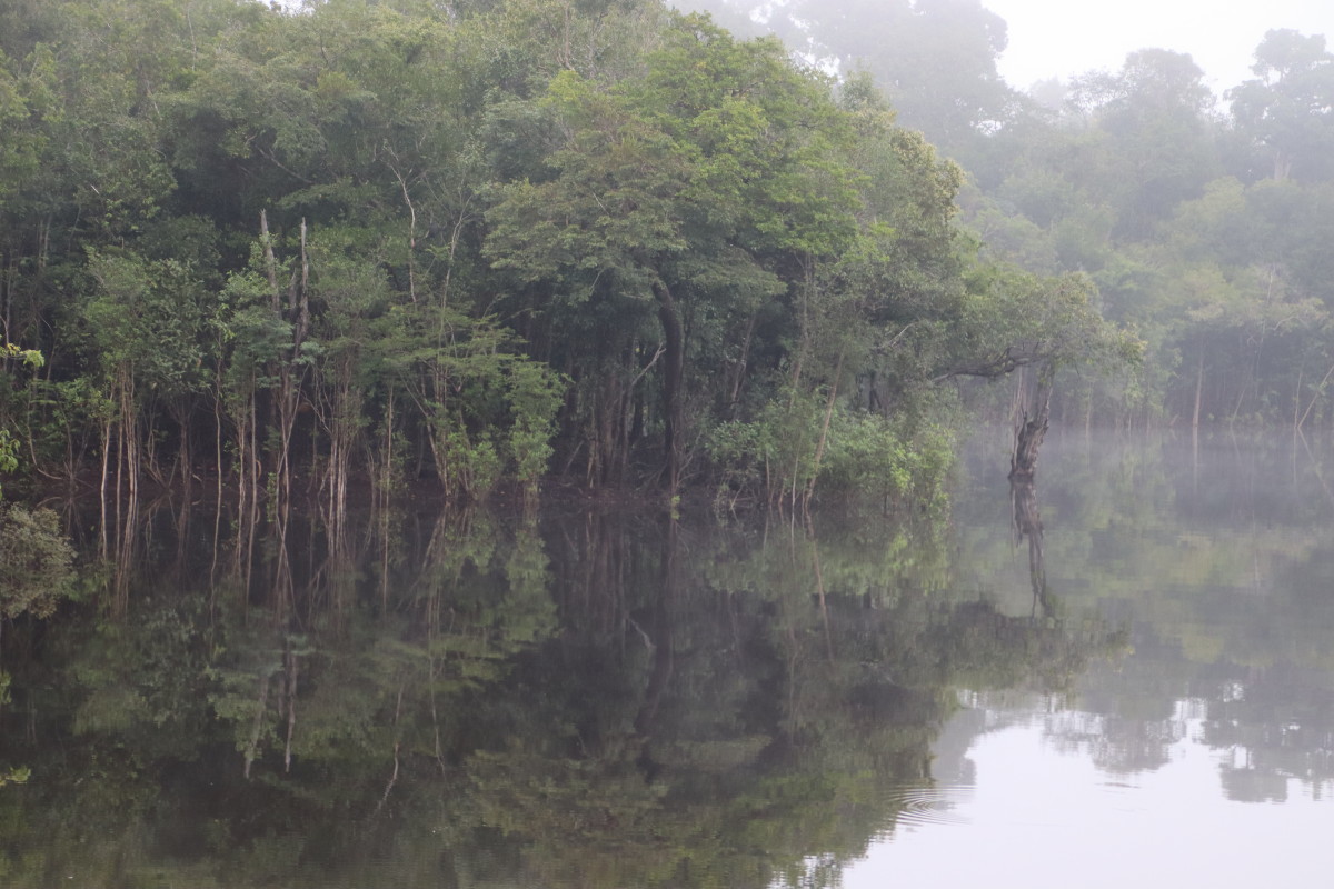 Après un bon moment dans l’eau chaude et claire (vu sa couleur on se croirait dans une grande tasse de thé) on continue la remontée du fleuve. Pose déjeuner dans une petite crique, juste avant Santa Maria. On en profite pour laisser passer un gros orage avec des pluies diluviennes. nous ne sommes qu’au début de la saison des pluies et le niveau du fleuve est encore bas. L’orage passé on continue la remontée du fleuve et on se niche tout au fond d’un adorable petit bras latéral juste à la tombée de la nuit.