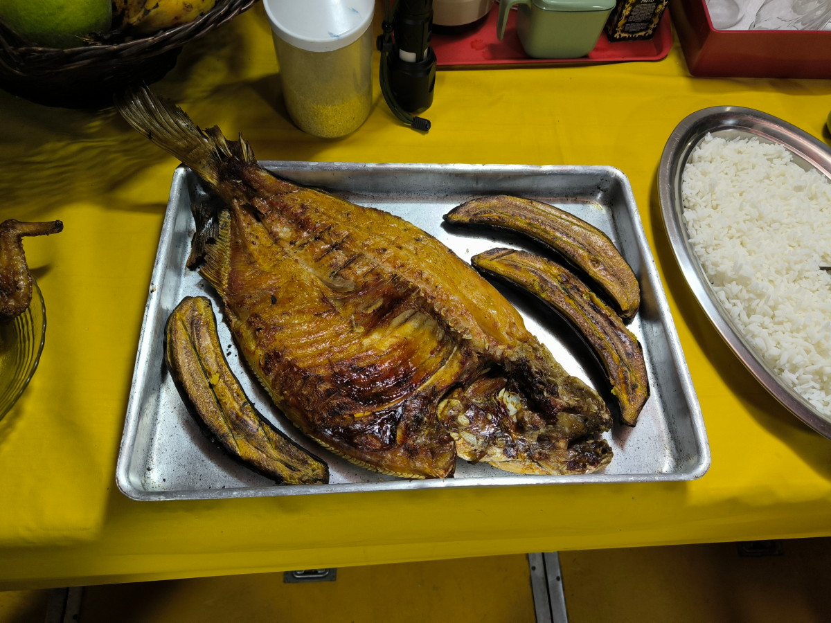 Pour le dîner notre hôte fait griller un très gros poisson plat fraichement pêché.