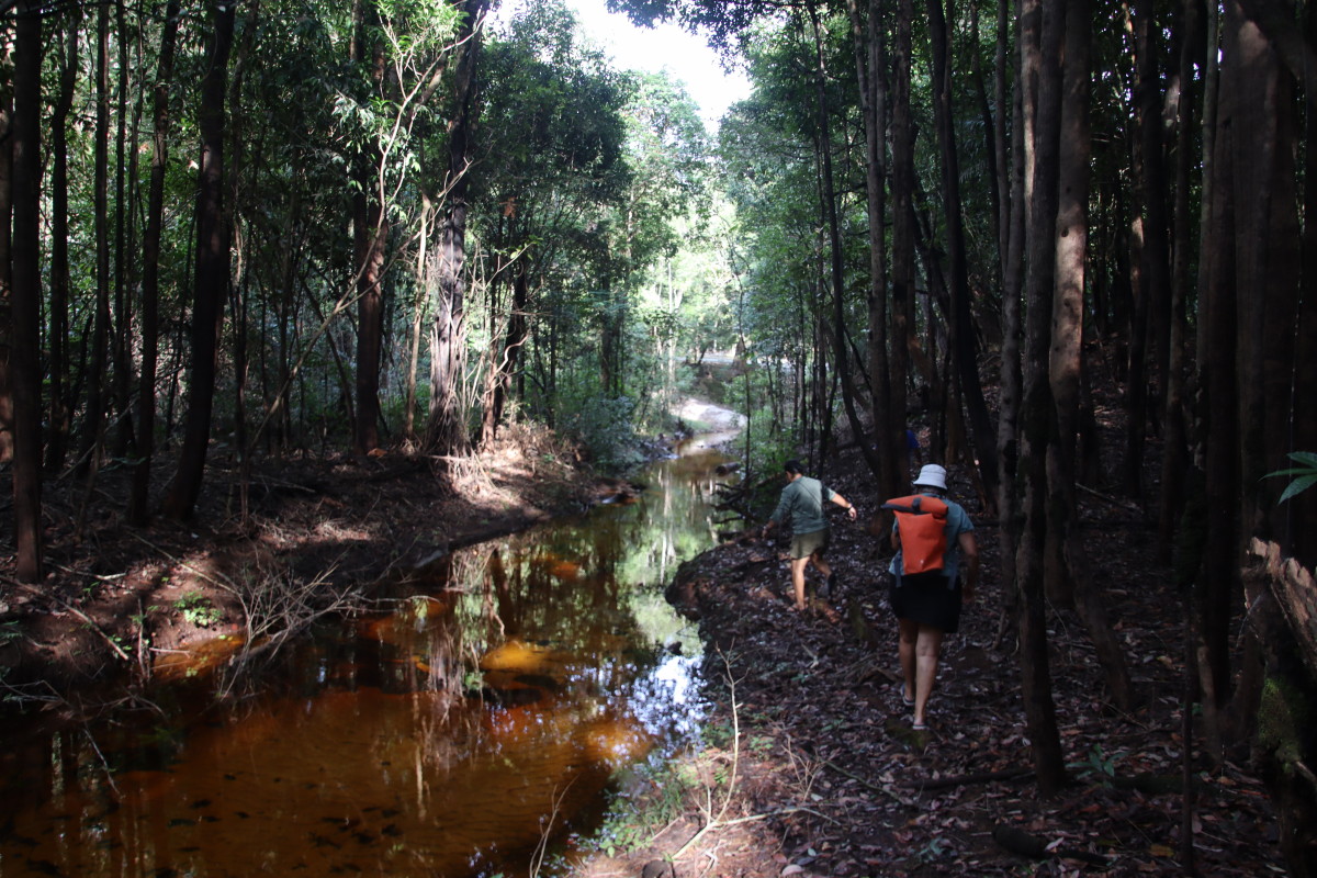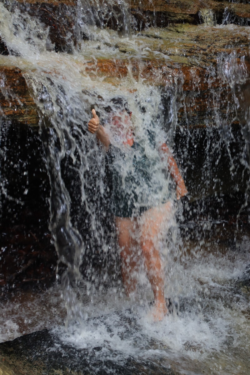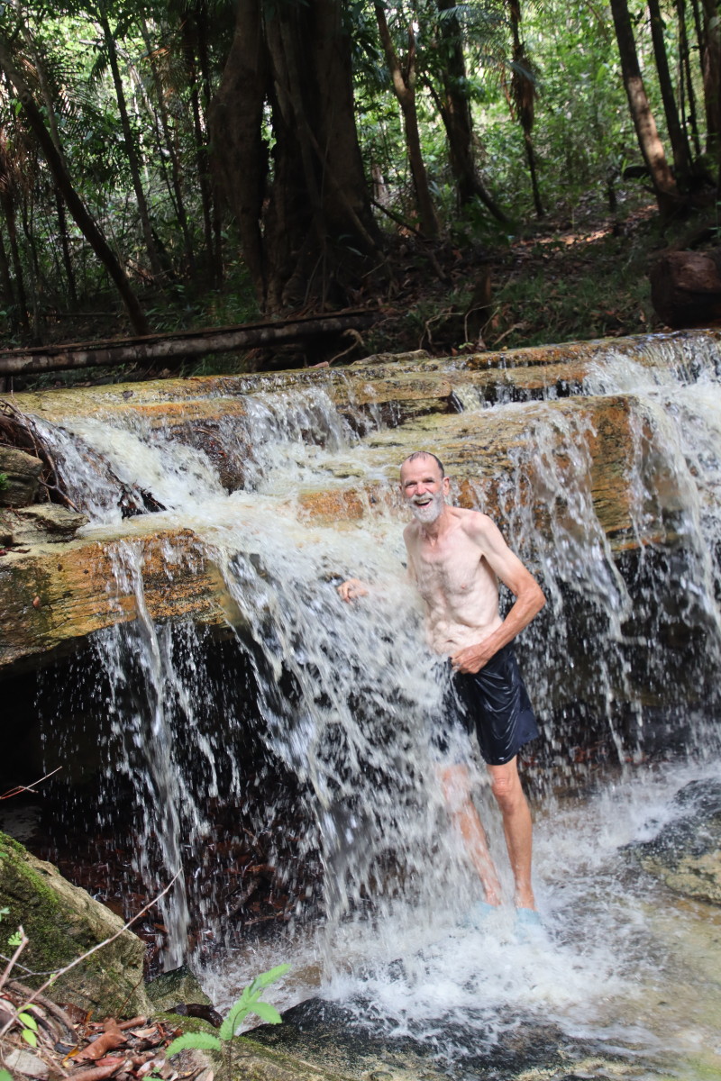 Déjeuner en route. Arrivés à destination le propriétaire des lieux un constructeur de bateau et éleveur de canards nous prête un canoé pour remonter la petite rivière mais le niveau de l’eau est encore trop bas et c’est à pied que nous finissons le trajet jusqu’au chutes. Baignade dans un eau limpide et fraiche. nous finissons la journée en explorant l’aval de la riviére à la pagaie.