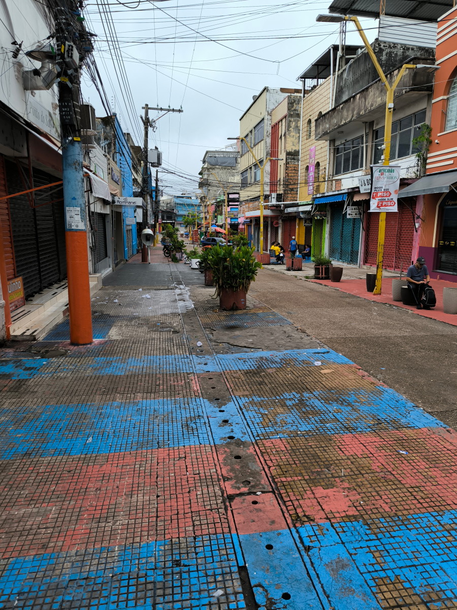 Nous passons le reste de la journée à visiter le vieux centre ville de Manaus. Une partie des édifices datant de l’époque coloniale ont été restaurés mais beaucoup ont été tout simplement abandonnés et se délabrent rapidement en raison de la chaleur et de l’humidité. Les rues piétonnes sont bondées, il faut se faufiler entre les étalages des marchands.