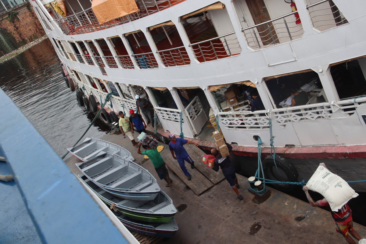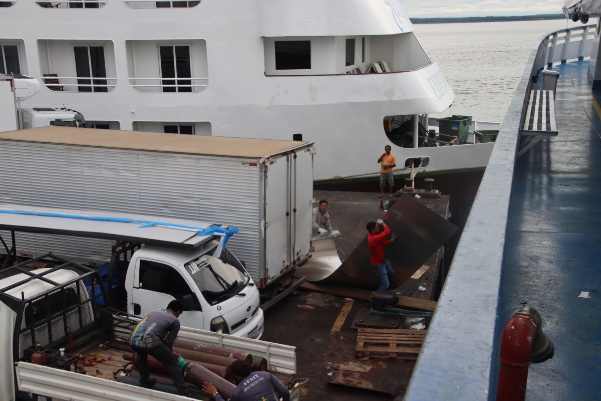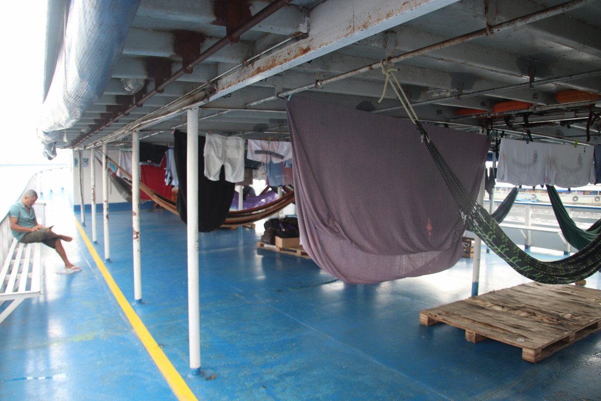 Le marché municipal est à 10’ de marche de l’hôtel, Nous y sommes à 08:00. L’agent nous trouve tout de suite une cabine, le prix est à peu près le même qu’annoncé hier par un autre intermédiaire mais cerise sur le gâteau, le bateau étant déjà à quai, dès que l’équipage aura fini le ménage on pourra déposer nos affaires et y dormir ce soir (le ferry ne part qu’à midi demain) ce qui nous fait l’économie d’une nuit d’hôtel. Le voyage dure 4 jours nous arriverons le 24 dans l’après-midi.