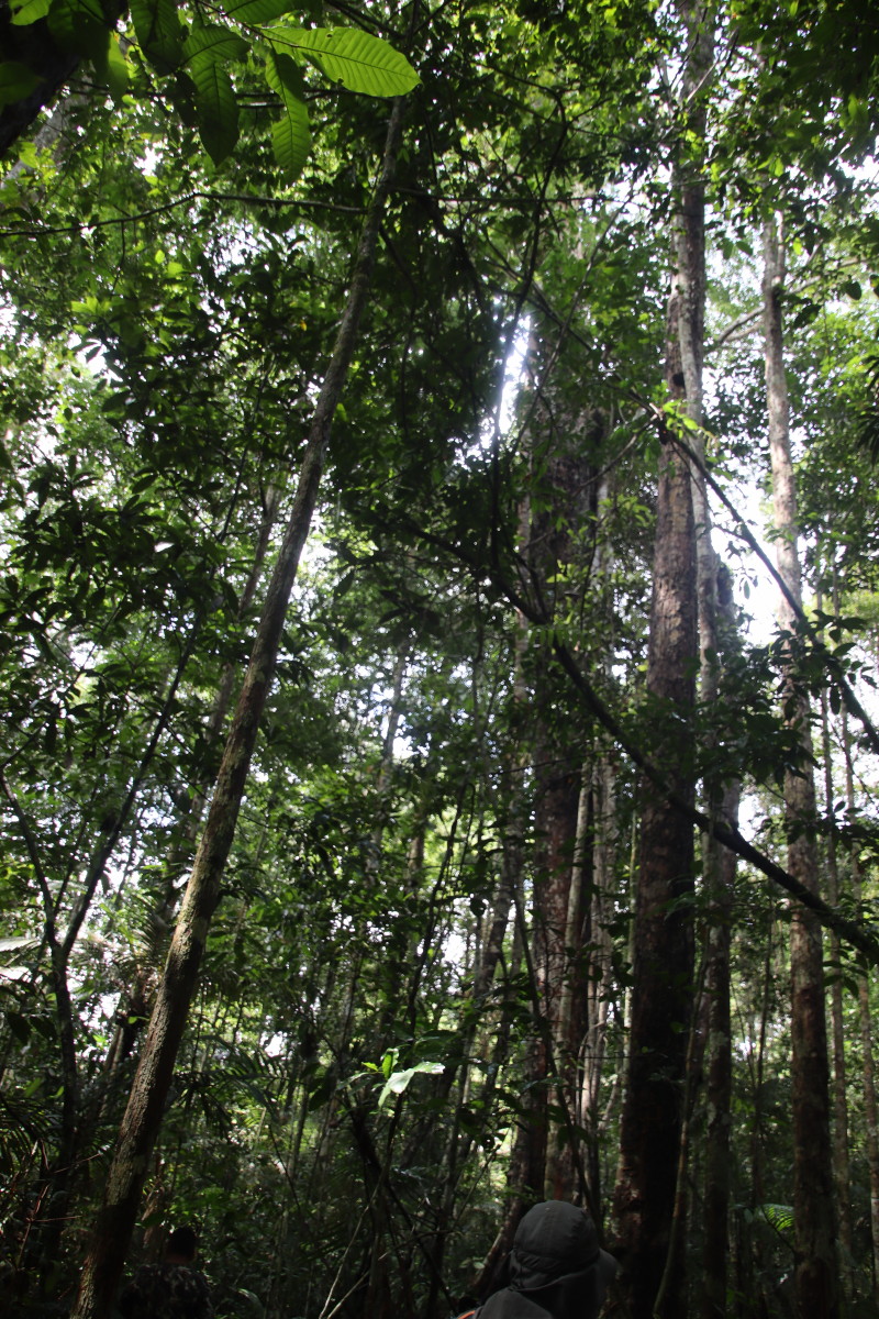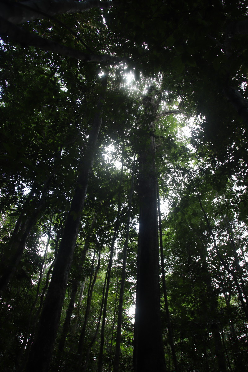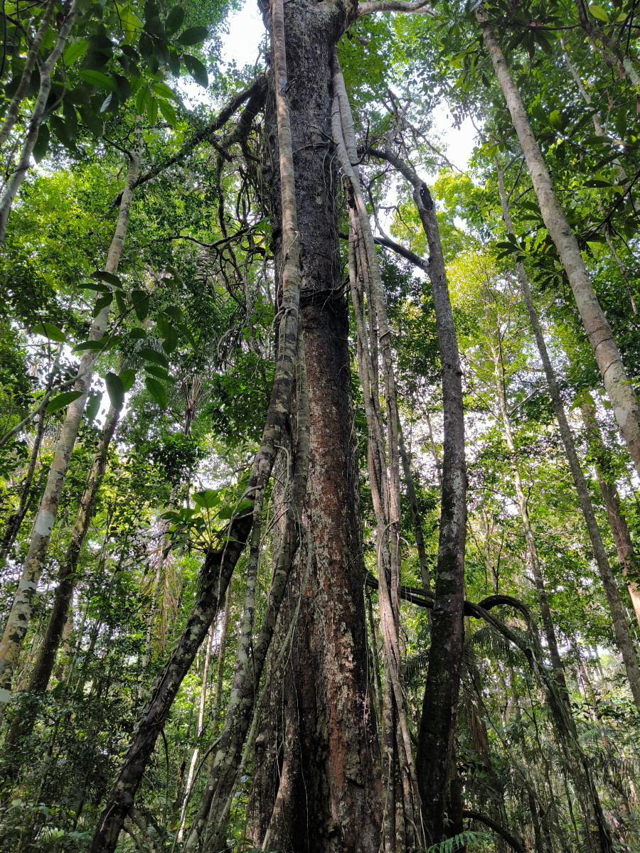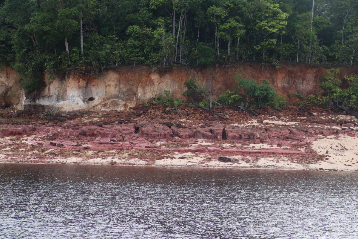 Dès le p’tit déj avalé nous décollons de notre petite plage paradisiaque pour descendre le fleuve moins d’une kilomètre jusqu’à la Casa Cabocla Heliconia. Le propriétaire à aménagé un sentier de randonnée dans sa forêt. Il faut se rappeler que cette forêt primaire est absolument impénétrable sans un sentier entretenu sauf à être un local armé d’une bonne machette de beaucoup de courage et de temps à revendre.