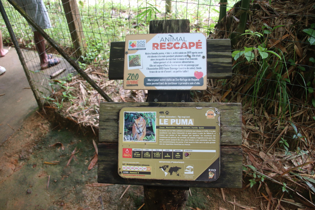 Un zoo? Aller voir des animaux enfermés c’est pas trop dans nos idées. Mais celui-ci est différent. Une partie des animaux présents ont été récupérés chez des particuliers qui les détenaient illégalement et sont en cours de réhabilitation. Une autre partie sont des animaux sauvages blessés qui ont été recueillis pour être soignés dans le but de les réinsérer dans leur milieu naturel si leur état le permet un jour. En plus, on a très envie de voir à quoi ressemble en réalité toutes ses bêtes dont nous avons entendu, aperçu la silhouette, vu les traces ou senti l’odeur.