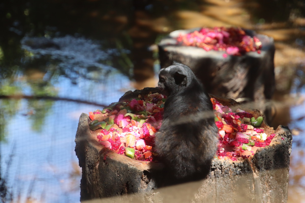 On aborde maintenant le royaume des convalescents qui sont en enclos et des singes en liberté qui se chamaillent ensembles.