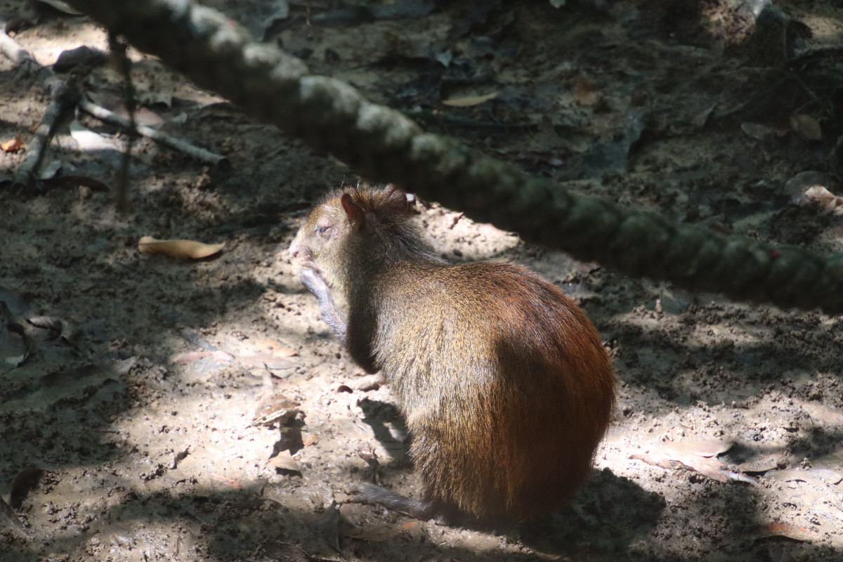 on passe voir les Agoutis , les ibis roses et pour finir les iguanes qui sont très nombreux en Guyane