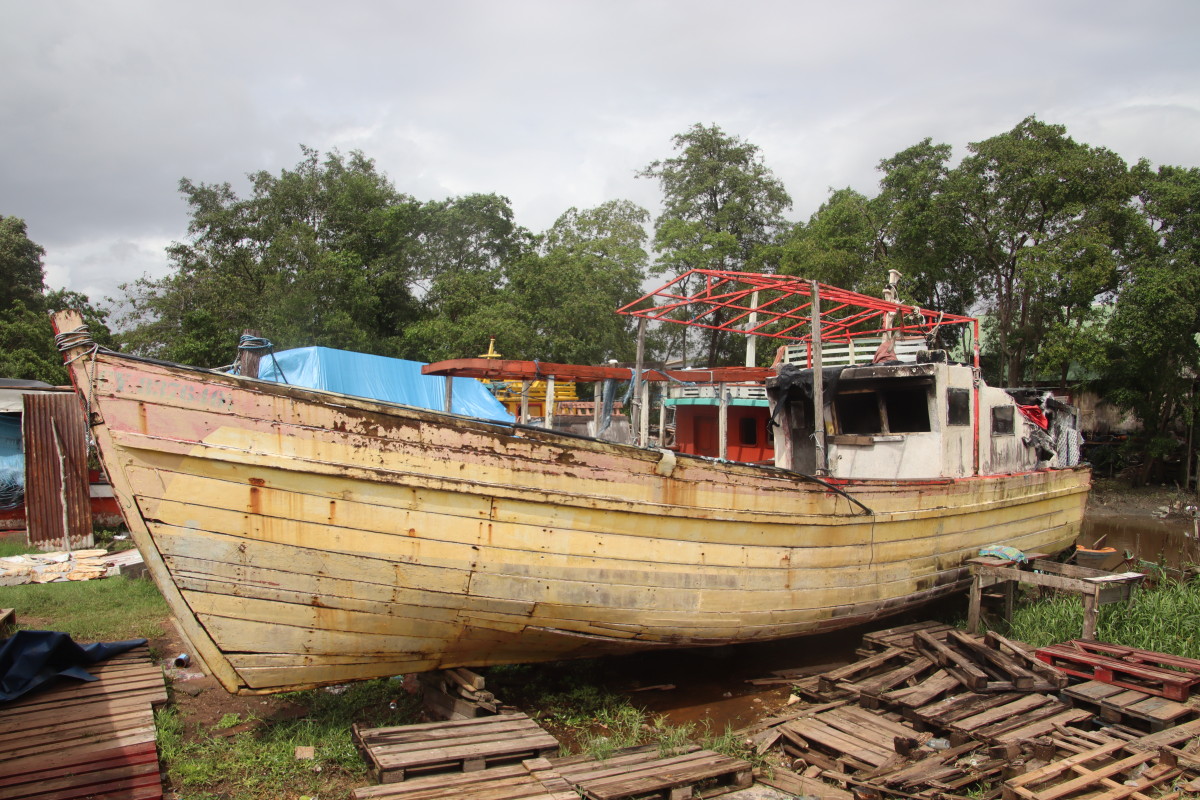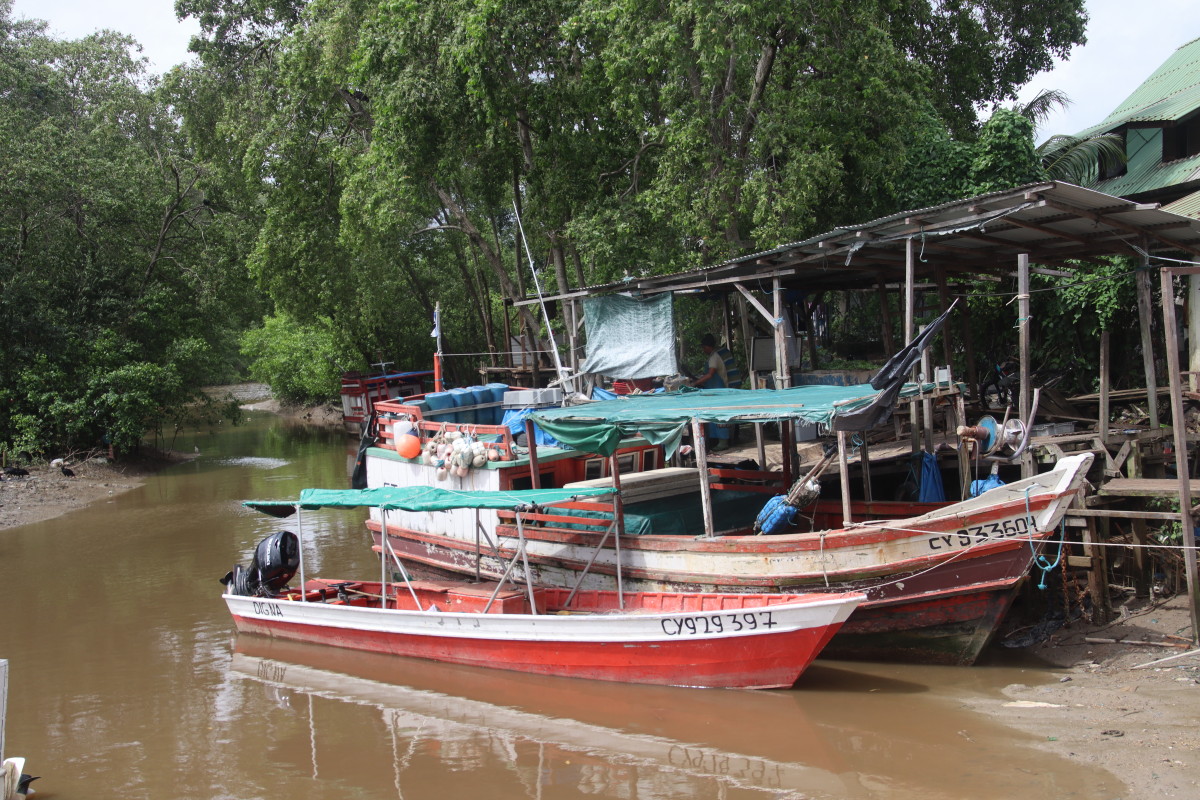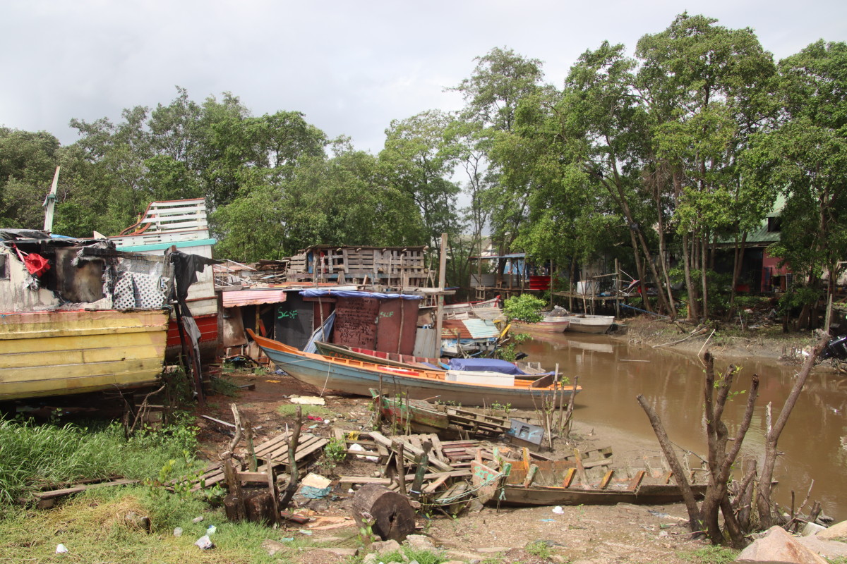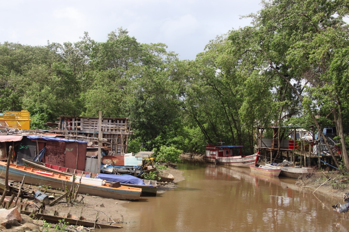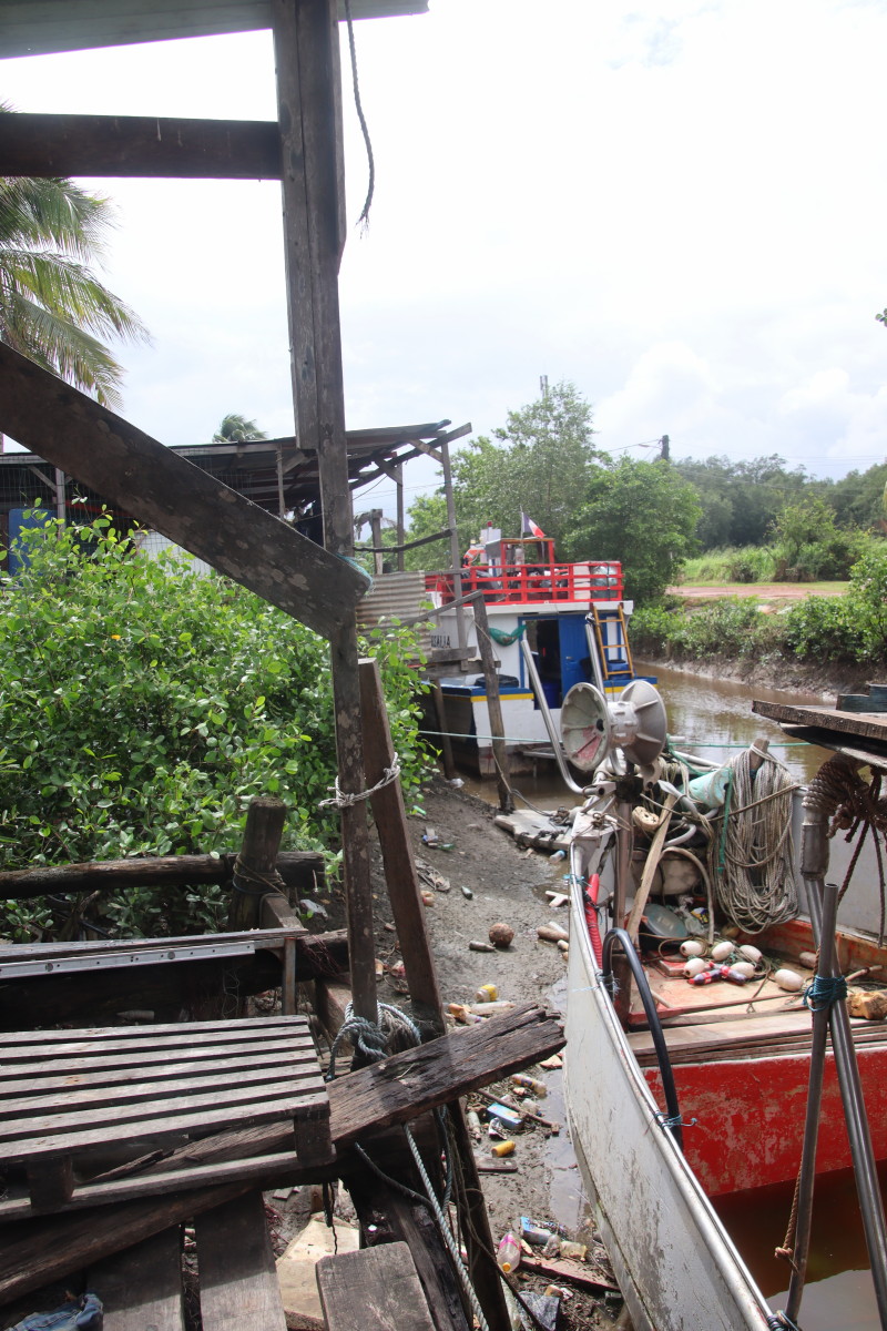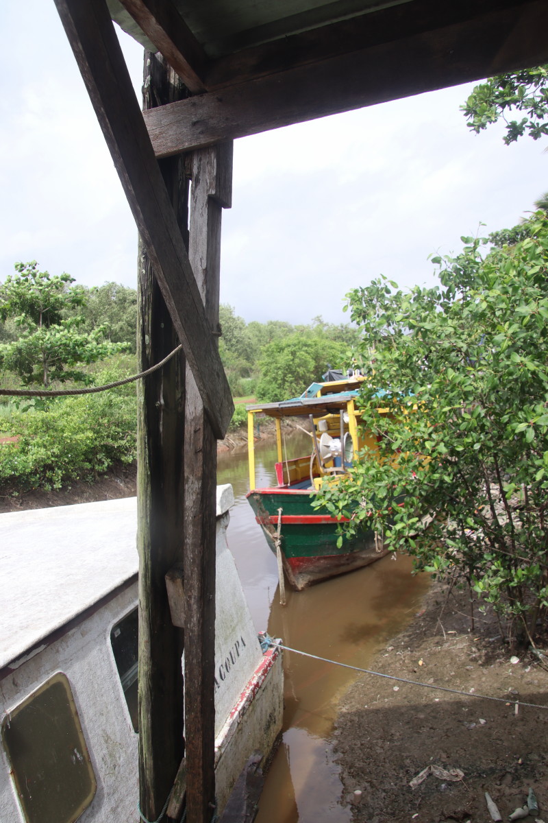 on commence par le port de pêche, autrefois sur la rive du fleuve, il n’est maintenant accessible que par d’étroits canaux se faufilant à travers la mangrove.