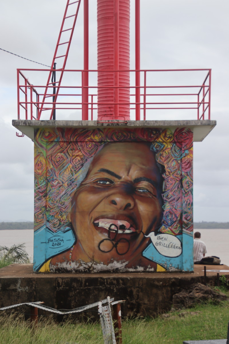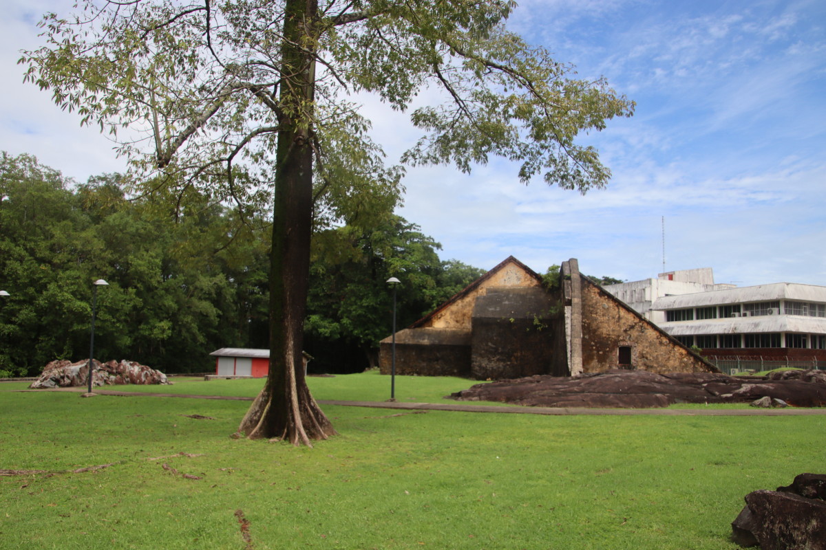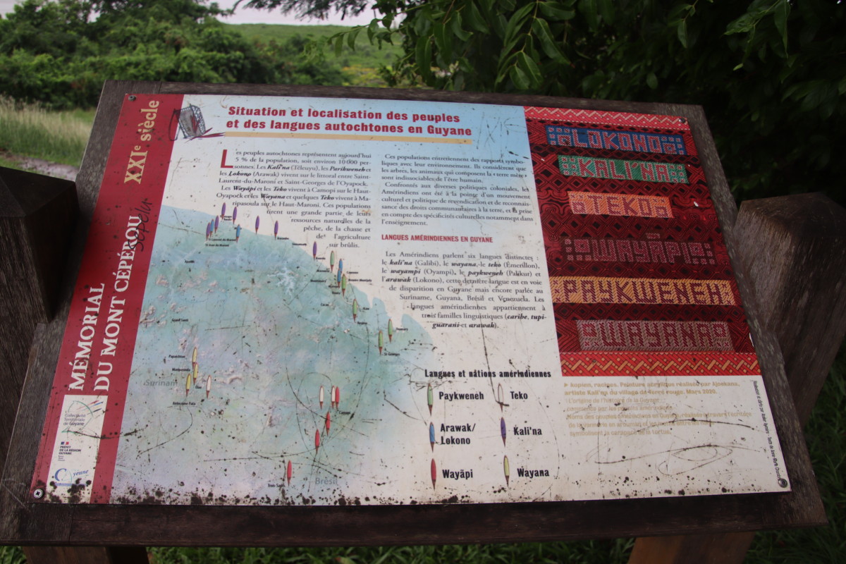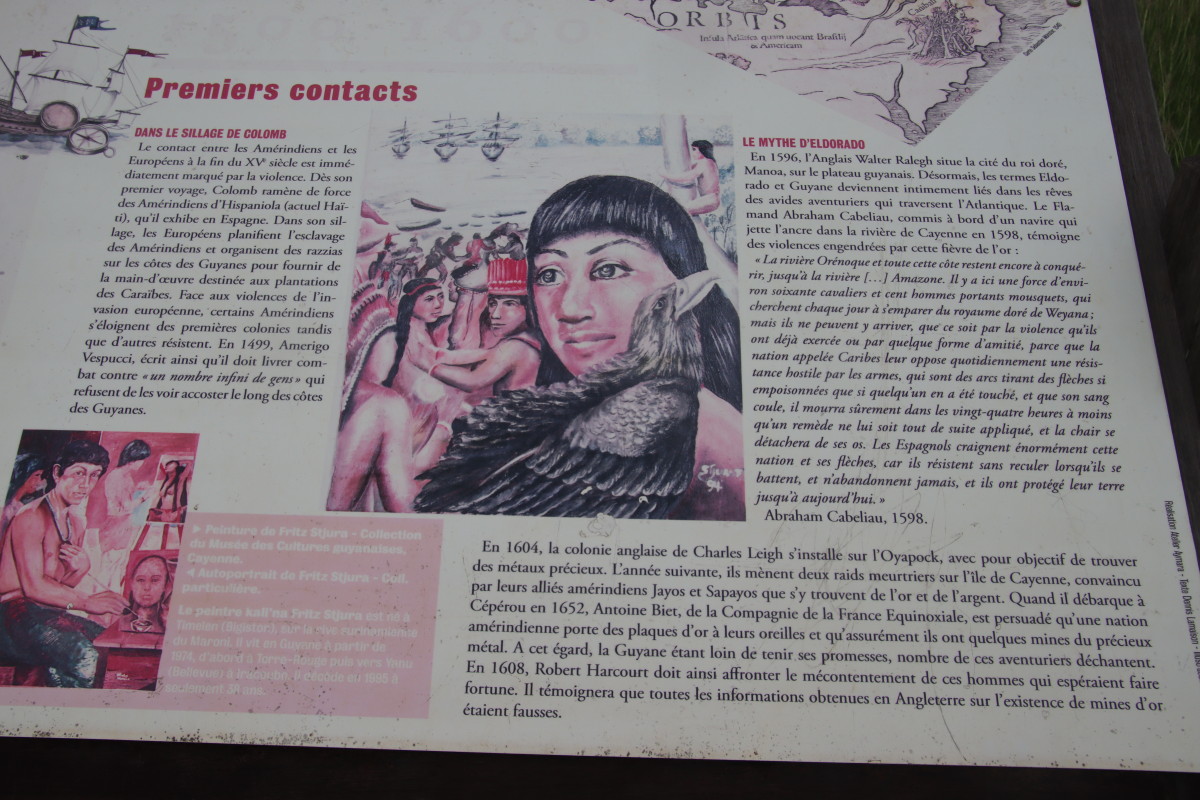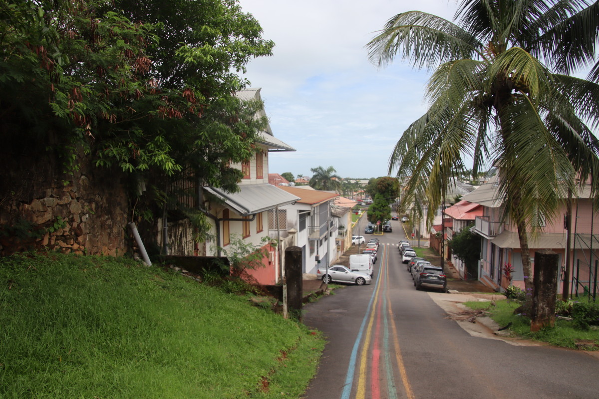 Puis nous grimpons au mont Cépérou accompagné d’un adorable reptile quadrupède. Cette colline domine la cité et l’embouchure. Elle est couronnée par un fort dont le rôle était de défendre la ville contre quelques attaques étrangères mais surtout contre la vindicte des population locales (amérindiennes) qui luttaient pour leur terre et leur indépendance. Elles n’ont d’ailleurs jamais été vaincues mais leur résistance s’est affaiblie quant ils ont été décimés par les maladies importées par les occidentaux. Des panneaux judicieusement disposés autours de la cour du fort rappelle leur histoire et réhabilite leur culture.