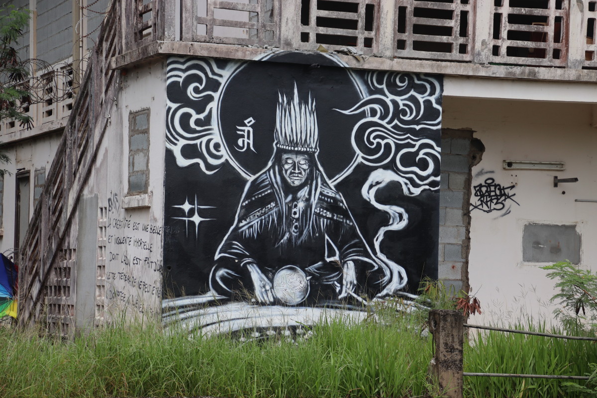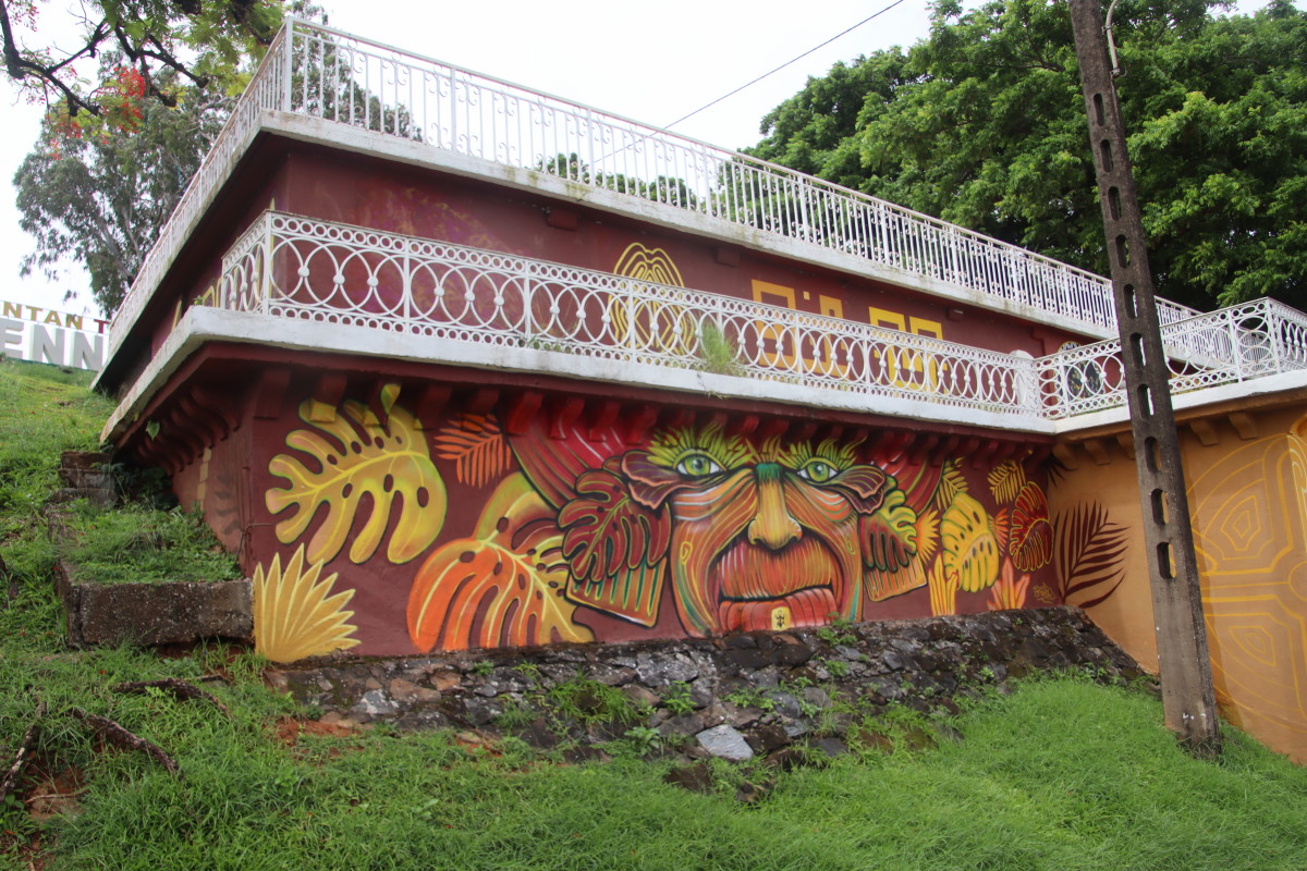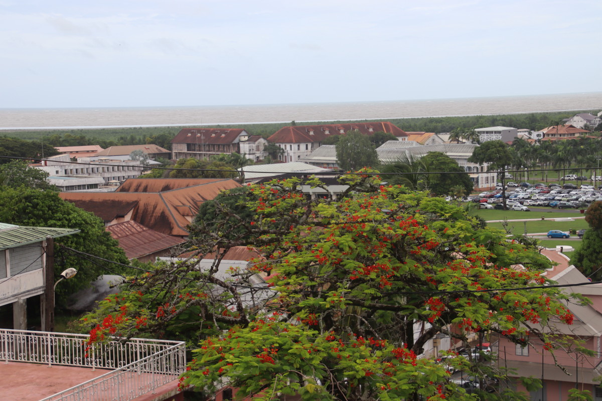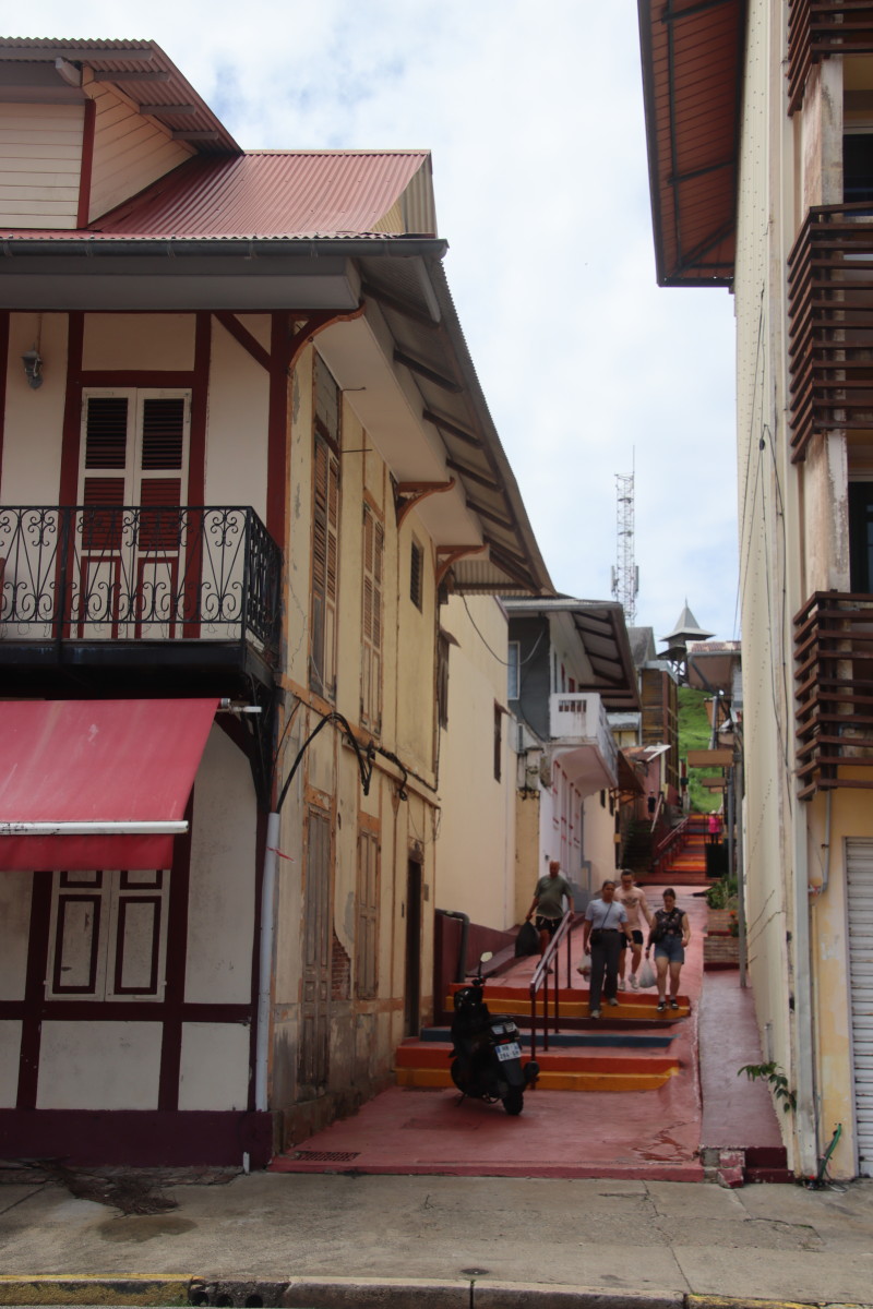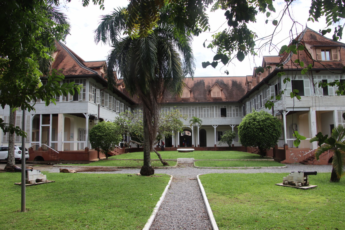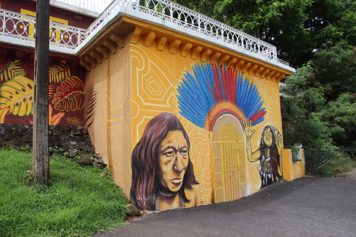 Puis nous grimpons au mont Cépérou accompagné d’un adorable reptile quadrupède. Cette colline domine la cité et l’embouchure. Elle est couronnée par un fort dont le rôle était de défendre la ville contre quelques attaques étrangères mais surtout contre la vindicte des population locales (amérindiennes) qui luttaient pour leur terre et leur indépendance. Elles n’ont d’ailleurs jamais été vaincues mais leur résistance s’est affaiblie quant ils ont été décimés par les maladies importées par les occidentaux. Des panneaux judicieusement disposés autours de la cour du fort rappelle leur histoire et réhabilite leur culture.