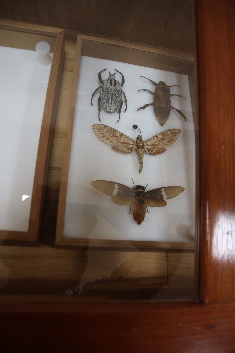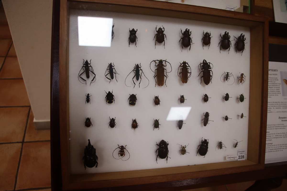 Nous finissons cette journée par la visite du Musée Alexandre-Franconie. Les salles du réez de chaussée sont consacrées à la faune locale. Si la partie sur les vertébrés ne nous emballe pas (animaux empaillés) la section d’entomologie s’avère beaucoup plus intéressante surtout pour notre co-skippeuse qui c’est récemment découvert une passion pour les insectes (mais ça, vous l’aviez sans doute remarqué) d’ailleurs nous en profitons pour ouvrir une nouvelle rubrique.