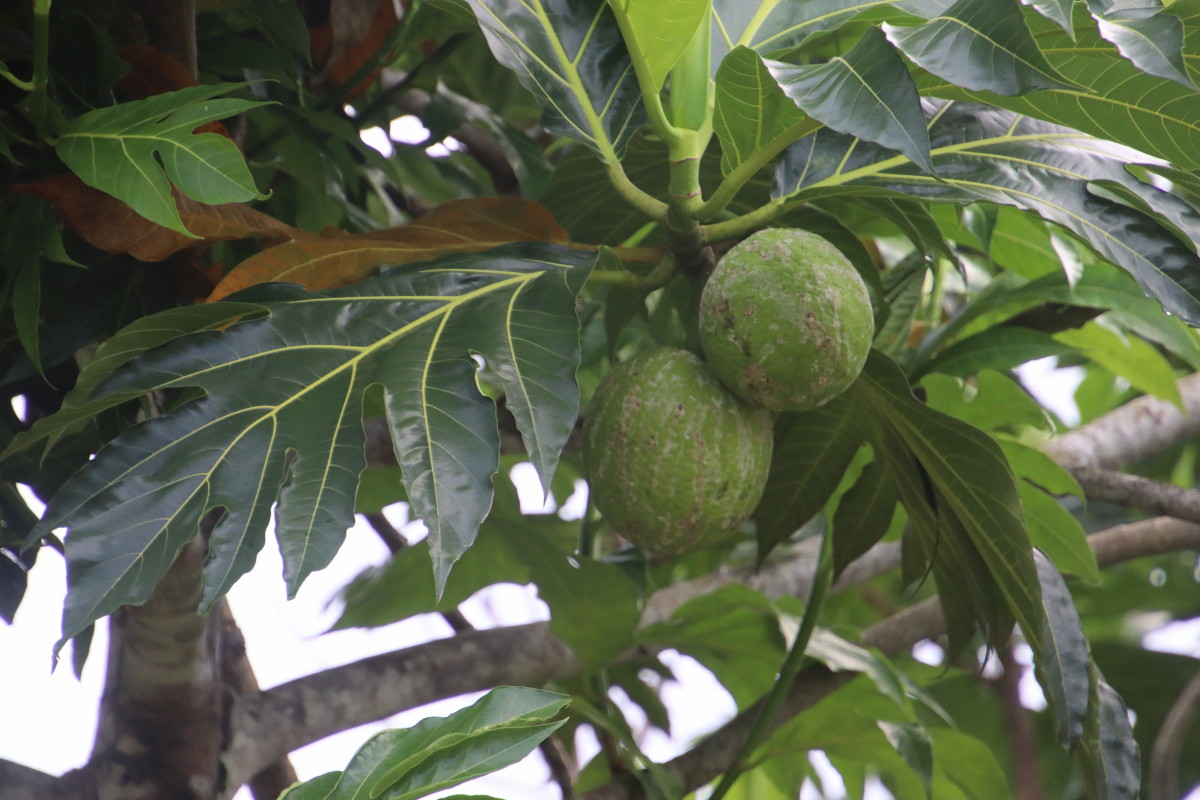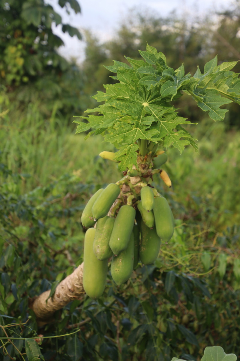Bien sûr nous sommes dans une région tropicale humide on trouve donc beaucoup de coco, arbre à pain, papaye, taro, manioc et autre.