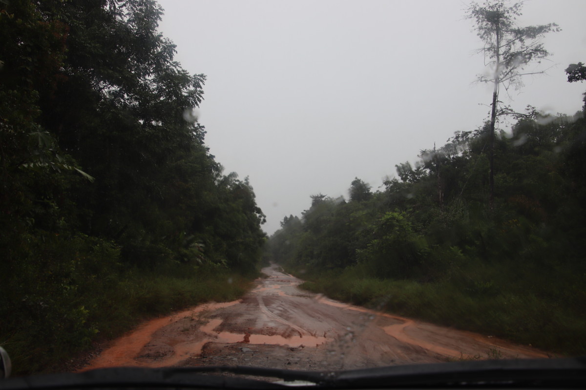 Le Suriname a beaucoup moins de parc naturels que la Guyane et 1 seul semble être accessible par la route et présenter quelques sentiers balisés c’est le parc naturel de Brownsweg au bord du grand lac de Brokopondostuwmeer formé par le fleuve Suriname. Il n’est qu’à 95 km de Domburg, c’est donc vers là que nous nous dirigeons. Mais la piste de 15 km qui y va depuis le village est absolument impraticable même avec le SUV que nous a prêté le loueur en attendant que la petit citadine louée soit prête. Les trous plein d’eau sont énormes et trop profonds. Mais bon on ne regrette pas trop parce qu’avec les intempéries que nous subissons ce n’était de toute façon pas prudent de nous promener en forêt, on va donc rester sur la route principale pour voir ou elle nous mène.