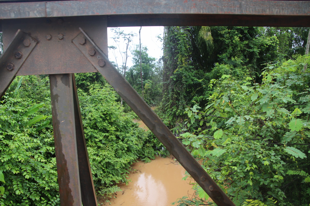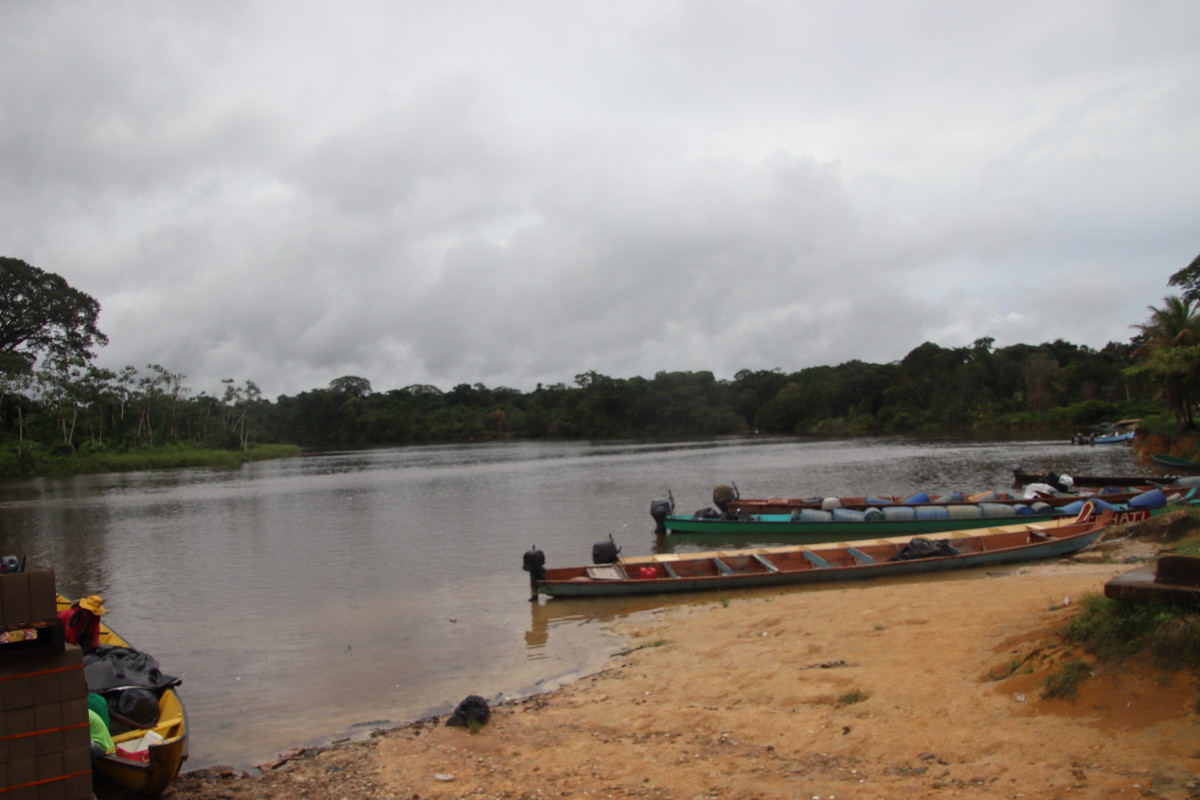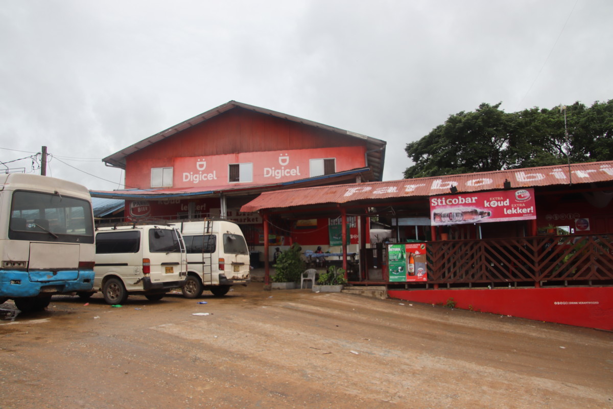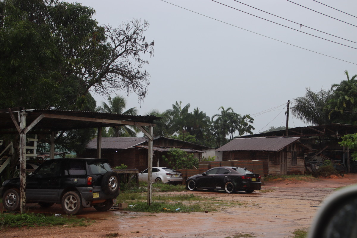 Aprés une courte pause piquenique à un endroit où il semblait il y avoir un sentier s’enfonçant dans la forêt mais en fait il menait à un site d’orpaillage…. Nous décidons de poursuivre la route jusqu’à Atjoni. C’est à dire jusqu’au bout de la route car elle de va pas plus loin. Si vous jetez un coup d’œil à une carte vous verrez qu’à part les grands axes le long de la côte il y a très peu de routes goudronnées et nous sommes au point le plus sud de tout le Surinam accessible par une route carrossable . Aprés c’est la forêt jusqu’au Brésil.