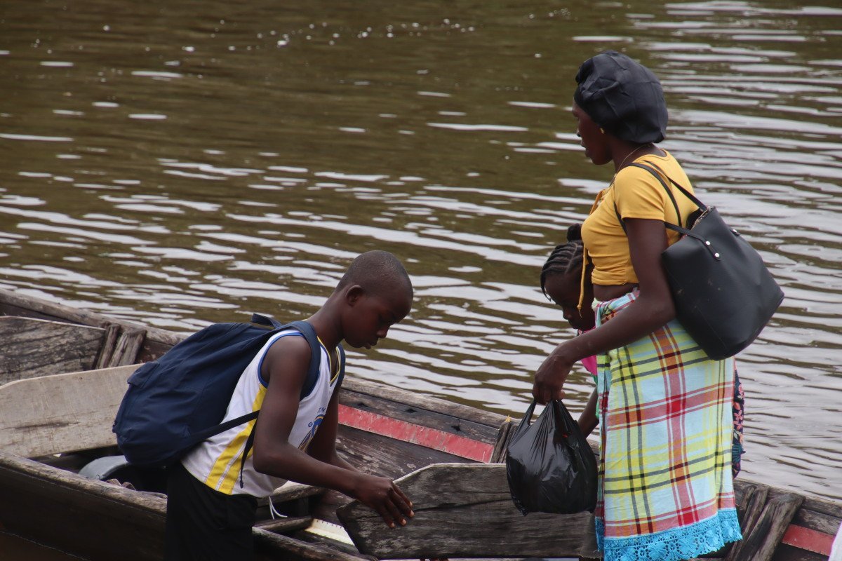 Dans cette partie du pays, la grande mixité ethnique constatée tout au tour de Paramaribo n’existe pas. Ici on voit seulement des « marrons » (appelés aussi bushinengues) descendants des esclaves affranchis au siècle dernier et victimes de massacres par l’armée pendant la révolution de 1985 à 1992. Leur installation dans la région a chassé les populations autochtones (amérindiens) plus au sud dans la forêt ou ils sont aujourd’hui menacés par l’orpaillage et les projet miniers. La plupart des bushinengues vivent dans une situation d’extrême dénuement dans des petits hameaux de huttes minuscules et survivent en vendant quelques fruits ou légumes de leur jardin ou en travaillant dans les exploitations forestières.