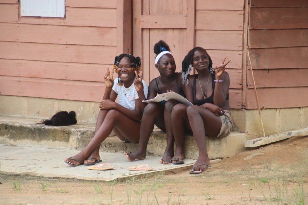 Dans cette partie du pays, la grande mixité ethnique constatée tout au tour de Paramaribo n’existe pas. Ici on voit seulement des « marrons » (appelés aussi bushinengues) descendants des esclaves affranchis au siècle dernier et victimes de massacres par l’armée pendant la révolution de 1985 à 1992. Leur installation dans la région a chassé les populations autochtones (amérindiens) plus au sud dans la forêt ou ils sont aujourd’hui menacés par l’orpaillage et les projet miniers. La plupart des bushinengues vivent dans une situation d’extrême dénuement dans des petits hameaux de huttes minuscules et survivent en vendant quelques fruits ou légumes de leur jardin ou en travaillant dans les exploitations forestières.