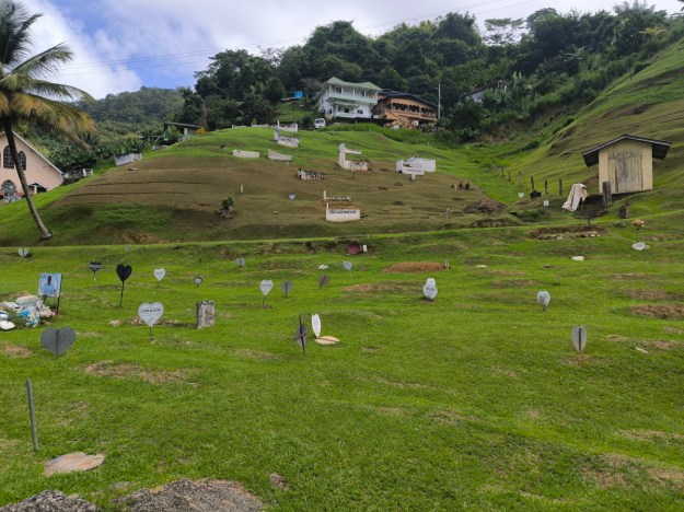 Il y aurait pas mal de sentiers de randonnées mais faute d’une bonne carte (pas acheté de SIM locale non plus) et de temps (sur ces routes 20 km c’est plus d’une heure de trajet sans les arrêts photos, on se contente de quelques poses pour se dégourdir les jambes comme à Mount Dillon. On prend tout de même le temps d’une bonne baignade sur la plage de Castara (attention ne pas s’endormir sous un cocotier).