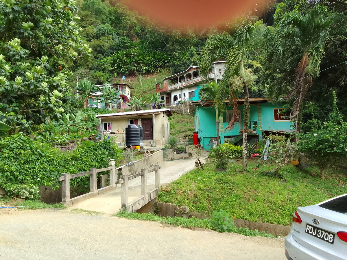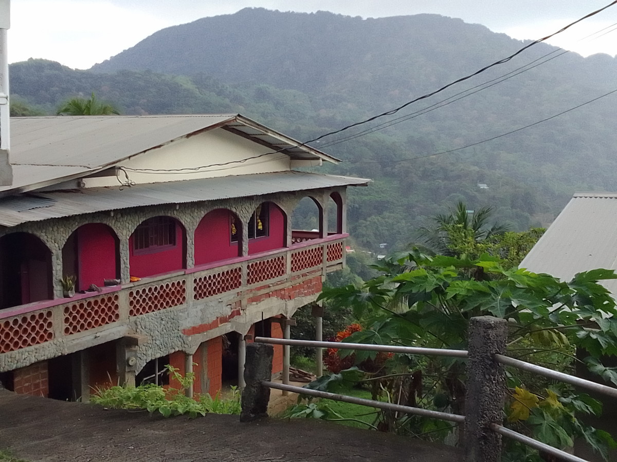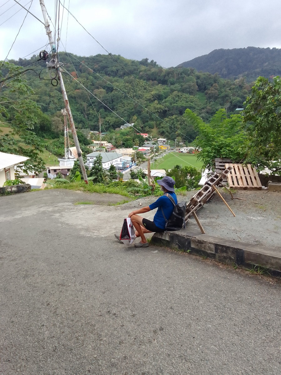 L’ascension commence par les rues de la petite ville (village serait plus approprié) passe devant l’école et l’église méthodiste. A partir de là même si on est toujours sur une route carrossable la montée se fait de plus en plus raide. De chaque côté des maisons colorées sont accrochées à la pente.