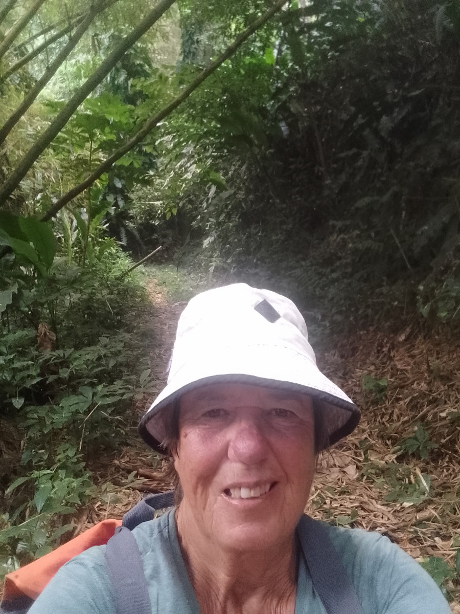 On contourne le piton ou se trouve les antennes et le point de vue, on croise une vache broutant l’herbe sur le côté du sentier puis le sentier rétréci, la végétation devient de plus en plus dense si bien qu’au bout d’un moment il faudrait une machette pour continuer à avancer.