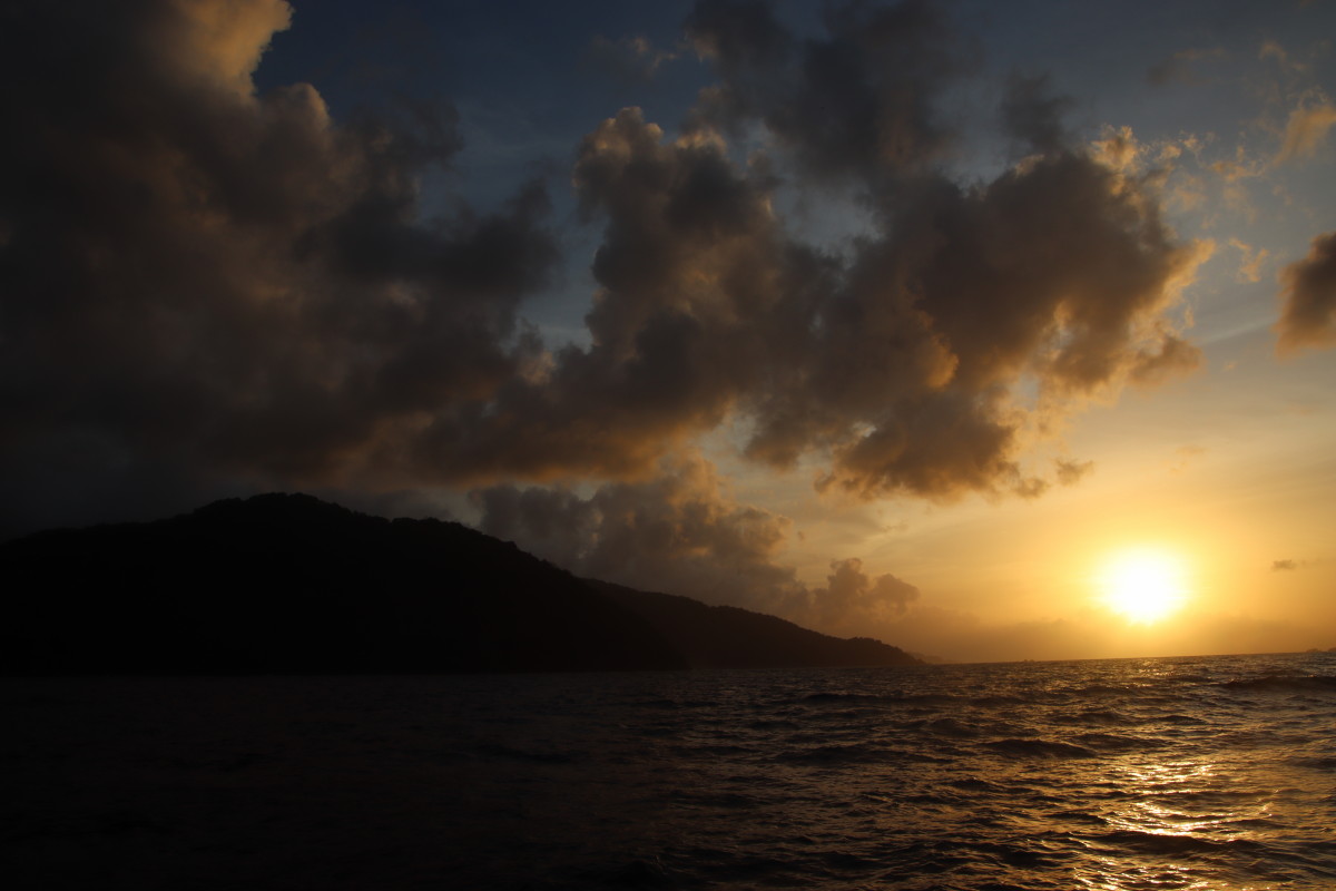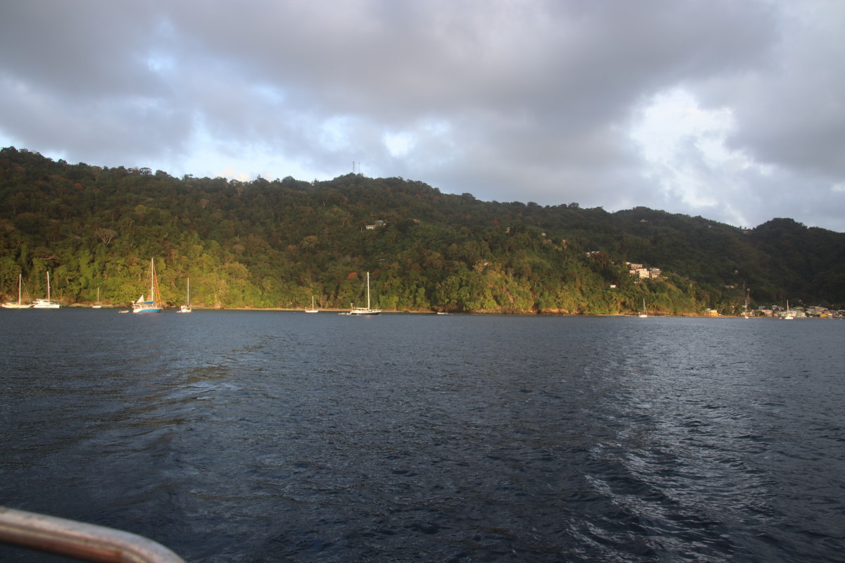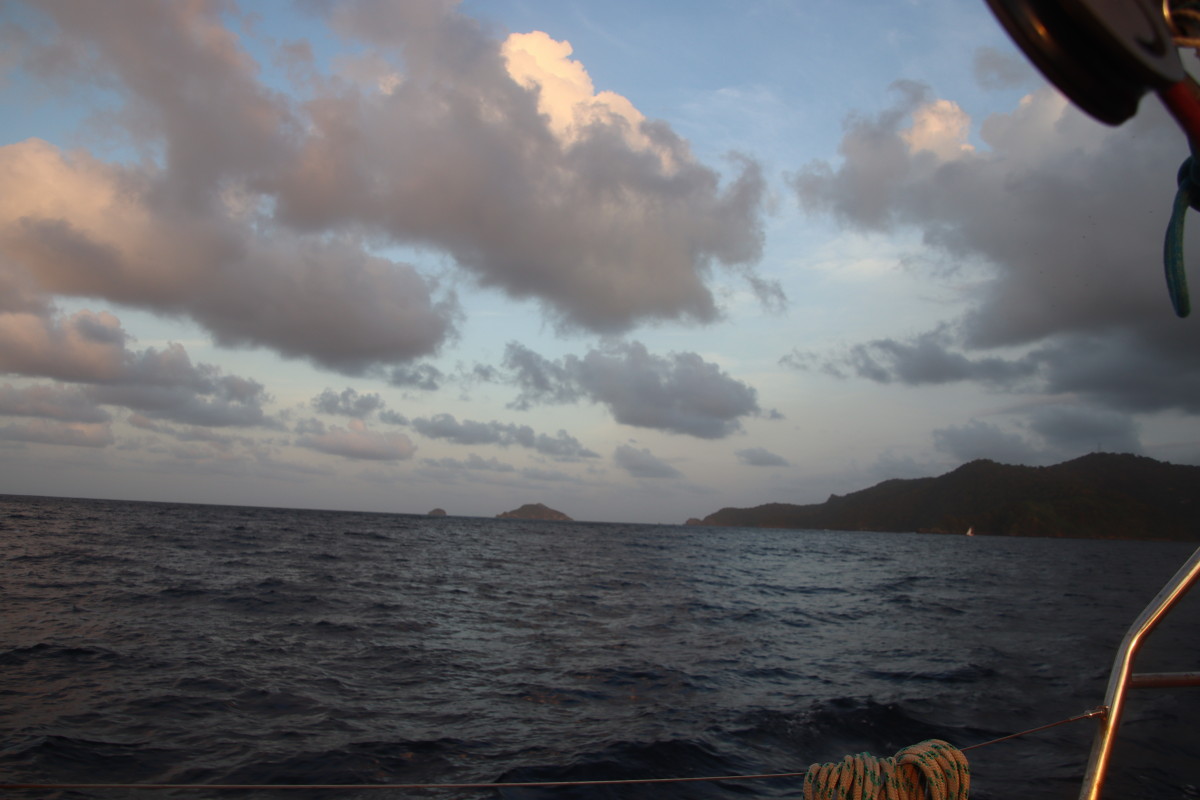 Clearance de départ accomplie dans la matinée avec encore 2 fois plus de papiers à remplir à la main que lors de l’arrivée, nous avons promis aux autorités (en l’occurrence un douanier très sympa) de partir avant la fin de la journée et c’est sur un magnifique coucher de soleil que nous quittons Tobago l’enchanteresse.