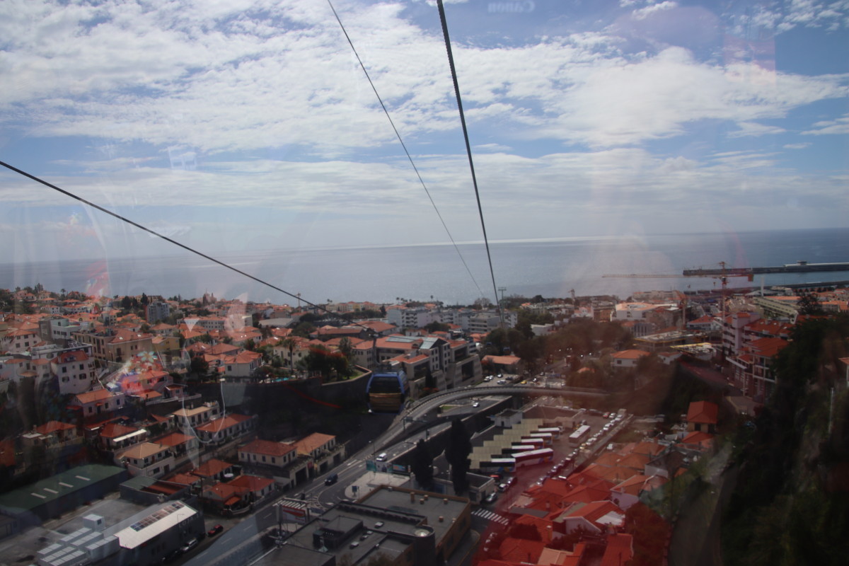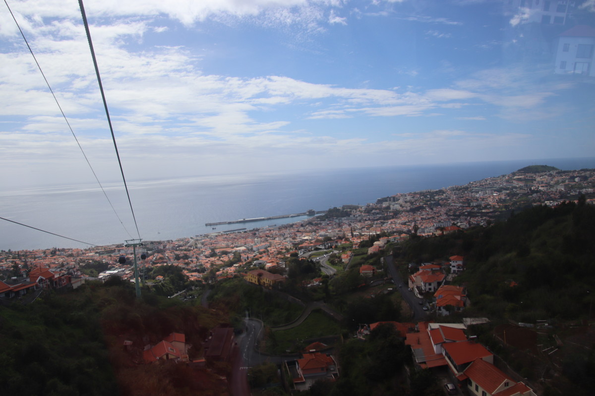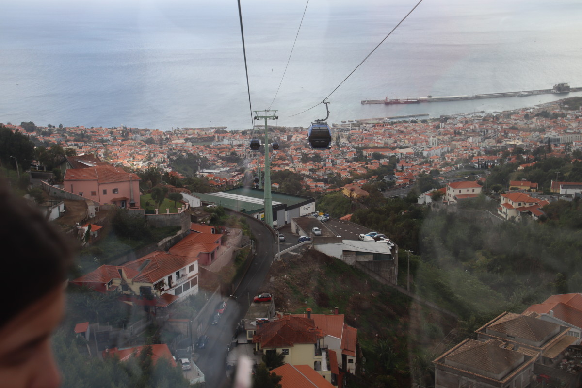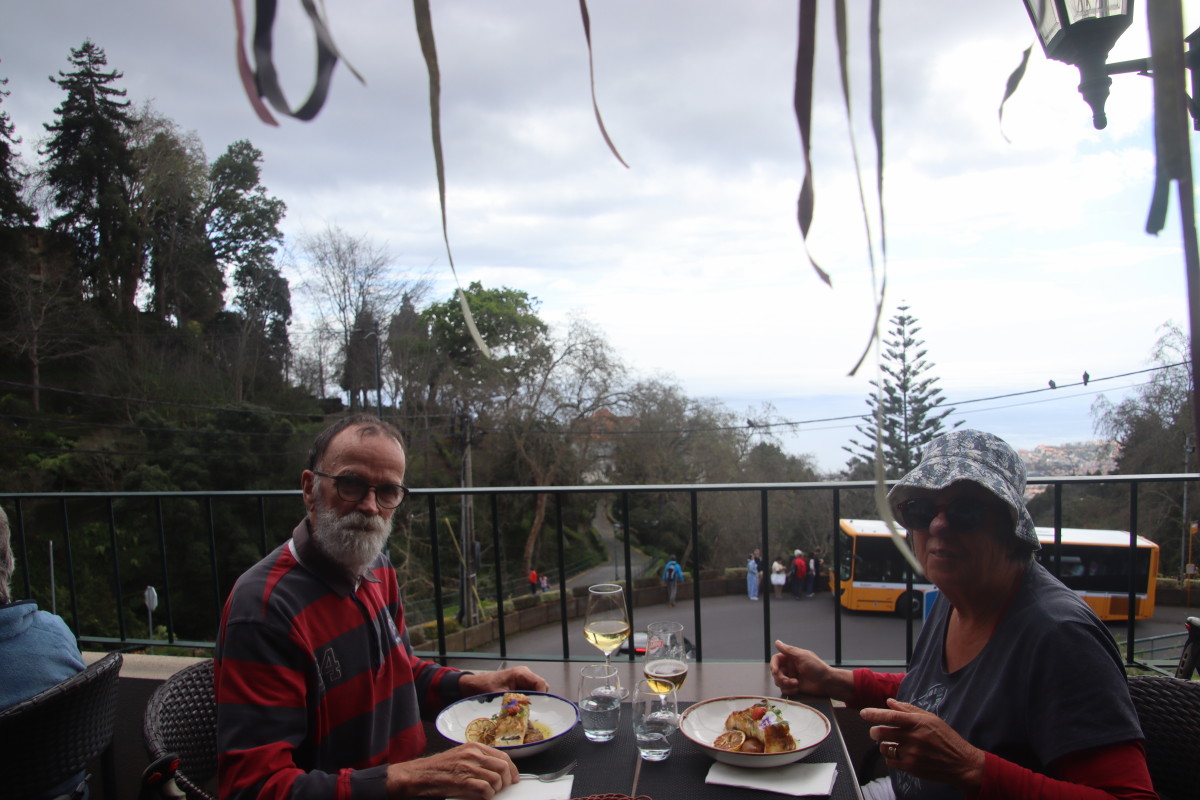 Nous prenons le téléphérique pour monter aux jardins tropicaux mais le temps froid et humide ne s’y prête pas vraiment nous nous consolons en admirant le paysage puis en dégustant une succulente bacalhau.