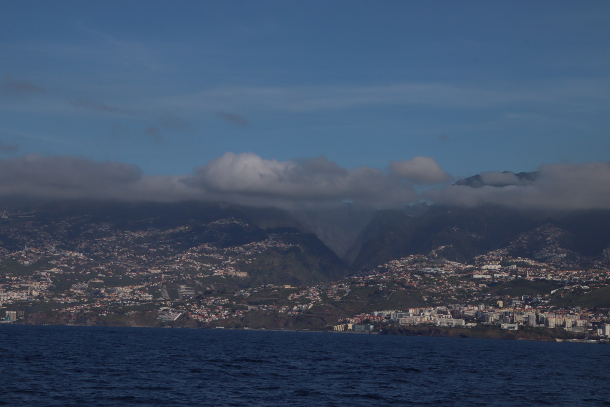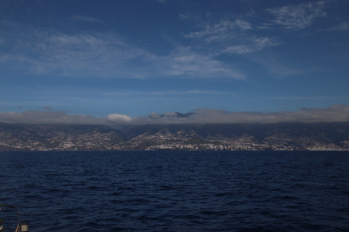 La traversée commence par tout petit temps et mer plate puis le vent dENE monte très vite et la mer se forme dès qu’on quitte le dévent de La Palma. Mais les conditions restent toutefois maniables et surtout très favorables puisqu’on fera toute la traversée sur un seul bord et la plupart du temps bien débridé. Mais bon pas de quoi carburer comme des V2 non plus puisqu’on mettra 2 jours à faire les 250 milles. Nous avons choisi de faire escale à Funchal.