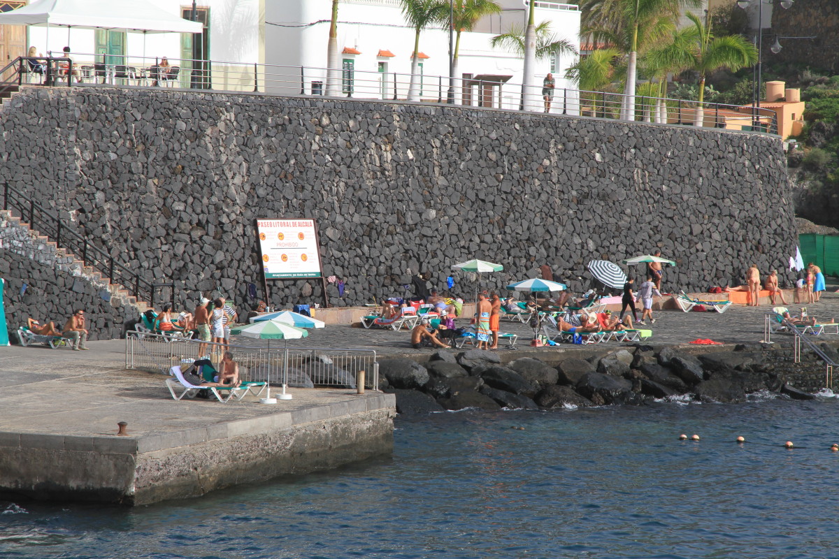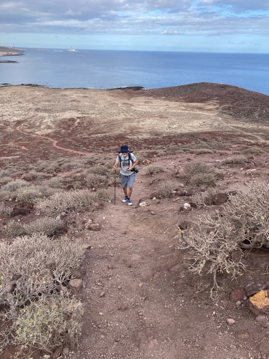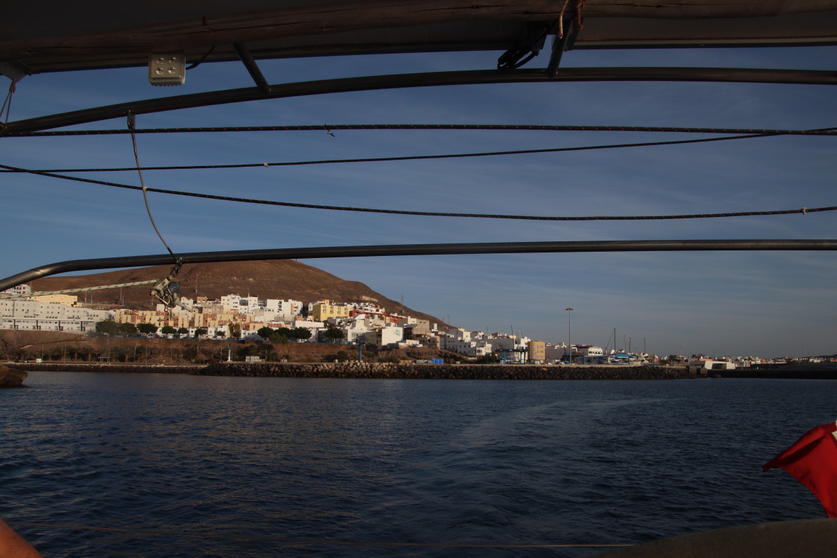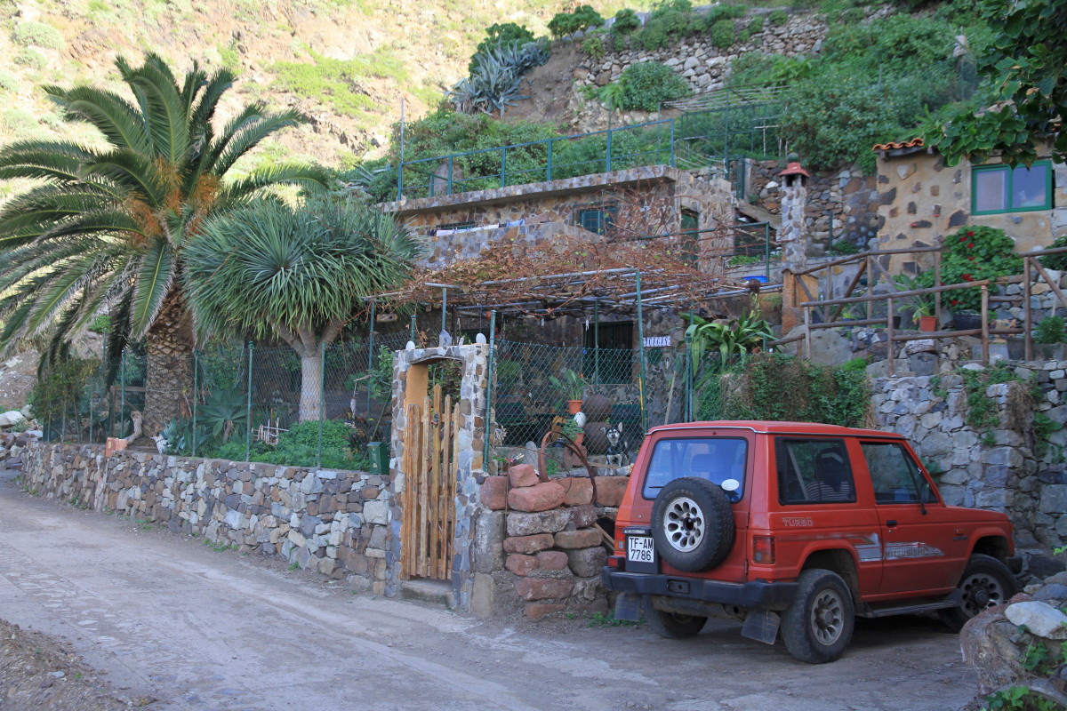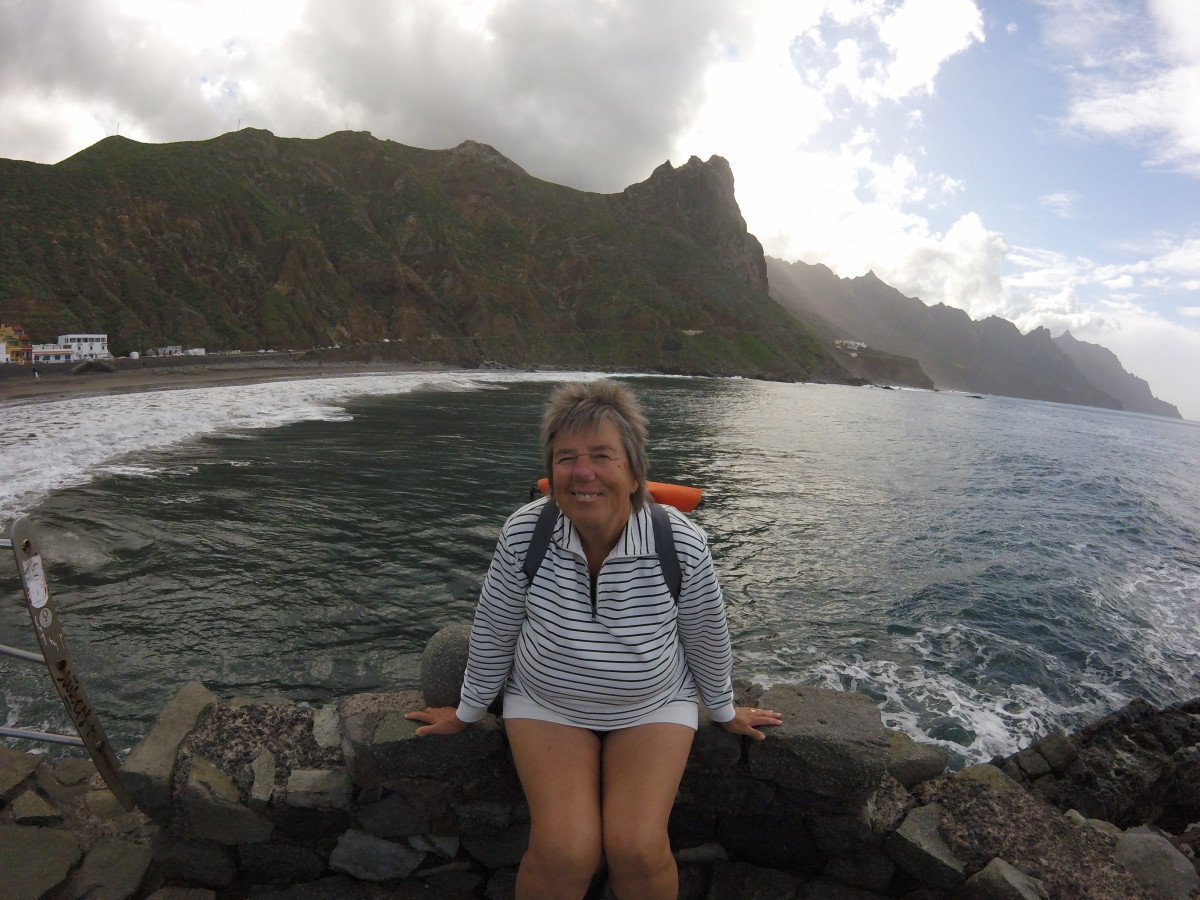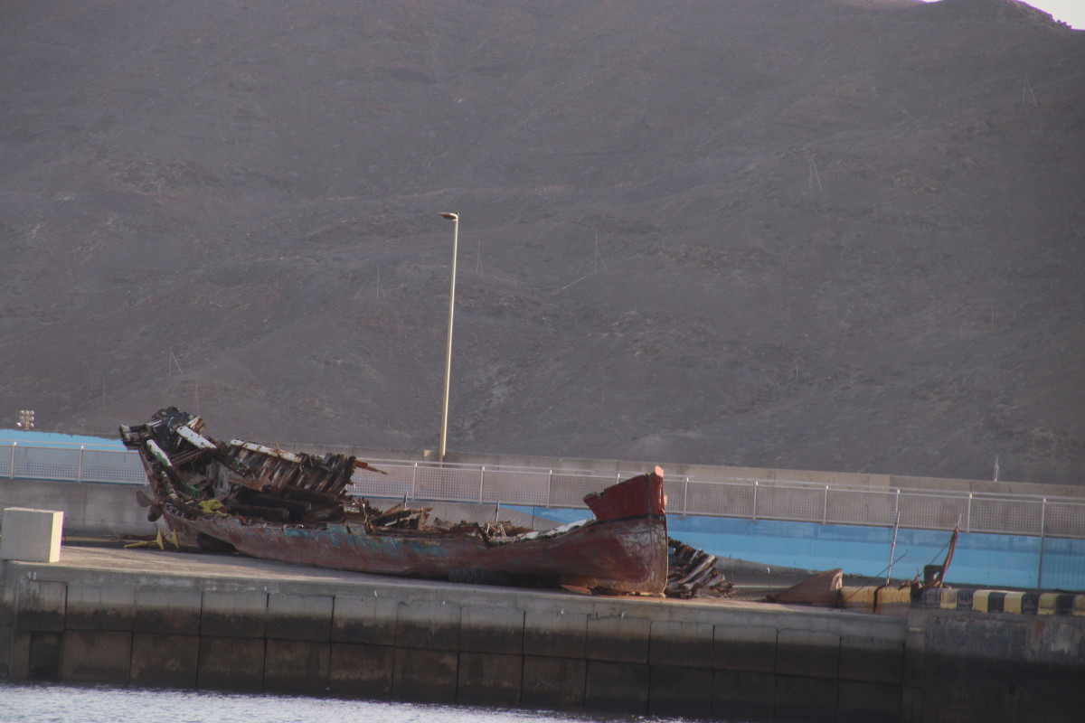L’endroit est très spécial, entouré de pentes abruptes d’aspect lunaire avec juste quelques maisons accrochées en bas de la falaise. L’infrastructure portuaire est assez bien intégrée dans le décor. Par rapport à tous les ports de l’archipel c’est sans aucun doute l’un des mieux protégés de tous les vents mais c’est surtout et de loin le plus calme : une demie douzaine de bateaux de voyage dont la majorité est là pour passer l’hiver au chaud dans un coin tranquille (c’est un peu notre cas) et les autres faire une dernière étape européenne avant la traversée vers le Cap Vert ou les Antilles (attention si votre destination, votre pavillon ou votre nationalité requiert une sortie officielle de l’UE, vous ne pourrez pas la faire ici). Ces voiliers de grandes croisières sont complétés en milieu de semaine par les quelques rares charters/locations qui osent faire le saut si loin de la vie nocturne trépidante des autres îles. Aucune circulation automobile en dehors de l’arrivée et du départ des 2 ferrys journaliers et cerise sur le gâteau une plage, juste de l’autre côté de la jetée intérieure, très bien aménagée avec des rampes de descente à travers les galets et toujours praticable car à l’abri du grand môle extérieur. Dans le terminal il y a un café assez agréable et une mini-supérette plutôt bien achalandée pour sa taille et avec du pain tous les matins. Pour des plus grosses courses il faut monter à Villa de Valverde la capitale de l’île (Bus ligne 7, cinq départs tous les jours), les commerces d’alimentation sont tout près de la gare de bus (supermarchés , et 5-oceanos pour les surgelés) Bref un endroit idéal pour se reposer et nous remettre de cette grippe qui ne veut pas nous lâcher.
