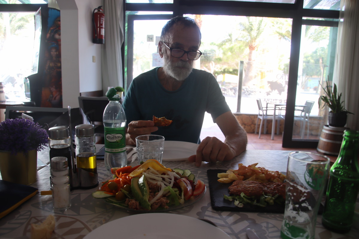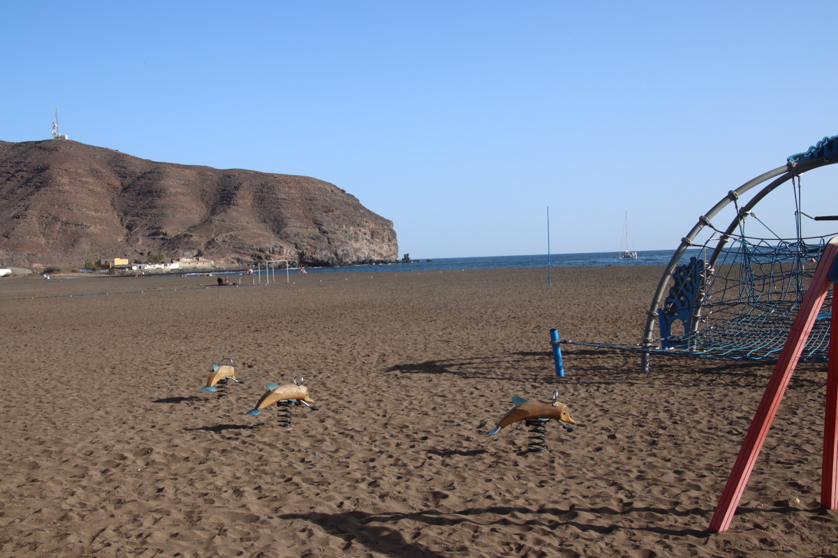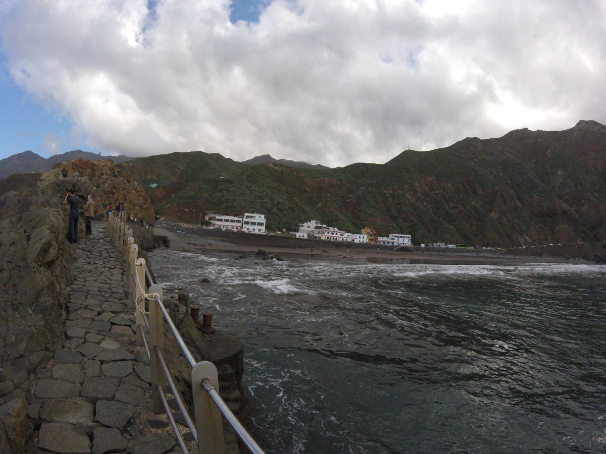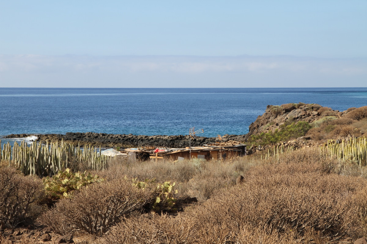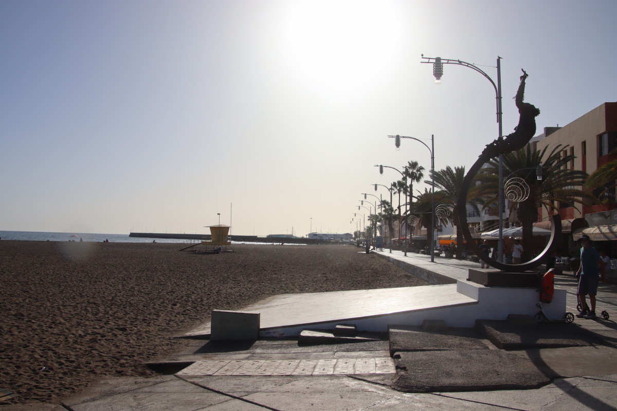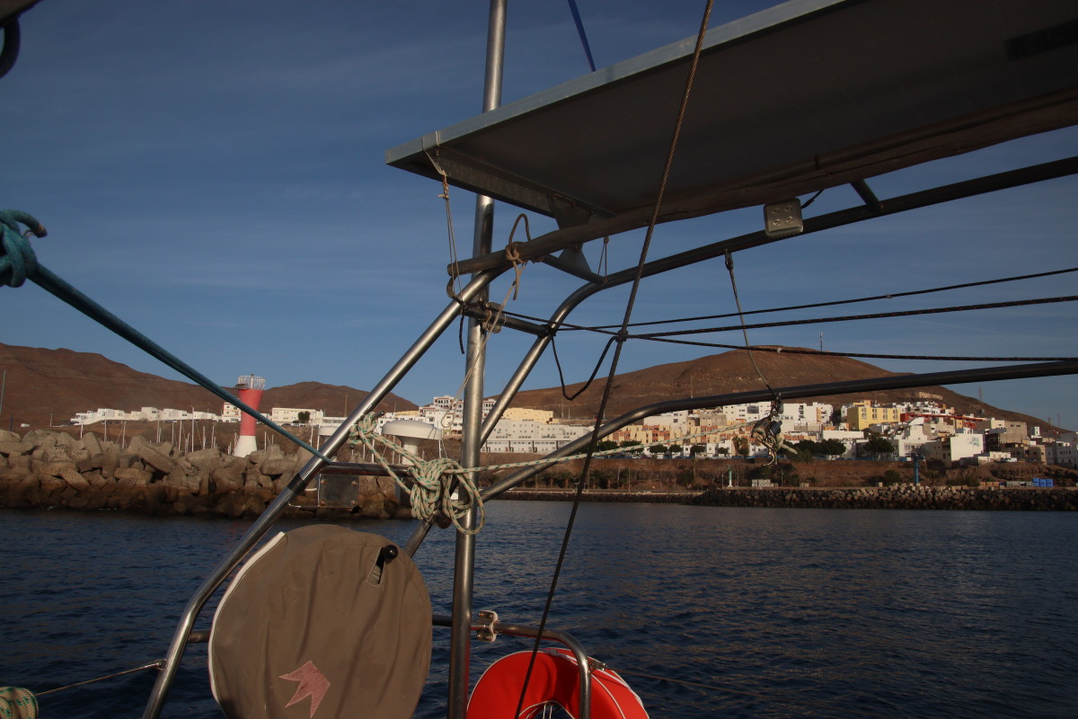 L’endroit est très spécial, entouré de pentes abruptes d’aspect lunaire avec juste quelques maisons accrochées en bas de la falaise. L’infrastructure portuaire est assez bien intégrée dans le décor. Par rapport à tous les ports de l’archipel c’est sans aucun doute l’un des mieux protégés de tous les vents mais c’est surtout et de loin le plus calme : une demie douzaine de bateaux de voyage dont la majorité est là pour passer l’hiver au chaud dans un coin tranquille (c’est un peu notre cas) et les autres faire une dernière étape européenne avant la traversée vers le Cap Vert ou les Antilles (attention si votre destination, votre pavillon ou votre nationalité requiert une sortie officielle de l’UE, vous ne pourrez pas la faire ici). Ces voiliers de grandes croisières sont complétés en milieu de semaine par les quelques rares charters/locations qui osent faire le saut si loin de la vie nocturne trépidante des autres îles. Aucune circulation automobile en dehors de l’arrivée et du départ des 2 ferrys journaliers et cerise sur le gâteau une plage, juste de l’autre côté de la jetée intérieure, très bien aménagée avec des rampes de descente à travers les galets et toujours praticable car à l’abri du grand môle extérieur. Dans le terminal il y a un café assez agréable et une mini-supérette plutôt bien achalandée pour sa taille et avec du pain tous les matins. Pour des plus grosses courses il faut monter à Villa de Valverde la capitale de l’île (Bus ligne 7, cinq départs tous les jours), les commerces d’alimentation sont tout près de la gare de bus (supermarchés , et 5-oceanos pour les surgelés) Bref un endroit idéal pour se reposer et nous remettre de cette grippe qui ne veut pas nous lâcher.