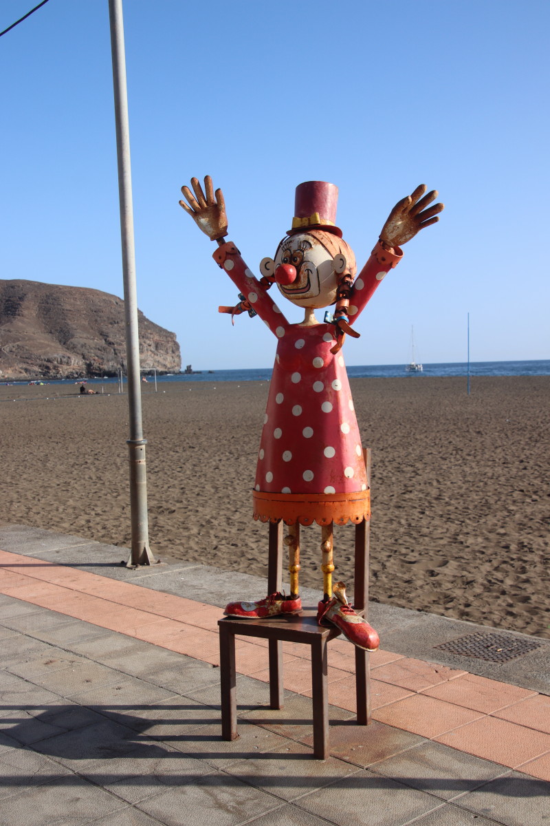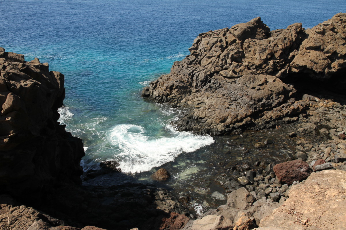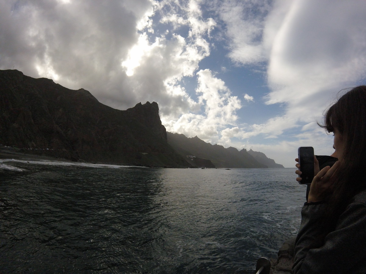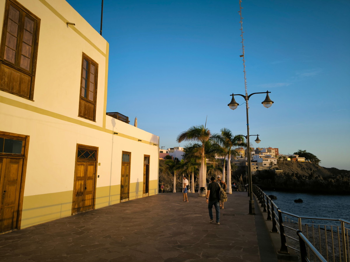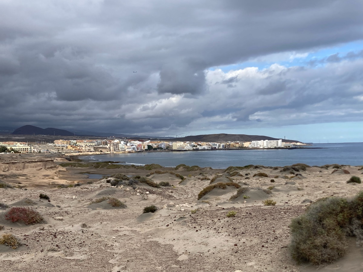 L’endroit est très spécial, entouré de pentes abruptes d’aspect lunaire avec juste quelques maisons accrochées en bas de la falaise. L’infrastructure portuaire est assez bien intégrée dans le décor. Par rapport à tous les ports de l’archipel c’est sans aucun doute l’un des mieux protégés de tous les vents mais c’est surtout et de loin le plus calme : une demie douzaine de bateaux de voyage dont la majorité est là pour passer l’hiver au chaud dans un coin tranquille (c’est un peu notre cas) et les autres faire une dernière étape européenne avant la traversée vers le Cap Vert ou les Antilles (attention si votre destination, votre pavillon ou votre nationalité requiert une sortie officielle de l’UE, vous ne pourrez pas la faire ici). Ces voiliers de grandes croisières sont complétés en milieu de semaine par les quelques rares charters/locations qui osent faire le saut si loin de la vie nocturne trépidante des autres îles. Aucune circulation automobile en dehors de l’arrivée et du départ des 2 ferrys journaliers et cerise sur le gâteau une plage, juste de l’autre côté de la jetée intérieure, très bien aménagée avec des rampes de descente à travers les galets et toujours praticable car à l’abri du grand môle extérieur. Dans le terminal il y a un café assez agréable et une mini-supérette plutôt bien achalandée pour sa taille et avec du pain tous les matins. Pour des plus grosses courses il faut monter à Villa de Valverde la capitale de l’île (Bus ligne 7, cinq départs tous les jours), les commerces d’alimentation sont tout près de la gare de bus (supermarchés , et 5-oceanos pour les surgelés) Bref un endroit idéal pour se reposer et nous remettre de cette grippe qui ne veut pas nous lâcher.