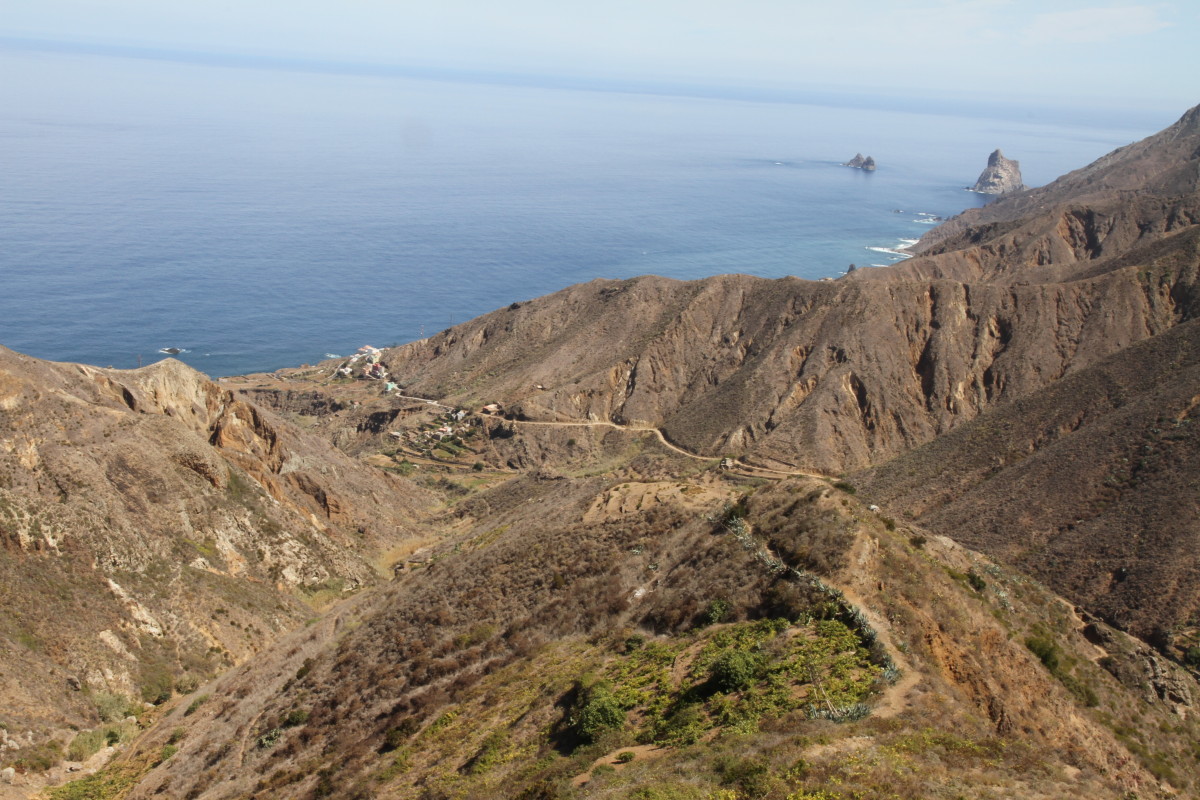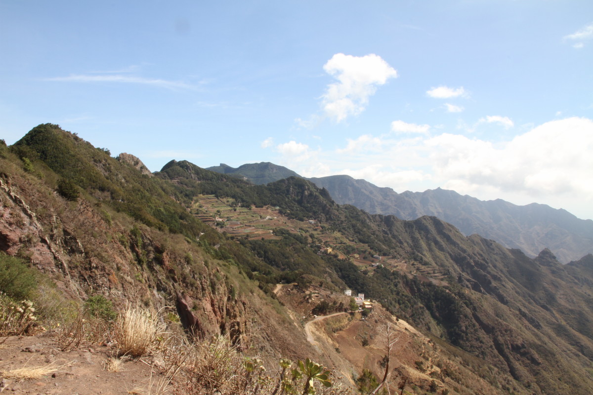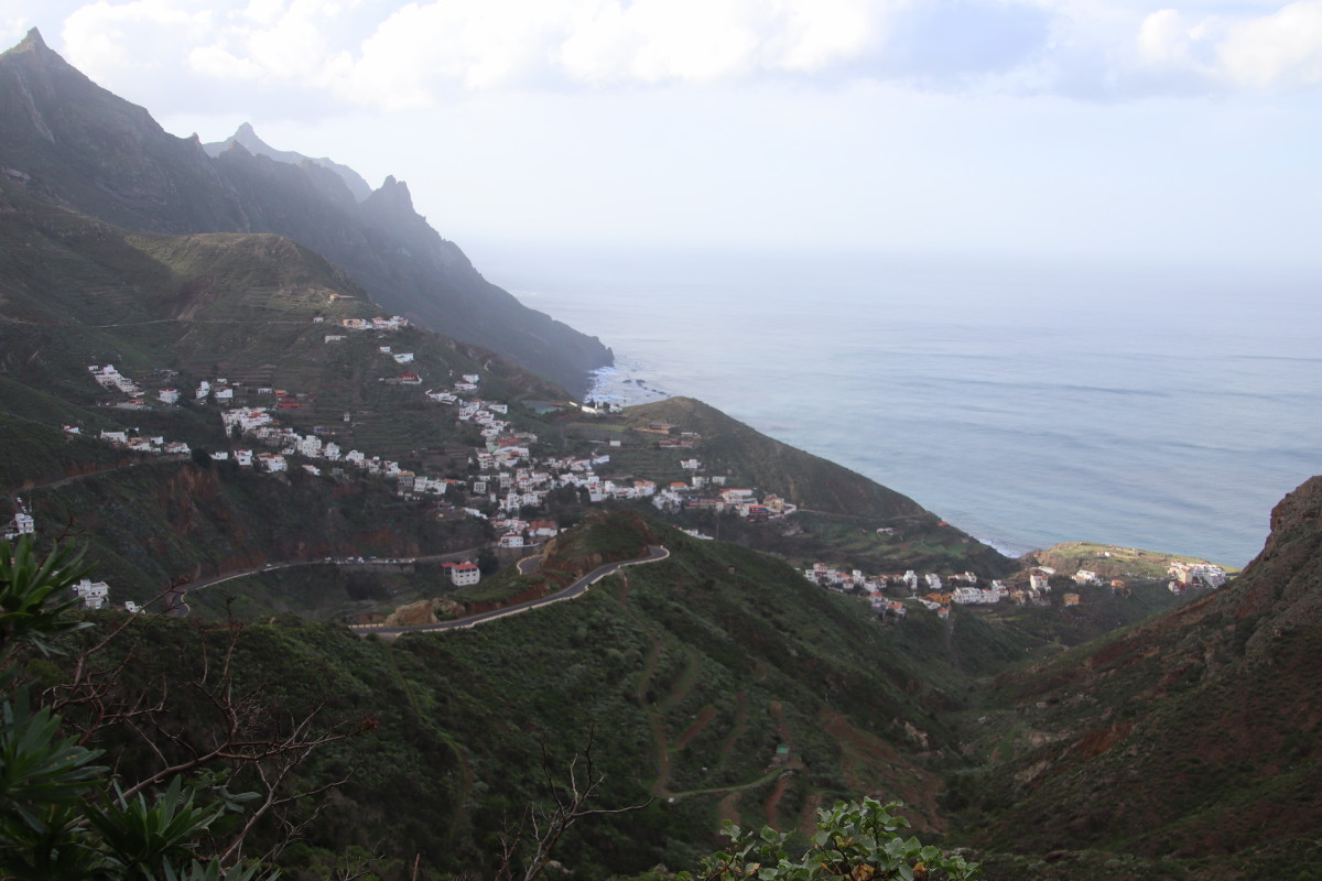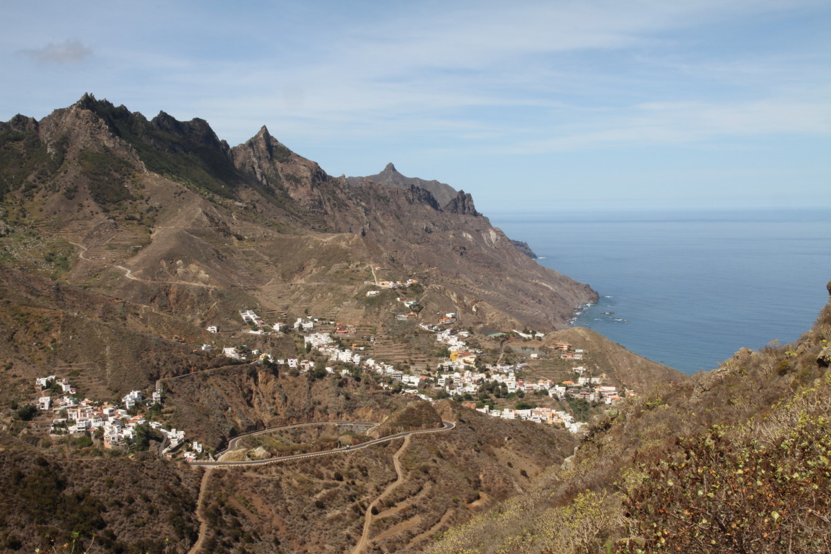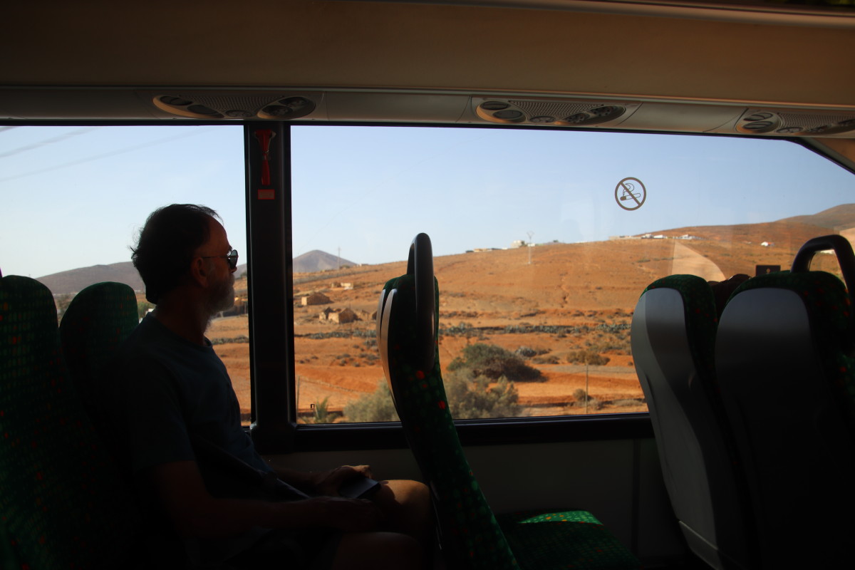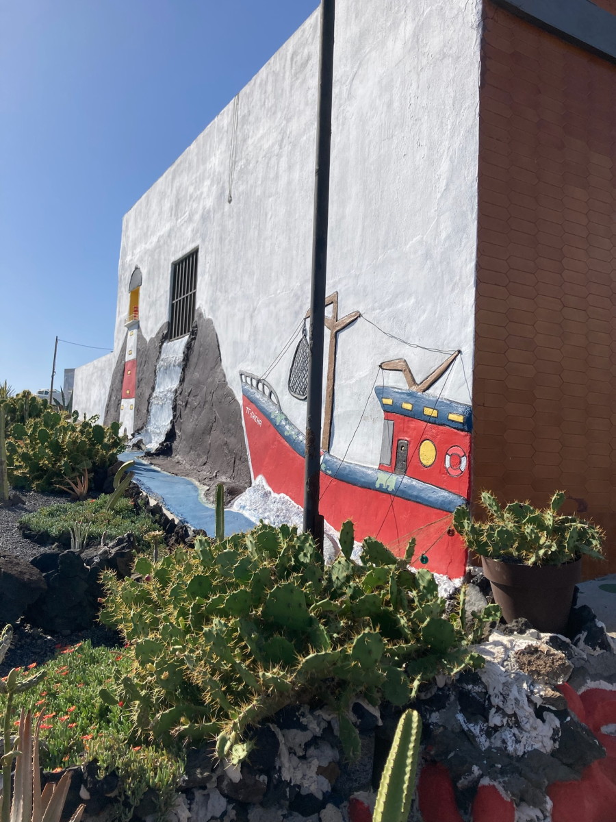 L’endroit est très spécial, entouré de pentes abruptes d’aspect lunaire avec juste quelques maisons accrochées en bas de la falaise. L’infrastructure portuaire est assez bien intégrée dans le décor. Par rapport à tous les ports de l’archipel c’est sans aucun doute l’un des mieux protégés de tous les vents mais c’est surtout et de loin le plus calme : une demie douzaine de bateaux de voyage dont la majorité est là pour passer l’hiver au chaud dans un coin tranquille (c’est un peu notre cas) et les autres faire une dernière étape européenne avant la traversée vers le Cap Vert ou les Antilles (attention si votre destination, votre pavillon ou votre nationalité requiert une sortie officielle de l’UE, vous ne pourrez pas la faire ici). Ces voiliers de grandes croisières sont complétés en milieu de semaine par les quelques rares charters/locations qui osent faire le saut si loin de la vie nocturne trépidante des autres îles. Aucune circulation automobile en dehors de l’arrivée et du départ des 2 ferrys journaliers et cerise sur le gâteau une plage, juste de l’autre côté de la jetée intérieure, très bien aménagée avec des rampes de descente à travers les galets et toujours praticable car à l’abri du grand môle extérieur. Dans le terminal il y a un café assez agréable et une mini-supérette plutôt bien achalandée pour sa taille et avec du pain tous les matins. Pour des plus grosses courses il faut monter à Villa de Valverde la capitale de l’île (Bus ligne 7, cinq départs tous les jours), les commerces d’alimentation sont tout près de la gare de bus (supermarchés , et 5-oceanos pour les surgelés) Bref un endroit idéal pour se reposer et nous remettre de cette grippe qui ne veut pas nous lâcher.