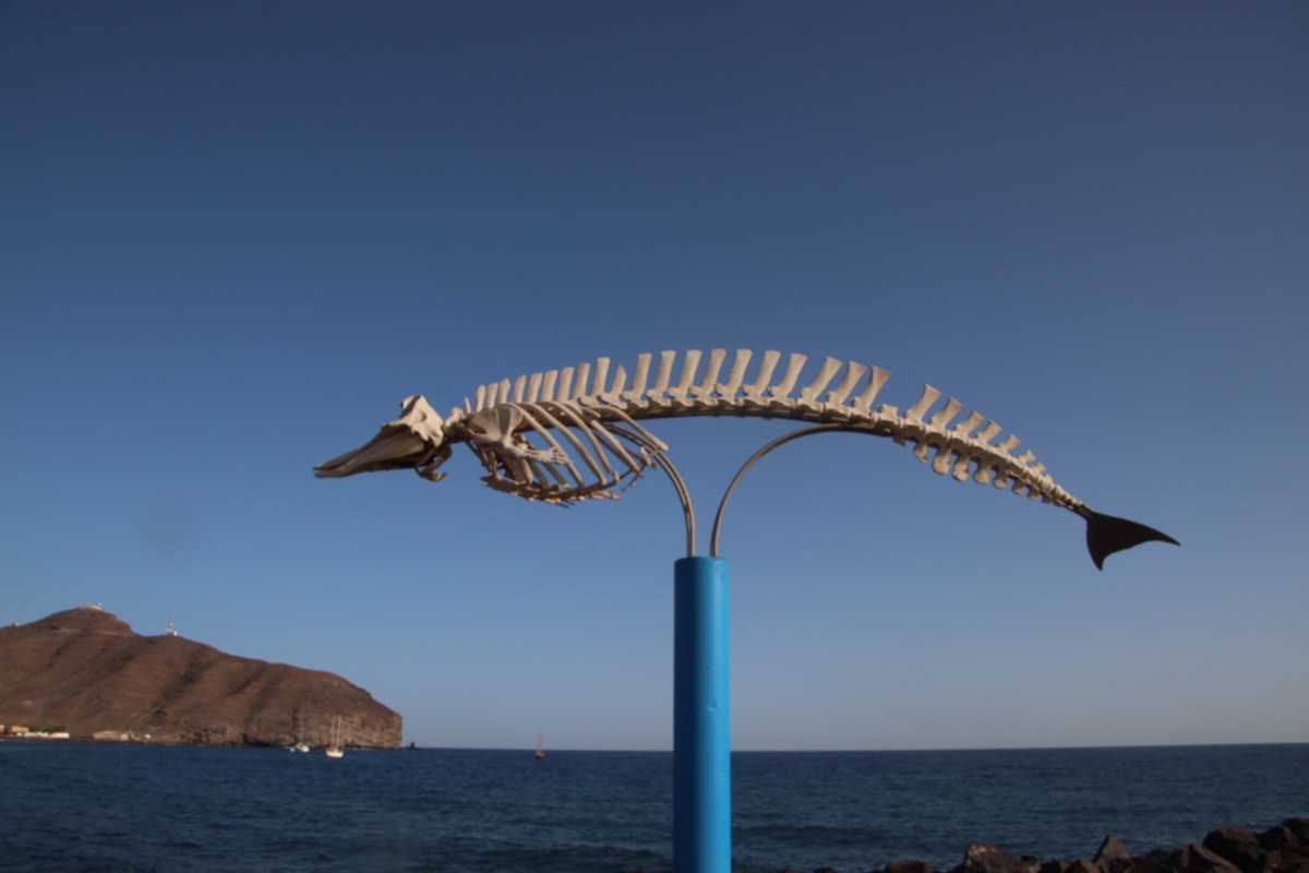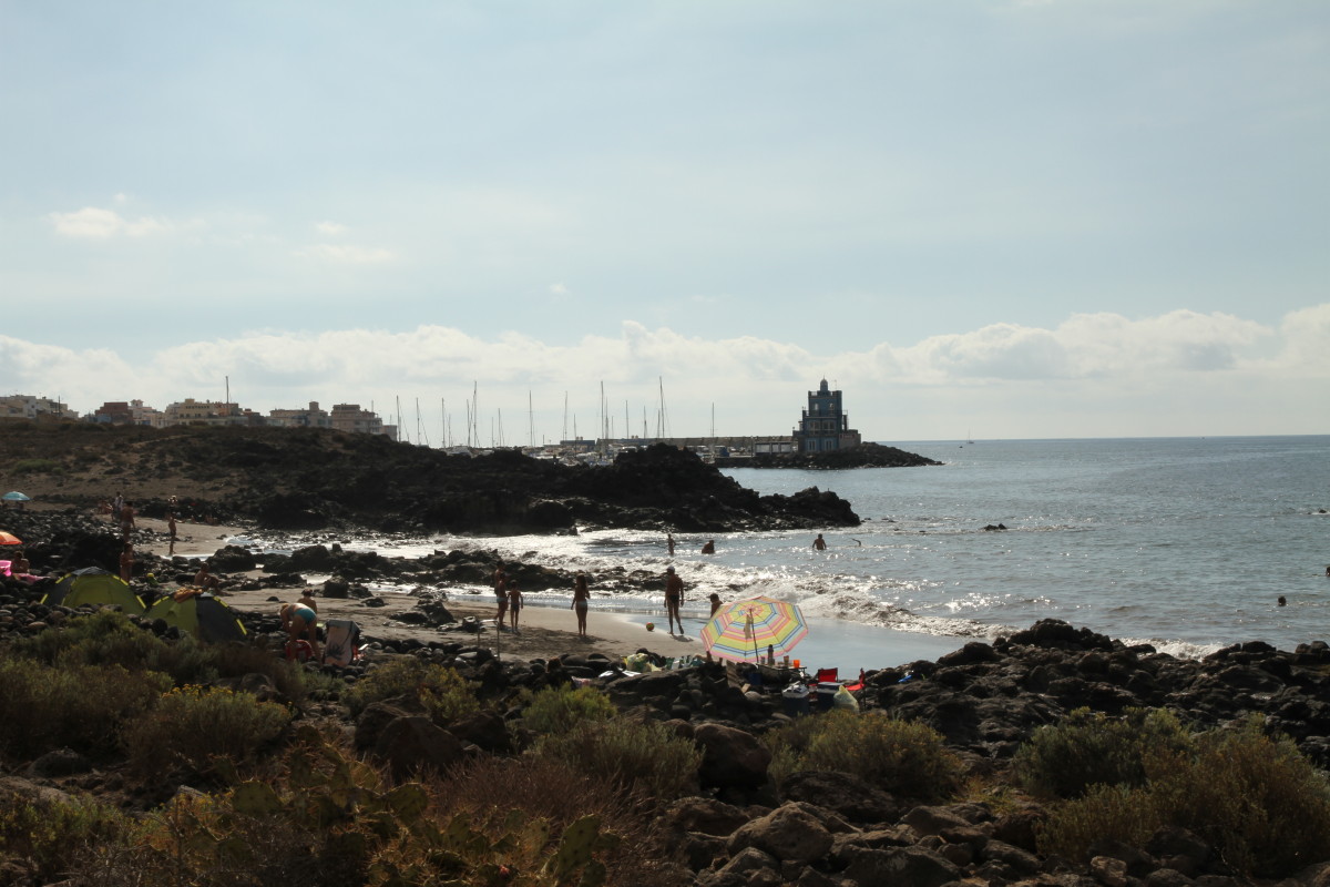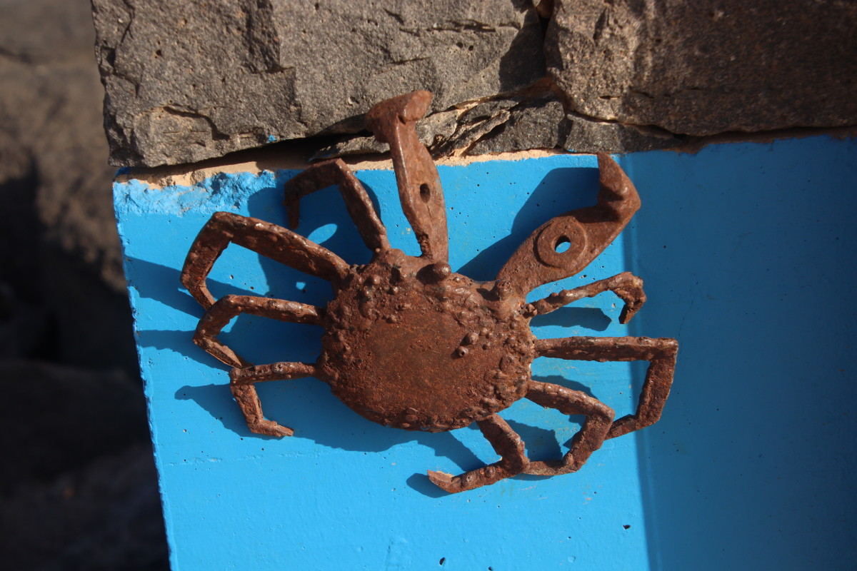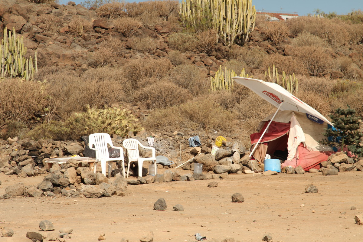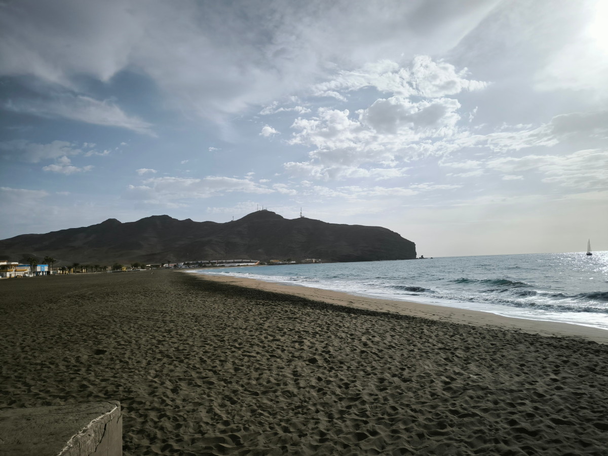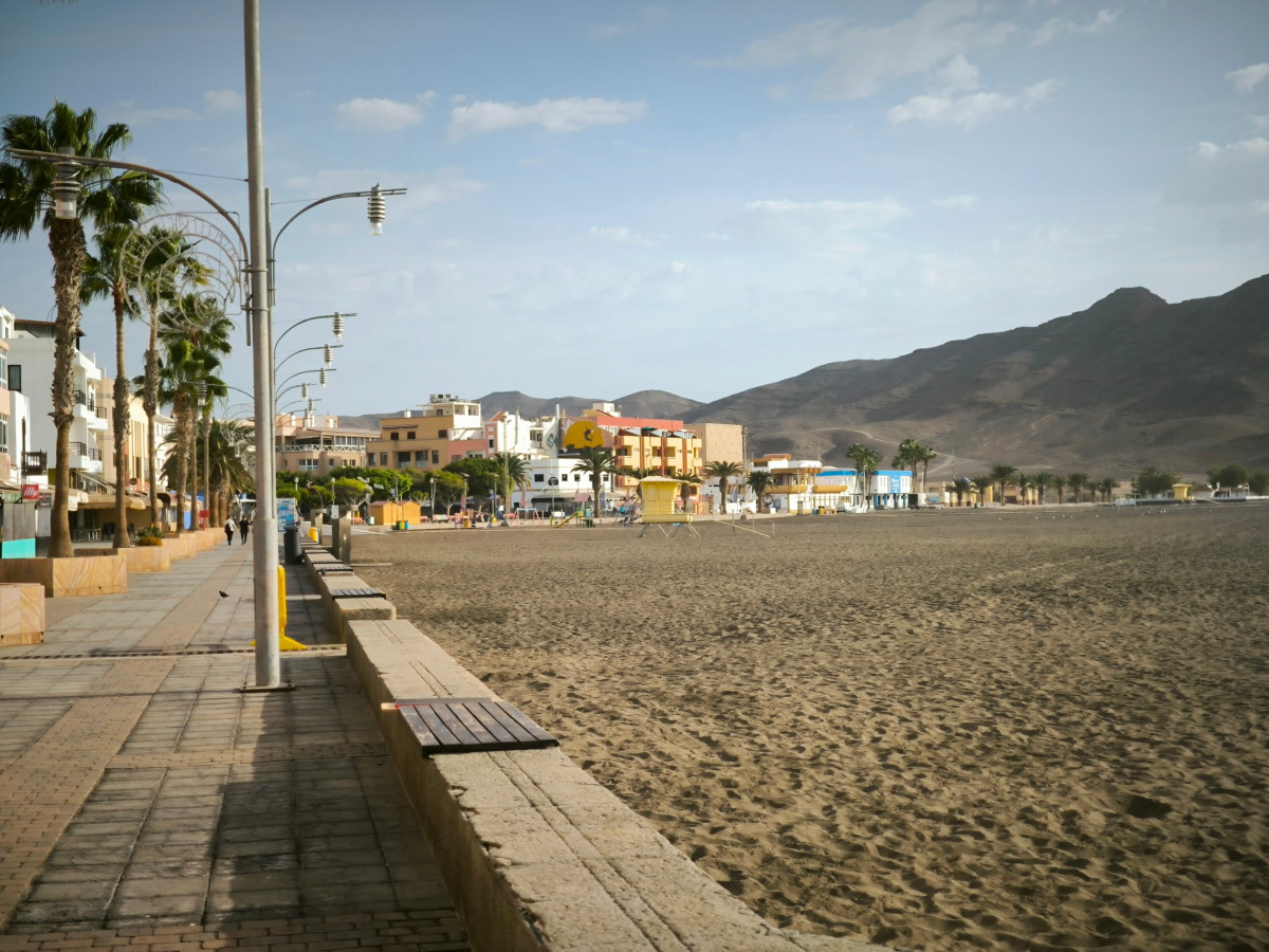 L’endroit est très spécial, entouré de pentes abruptes d’aspect lunaire avec juste quelques maisons accrochées en bas de la falaise. L’infrastructure portuaire est assez bien intégrée dans le décor. Par rapport à tous les ports de l’archipel c’est sans aucun doute l’un des mieux protégés de tous les vents mais c’est surtout et de loin le plus calme : une demie douzaine de bateaux de voyage dont la majorité est là pour passer l’hiver au chaud dans un coin tranquille (c’est un peu notre cas) et les autres faire une dernière étape européenne avant la traversée vers le Cap Vert ou les Antilles (attention si votre destination, votre pavillon ou votre nationalité requiert une sortie officielle de l’UE, vous ne pourrez pas la faire ici). Ces voiliers de grandes croisières sont complétés en milieu de semaine par les quelques rares charters/locations qui osent faire le saut si loin de la vie nocturne trépidante des autres îles. Aucune circulation automobile en dehors de l’arrivée et du départ des 2 ferrys journaliers et cerise sur le gâteau une plage, juste de l’autre côté de la jetée intérieure, très bien aménagée avec des rampes de descente à travers les galets et toujours praticable car à l’abri du grand môle extérieur. Dans le terminal il y a un café assez agréable et une mini-supérette plutôt bien achalandée pour sa taille et avec du pain tous les matins. Pour des plus grosses courses il faut monter à Villa de Valverde la capitale de l’île (Bus ligne 7, cinq départs tous les jours), les commerces d’alimentation sont tout près de la gare de bus (supermarchés , et 5-oceanos pour les surgelés) Bref un endroit idéal pour se reposer et nous remettre de cette grippe qui ne veut pas nous lâcher.