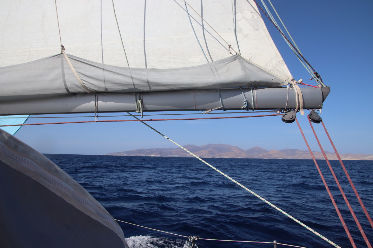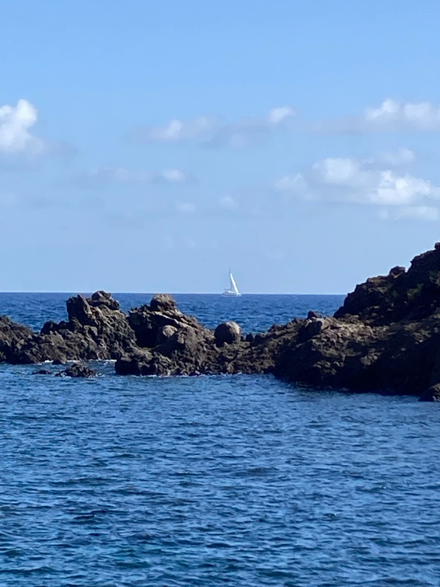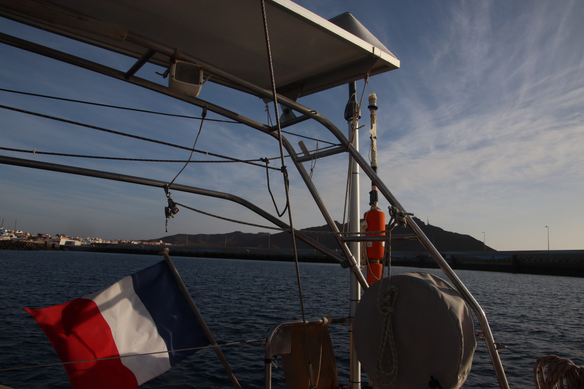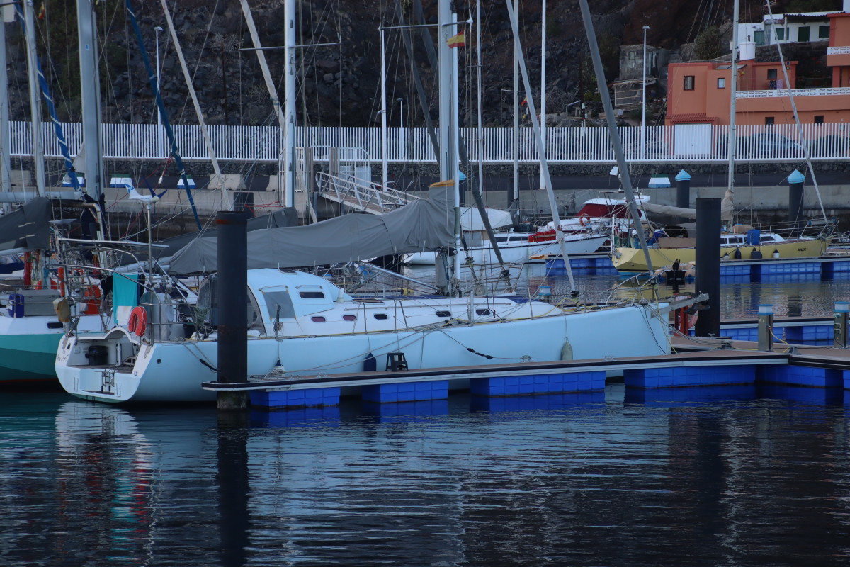 Le 4 janvier 2025 après bientôt 3 semaines passées essentiellement à explorer Ténérife de long en large nous quittons la marina de San Miguel. Le vent et la mer venant du Sud nous allons mouiller dans la baie d’Abona histoire de reprendre nos marques et de nous reposer d’un début de grippe. Abona est l’un des rares mouillages abrité des vents de secteur sud, nous y passons 2 nuits le temps qu’ils repassent au nord. Ce qui se produit le 6 à midi pile. Nous avons déjà levé l’ancre et sortons de la baie. Mer parfaitement plate (c’est rare ici), 10 à 12 nœuds de NE, nous faisons un grand détour vers le sud pour contourner le dévent de Tenerife et garder juste ce qu’il faut de vent jusqu’au bout. Au levé du jour nous sommes sous les hautes falaises d’El Hierro. Le temps de tirer un petit bord pour laisser le ferry faire sa manœuvre de sortie et à 8:30 nous sommes amarrés au ponton. Le port parfaitement équipé (pontons sur piles avec des grands catways) est à moitié vide.