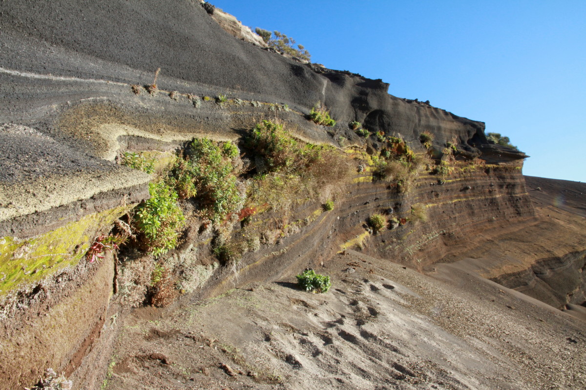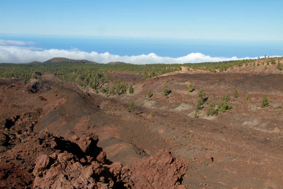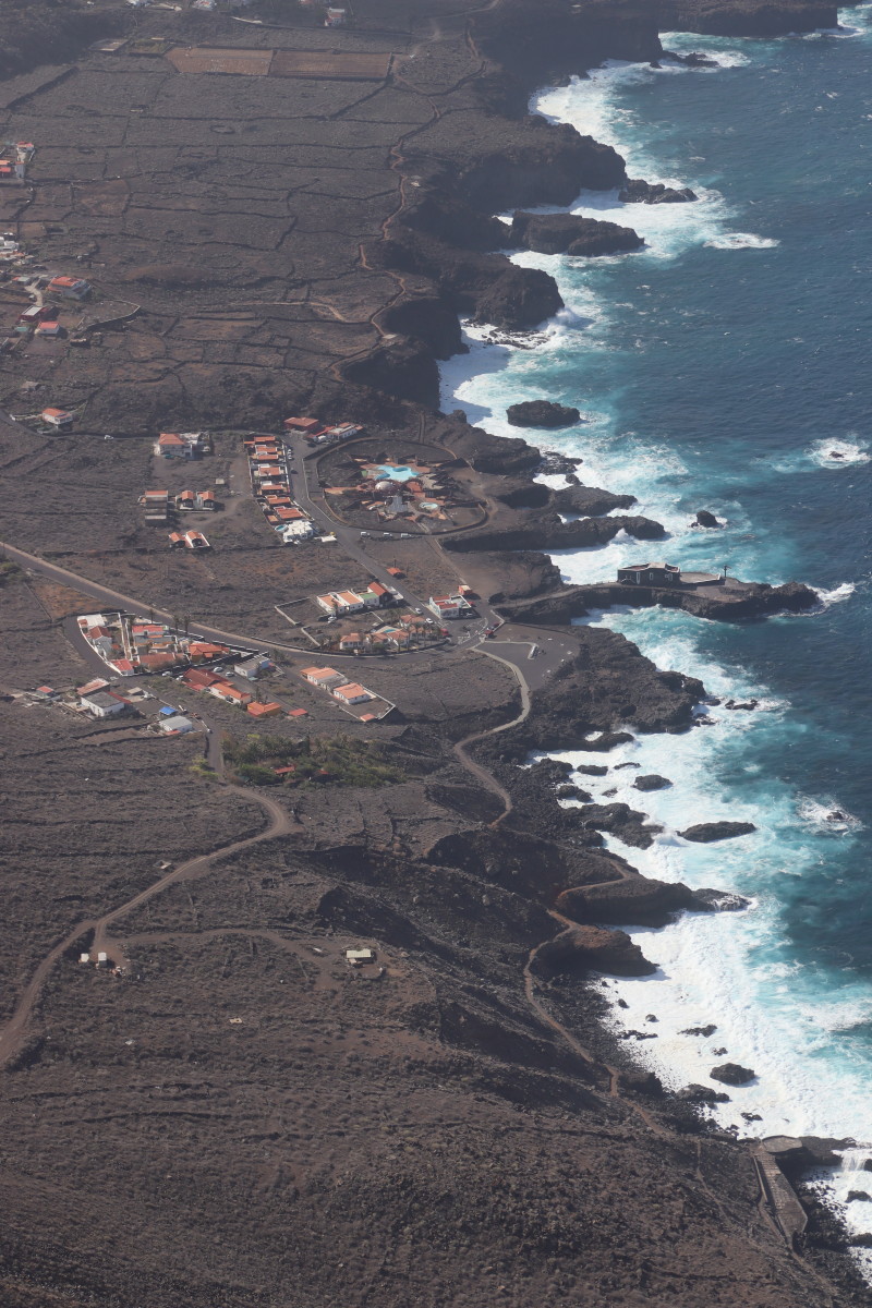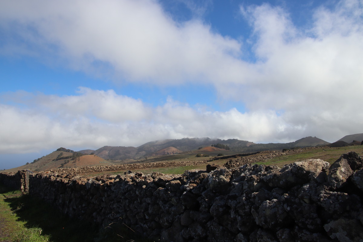 El Hierro est la plus jeune des îles Canaries, elle est sortie du fond de l’océan il y a seulement un peu plus d’un million d’année soit il y a dix fois moins longtemps que Ténérife. Son sommet, le pic Malpaso culmine à 1501 m mais dépasse à peine du haut plateau qui l’entoure. Les irruptions successives de la dorsale ont provoqués des effondrements, modelant son relief de façon très originale: la partie Ouest s’est effondrée formant une immense caldeira semi circulaire entourée de hautes falaises (El Golfo) , un accident géologique similaire mais de moindre importance s’est aussi produit sur la partie Sud Est (Las Playas). La côte sud est le théâtre des irruptions les plus récentes comme en témoigne les champs de lave. Et au milieu une sorte de haut plateau couvert de prairies au nord, d’une laurasylve (forêt primaire) dans les zones les plus humides principalement à l’Ouest et une forêt de pins canariens à l’est. Ici peu de barrancos et encore moins de vallées profondes ce qui lui donne un aspect à la fois massif et fragile très différent des autres îles de l’archipel. Mais plutôt qu’un long discours voyons tout çà en images.
