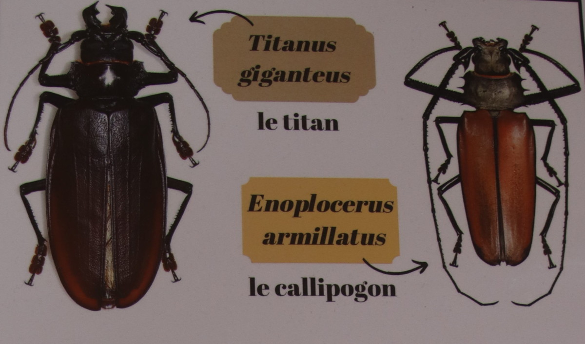 Un mystérieux géant Le plus grand coléoptère du monde, le Titan giganteus peut mesurer jusqu’à 16 centimètre de long. Attention ne pas le confondre avec Enoplocerus armillatus . malgré sa popularité auprès des entomologistes, la biologie du Titanus giganteus est méconnue. il est nocturne.La femelle se trouve par hasard , au sol et n’est pas attirée par la lumière, contrairement au mâle, ce qui explique le peu d’observation et sa rareté en collection. Si madame Titan croise votre chemin, vous ferez des jaloux parmi les naturalistes .