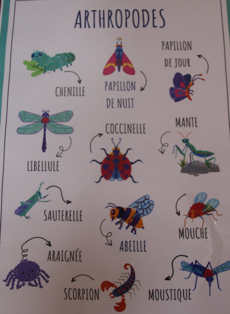 Les Arthropodes sont un embranchement du règne animal comprenant tous les animaux des milieux aquatique, terrestre et aérien, invertébrés à pattes articulées et dont le corps est formé de segments. (Arachnides, crustacés, insectes, myriapodes, etc.) :