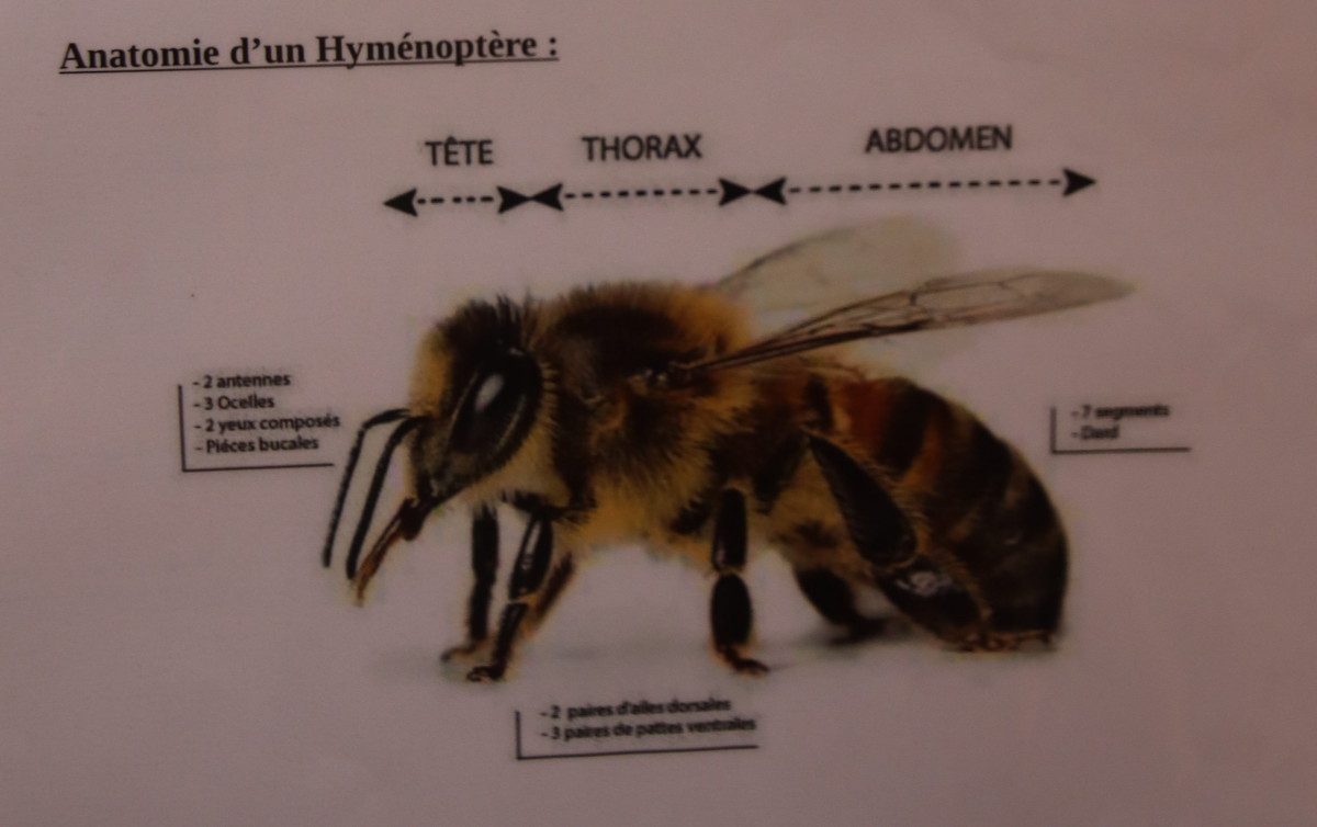 Un hyménoptère est un insecte à métamorphose complète qui, comme les abeilles, guêpes,fourmis, possèdent quatre ailes membraneuses, inégales, des mandibules faites pour broyer, les autres pièces buccales pour lécher et aspirer les autres liquides.(les ailes antérieures et postérieures du même coté sont couplées par des crochets, « hamules »elles peuvent être réduites ou absentes).