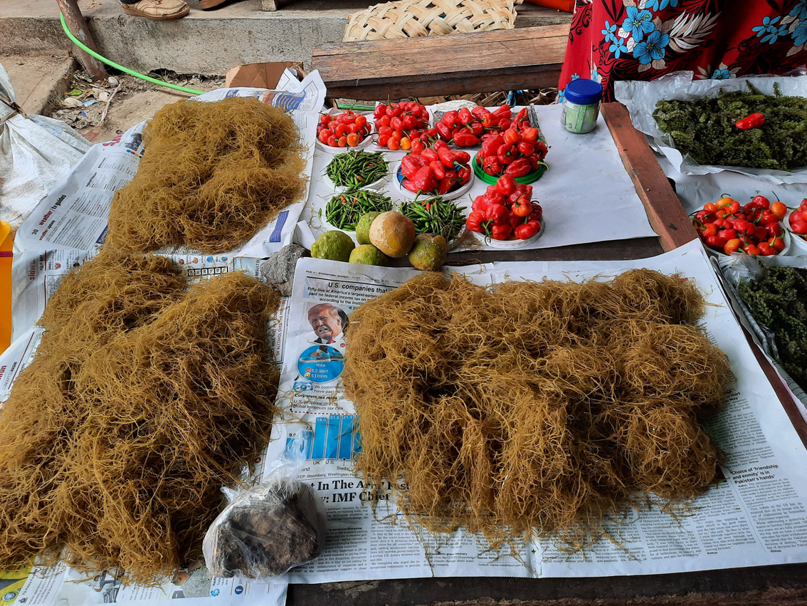 Une fois de plus, « I went to the marquet mon petit panier sous mon bras » en l’occurrence celui de Labasa sur l’île de Vanua Levu aux Fidji. Parmi tous les produits de la mer proposés par les vendeurs locaux, mon attention a été attirée par une algue à l’aspect de chevelure blonde ébouriffée assez particulier. Ici ils l’appellent Lumi (prononcez loumi) son nom scientifique est Gracilaria, elle contient une forte teneur en agar et peut se récolter dans les eaux peu profondes des lagons et des récifs de la plupart des îles du Pacifique, les Japonais l’appellent Ogo. Voici comment la préparer.